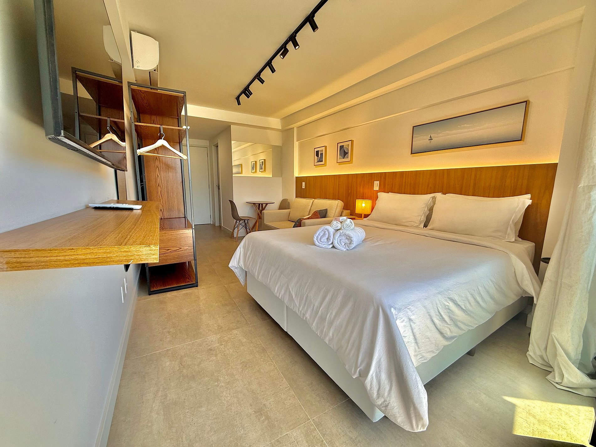 O hóspede terá acesso a todos os ambientes do Studio e também às áreas comuns do edifício, inclusive a piscina, a academia e a lavanderia.