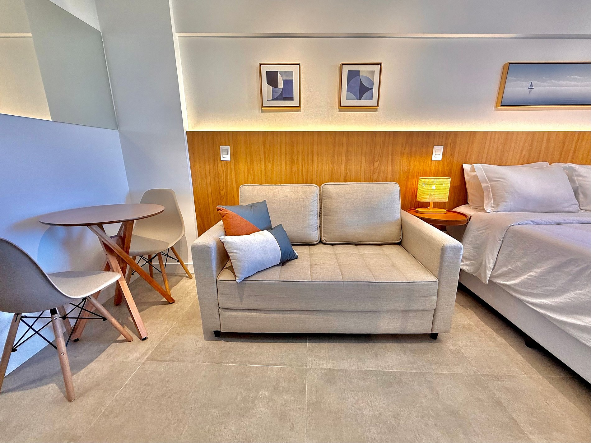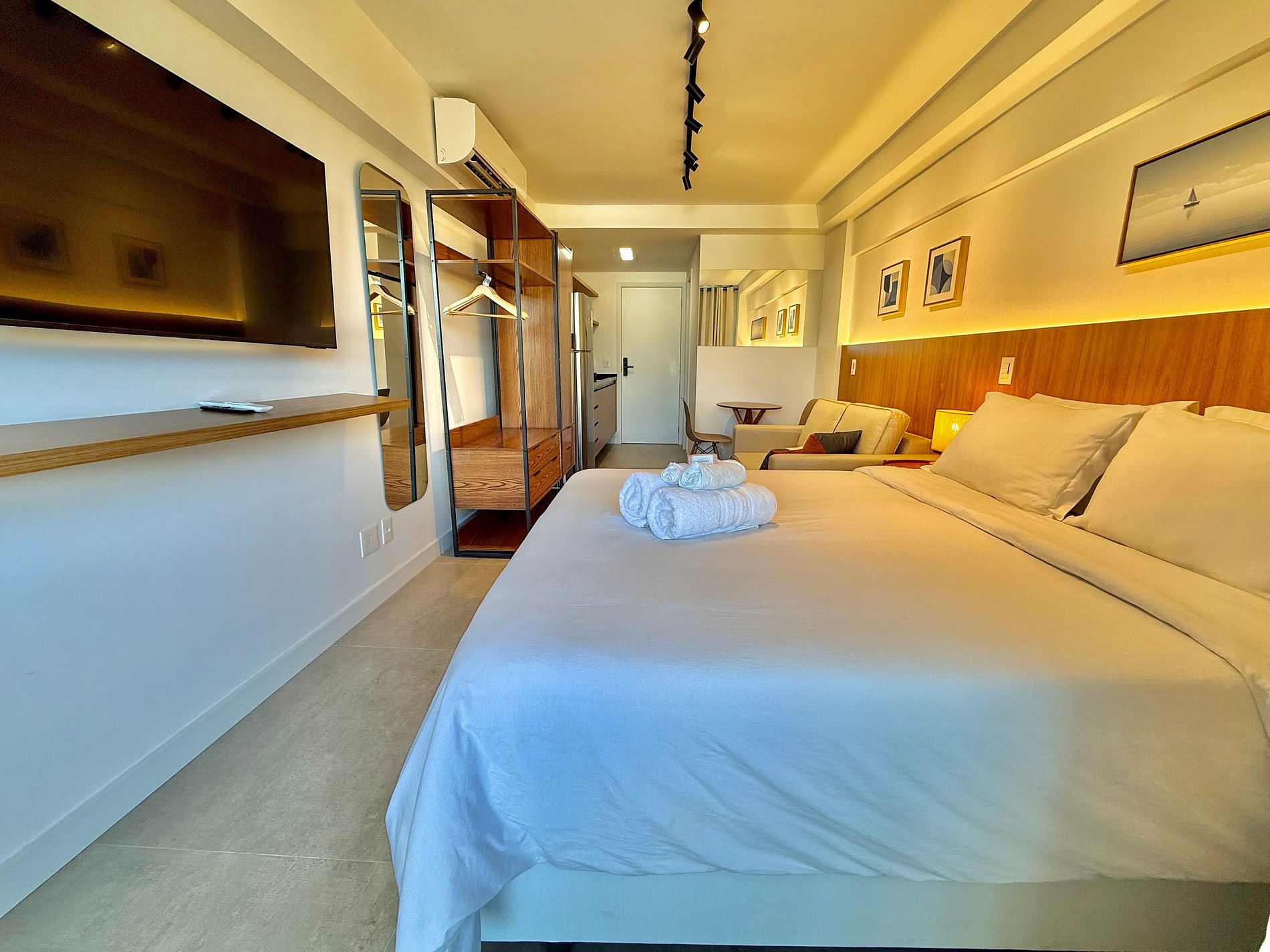 O hóspede terá acesso a todos os ambientes do Studio e também às áreas comuns do edifício, inclusive a piscina, a academia e a lavanderia.