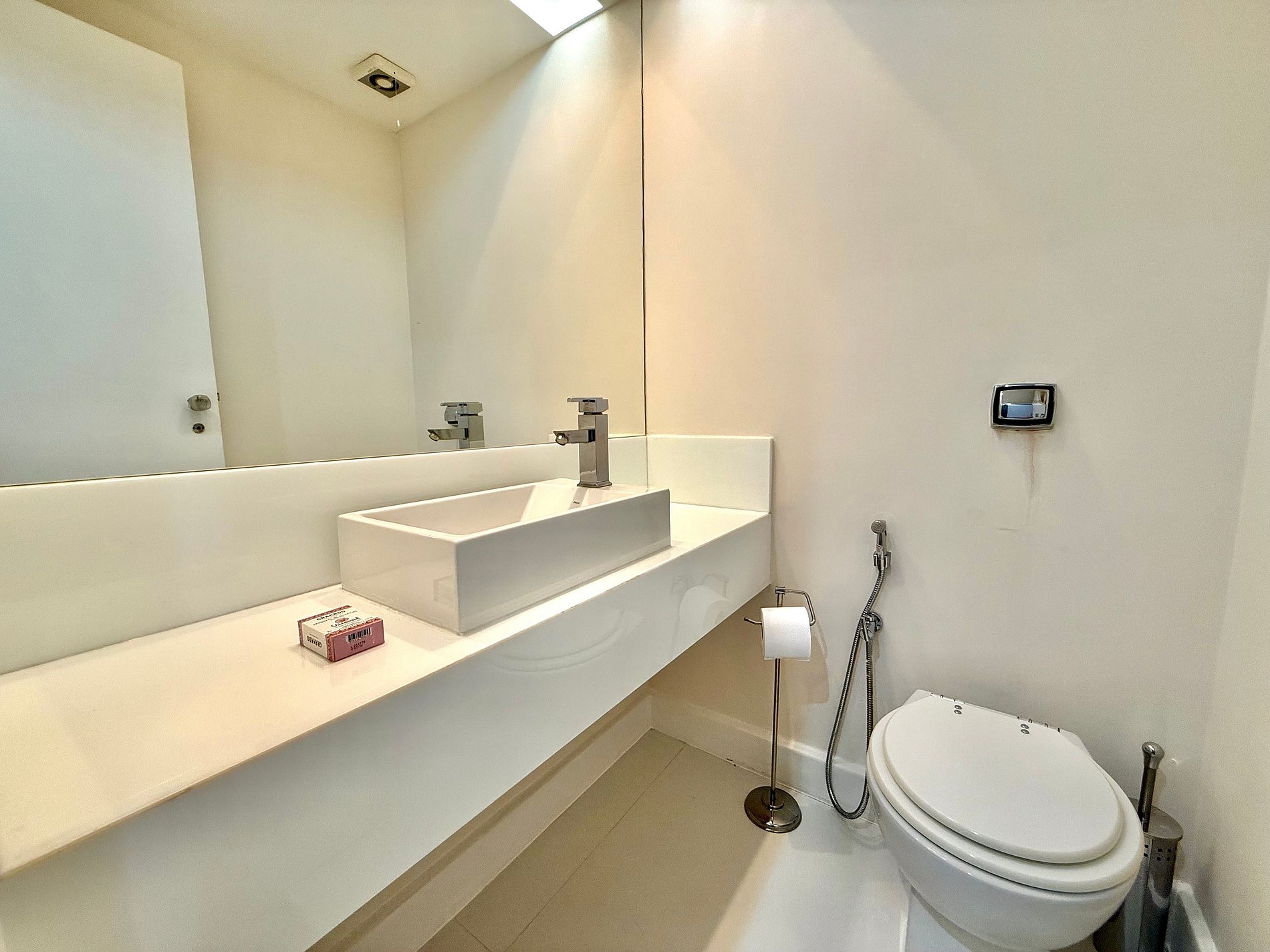 O chuveiro do banheiro tem uma excelente pressão.