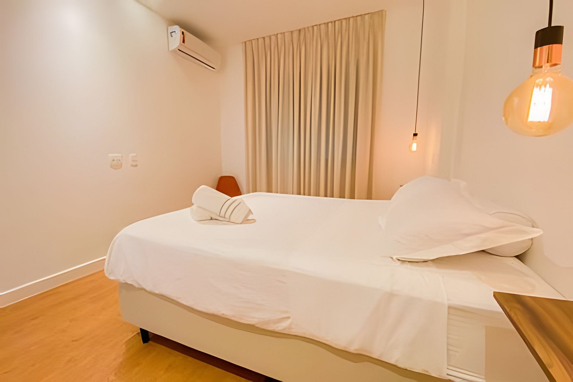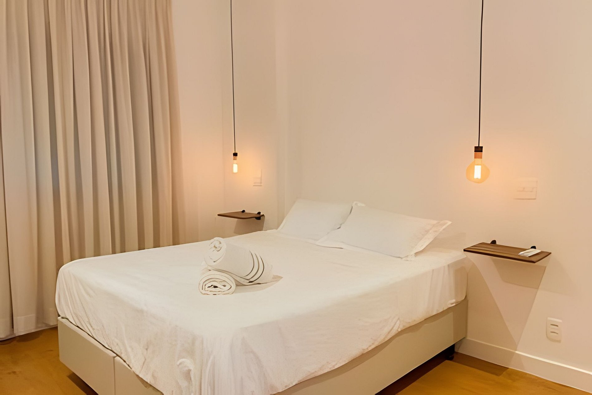 Large and pleasant living room with air conditioning and TV, divided into a living room, dining room and a workstation for a "Home office", as well as a super charming balcony. High speed internet. Spacious suite with queen bed, closet and bathroom, as well as a second bedroom with 2 single beds and clothes rack. It has a second full bathroom to serve the second bedroom. All rooms have air conditioning units, soundproof windows and blackout curtains. Fully equipped kitchen with refrigerator, stove, microwave, Nespresso machine, dishwasher and various utensils. Service area with sink, washing machine and clothesline for drying. The apartment also offers other amenities such as a portable crib, hairdryer, ironing board and iron and amenities kit (shampoo, conditioner and soap).