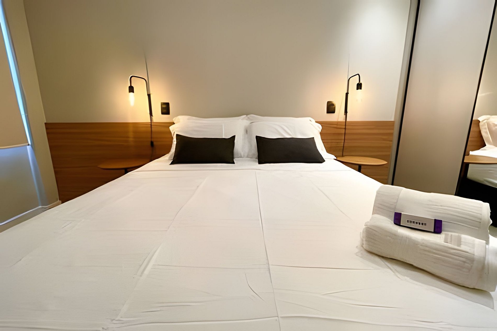 Large and pleasant room with sofa bed, air conditioning, TV and blackout curtain, divided into living room and dining room, as well as a super charming balcony. Spacious bedroom with queen bed, TV, closet with safe, blackout curtains, air conditioning and a workstation for "Home office" (high-speed Internet). Complete bathroom, with window, shower with good pressure and makeup mirror. Kitchen equipped with refrigerator, stove, microwave, Nespresso machine, tea maker, wine cellar and various utensils, as well as a laundry area with sink. It also offers other amenities, such as a portable crib, hairdryer, ironing board and iron and amenities kit (shampoo, conditioner and soap).