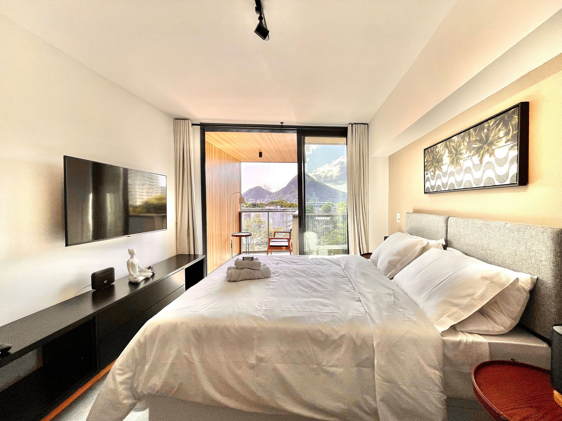 Studio in Leblon completely renovated, modern, cozy and well located. Ideal for people and families who come for leisure or work and who are looking for comfort, a prime location and who can do everything on foot. Located just a few minutes walk from the beach, Lagoa, the metro station and close to all shops, the best bars and restaurants, gyms and Shopping Leblon. The Studio has a swimming pool, gym, laundry and 24-hour concierge, as well as a free parking space.