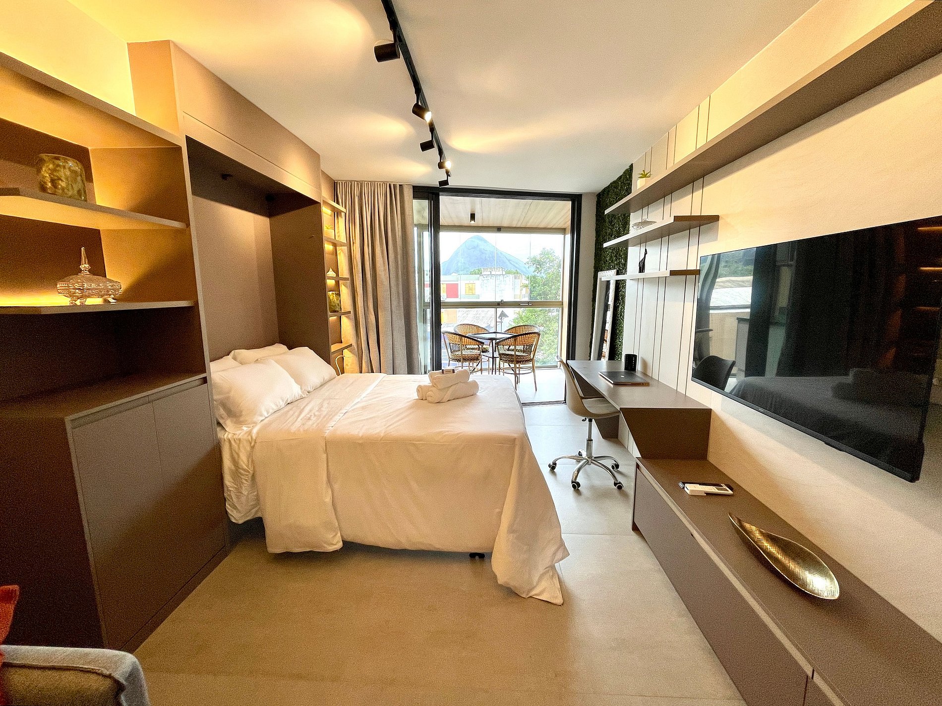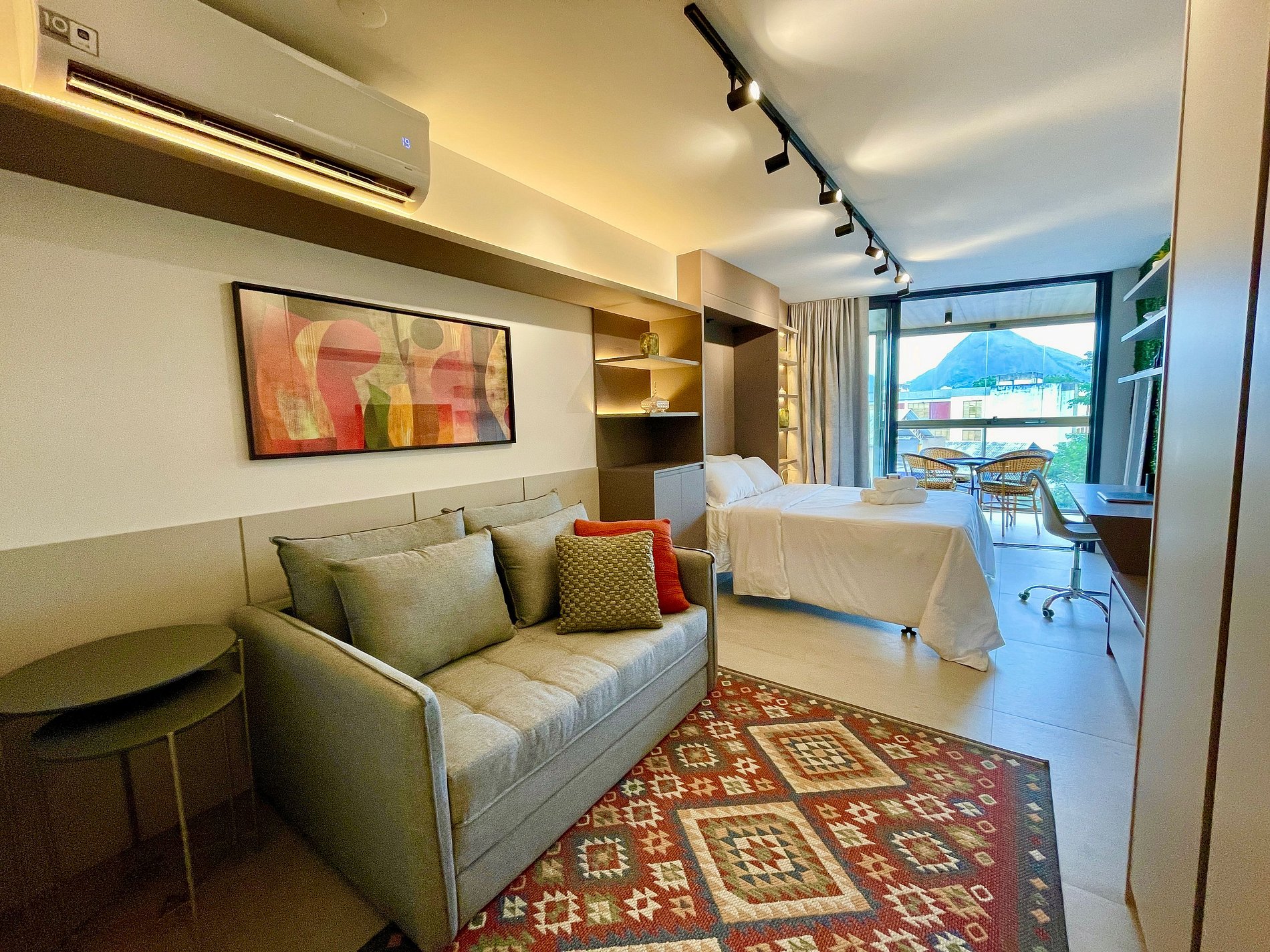 Studio in Leblon completely renovated, modern, cozy and well located. Ideal for people and families who come for leisure or work and who are looking for comfort, a prime location and who can do everything on foot. Located just a few minutes walk from the beach, Lagoa, the metro station and close to all shops, the best bars and restaurants, gyms and Shopping Leblon. The Studio has a swimming pool, gym, laundry and 24-hour concierge, as well as a free parking space.