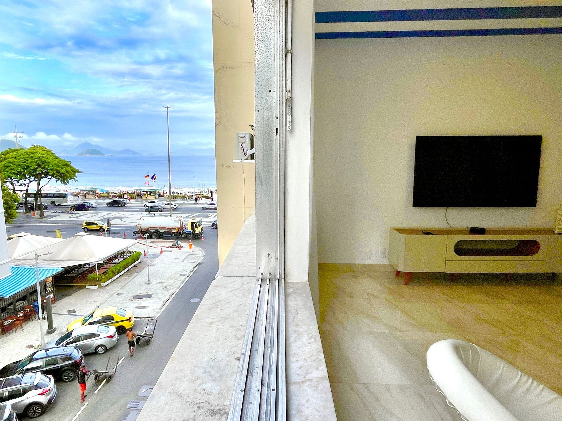 Apartamento moderno, estiloso, espaçoso, super aconchegante e localizado exatamente ao lado da Praia de Copacabana. Ideal para pessoas e famílias que vêm a lazer ou a trabalho e que buscam muito conforto, localização nobre e que possam resolver tudo a pé. Próximo a todo comércio, aos melhores bares e restaurantes, academias, estação do metro, além de estar muito próximo ao bairro de Ipanema. A portaria do edifício funciona 24h.