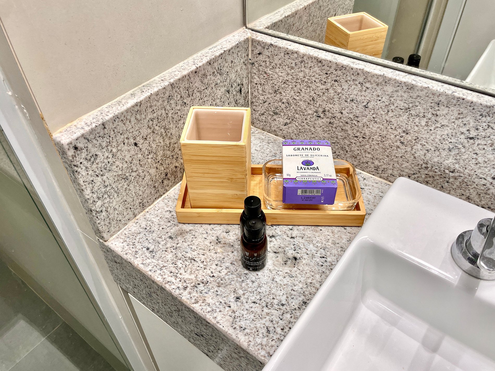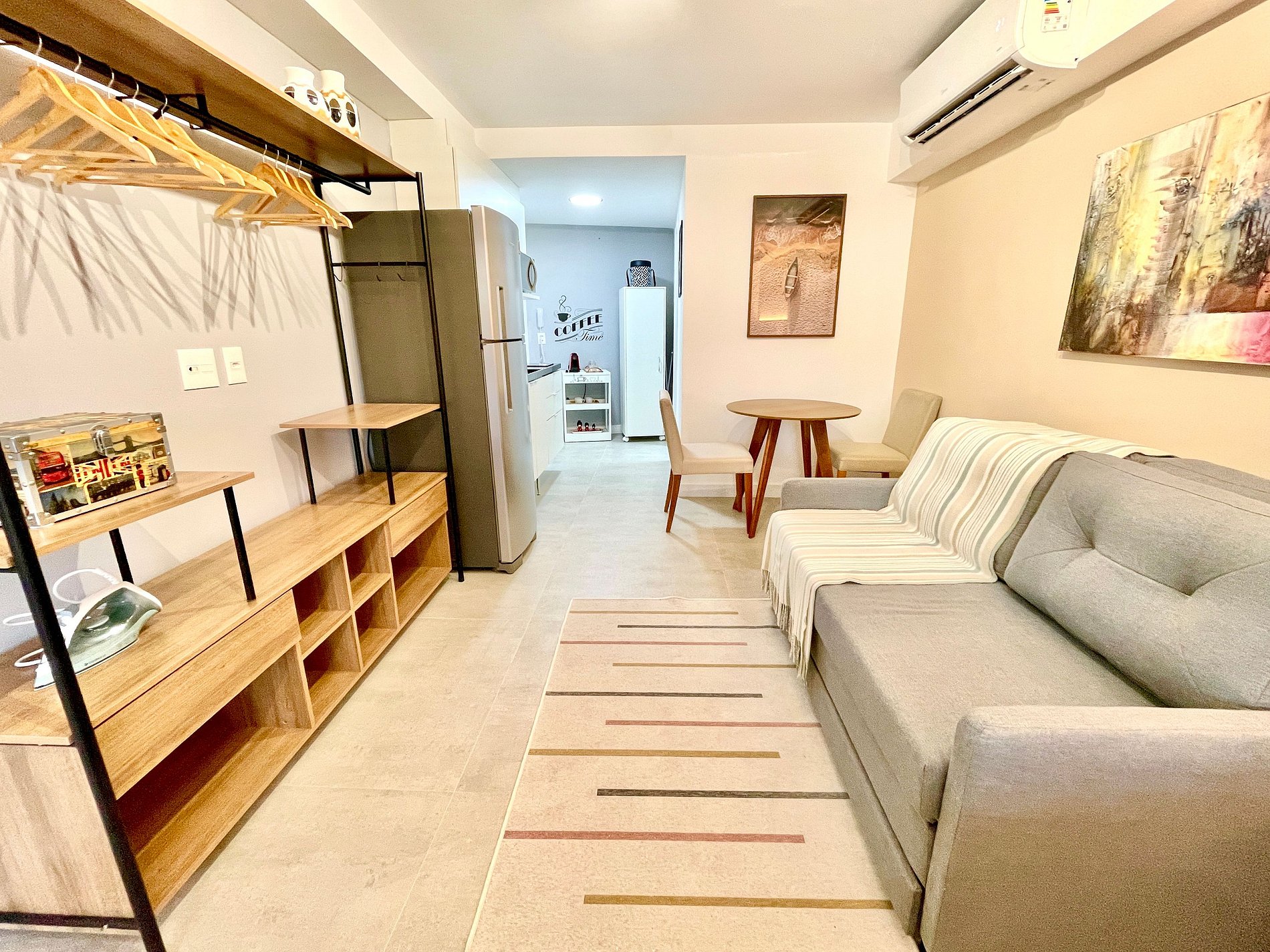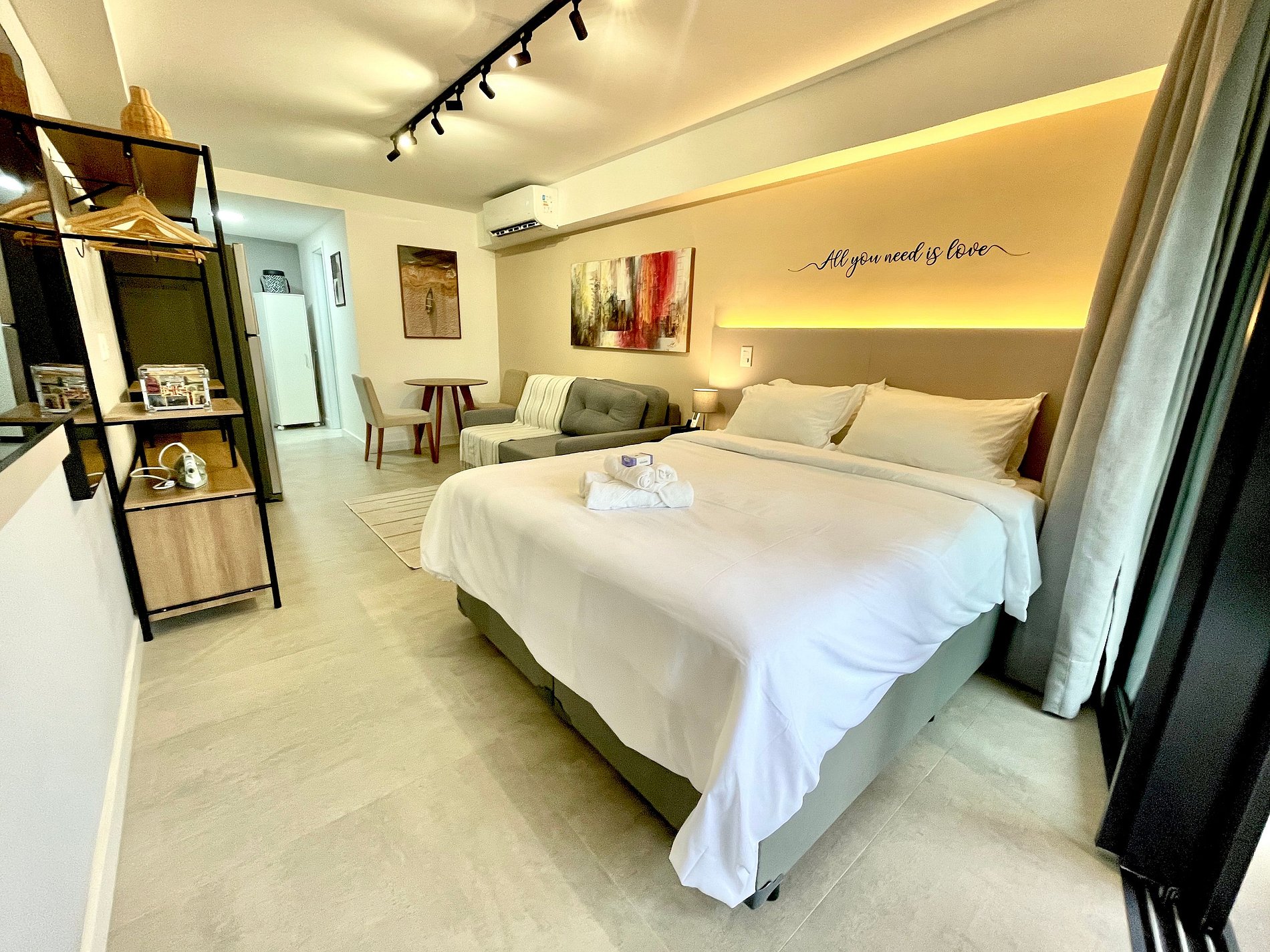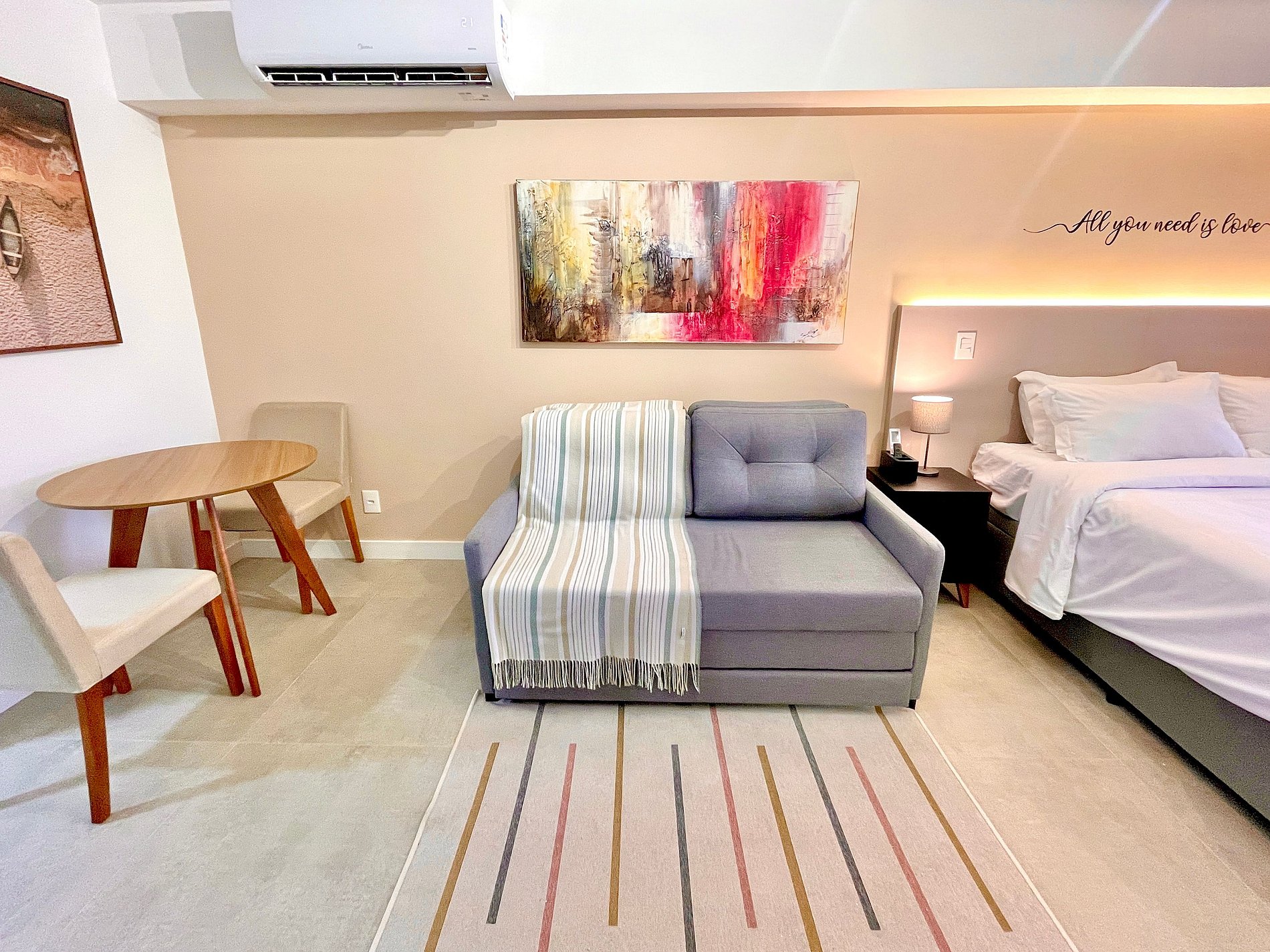 The space is complete and offers a super pleasant bedroom/living room with excellent decoration, premium sofa bed (double bed), queen bed, closets, air conditioning, Smart TV, blackout curtain, dining table, washing machine, high speed internet , in addition to having a super charming balcony with VIEWS TO THE CHRIST! Complete bathroom and shower with good pressure. Kitchen equipped with refrigerator, cooktop, microwave, Nespresso machine, Sandwich Maker Grill, Airfryer and various utensils. It also offers other amenities, such as a portable crib, hairdryer, ironing board and iron and amenities kit (shampoo, conditioner and soap).