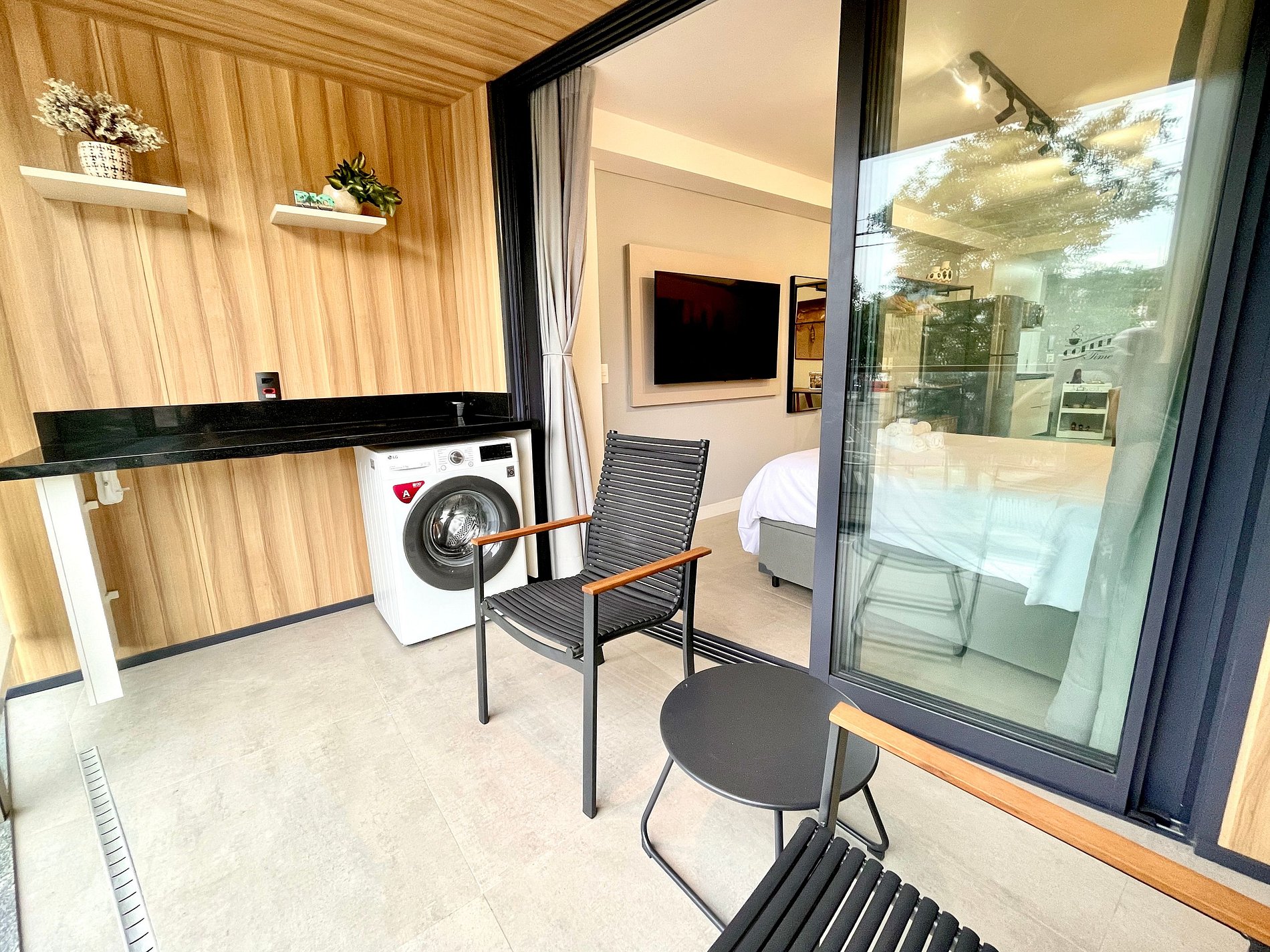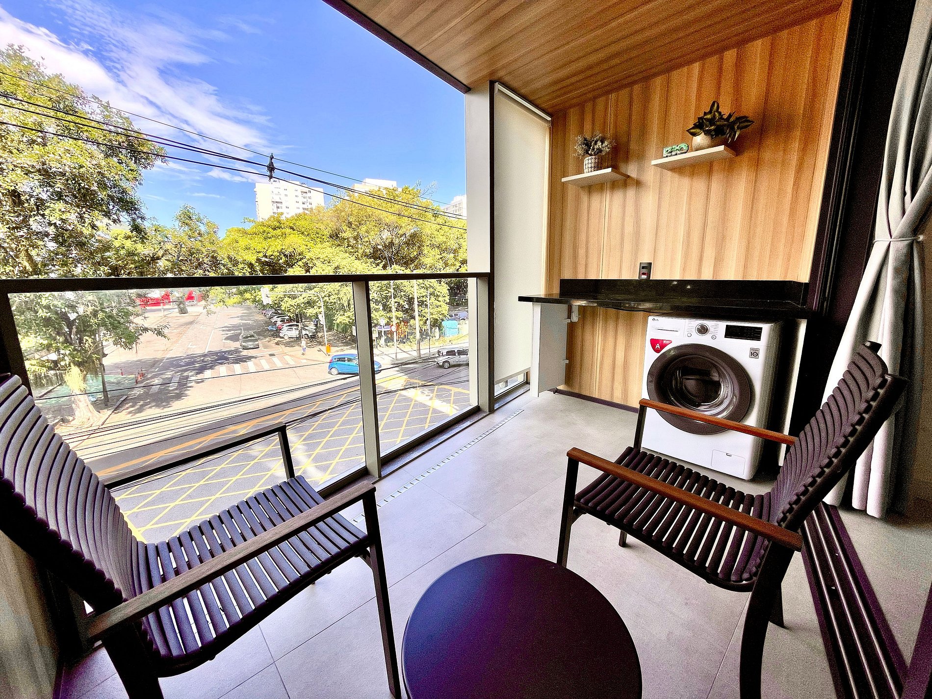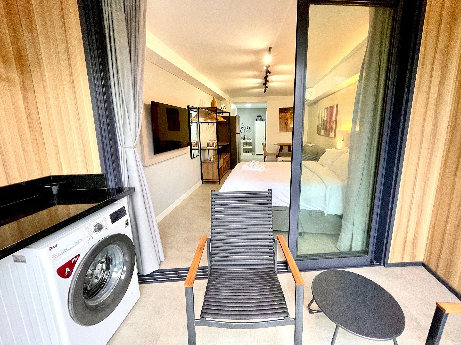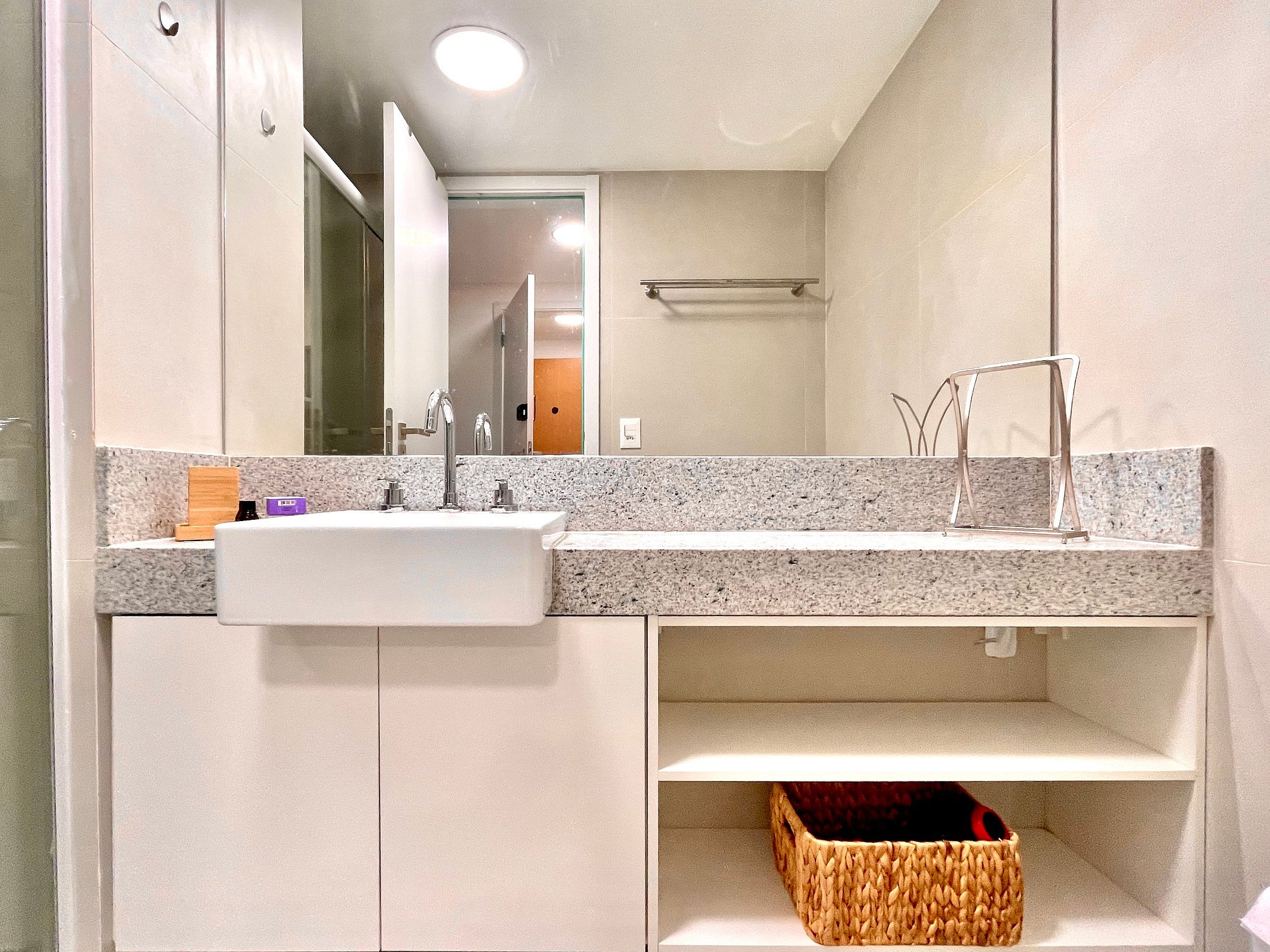 The space is complete and offers a super pleasant bedroom/living room with excellent decoration, premium sofa bed (double bed), queen bed, closets, air conditioning, Smart TV, blackout curtain, dining table, washing machine, high speed internet , in addition to having a super charming balcony with VIEWS TO THE CHRIST! Complete bathroom and shower with good pressure. Kitchen equipped with refrigerator, cooktop, microwave, Nespresso machine, Sandwich Maker Grill, Airfryer and various utensils. It also offers other amenities, such as a portable crib, hairdryer, ironing board and iron and amenities kit (shampoo, conditioner and soap).