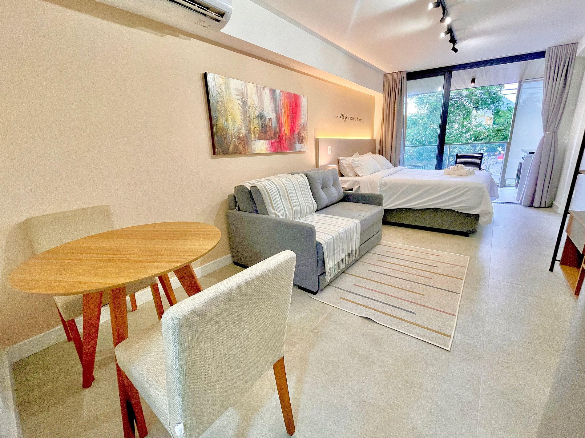 NEW Studio in Leblon, modern, cozy and VERY well located. Perfect for young people and families who come for leisure or work and who are looking for comfort in a prime location and can do everything on foot. Located just a few minutes from the beach and 400m from Lagoa Rodrigo de Freitas, close to the metro station, Shopping Leblon, and next to the trendy Dias Ferreira street, with the best bars and restaurants. The Studio has a pool, gym, laundry and 24h concierge, as well as a parking space.