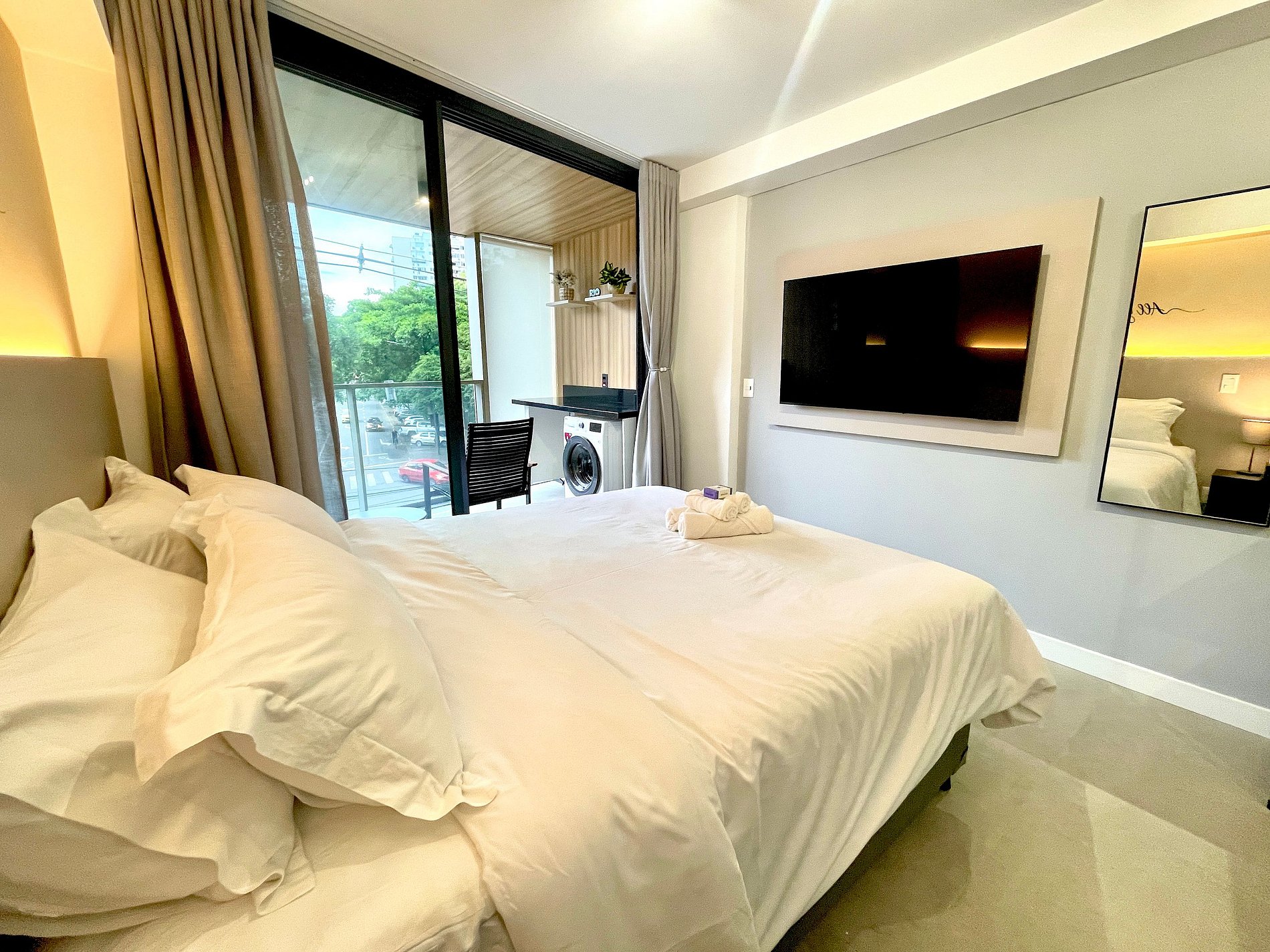 NEW Studio in Leblon, modern, cozy and VERY well located. Perfect for young people and families who come for leisure or work and who are looking for comfort in a prime location and can do everything on foot. Located just a few minutes from the beach and 400m from Lagoa Rodrigo de Freitas, close to the metro station, Shopping Leblon, and next to the trendy Dias Ferreira street, with the best bars and restaurants. The Studio has a pool, gym, laundry and 24h concierge, as well as a parking space.