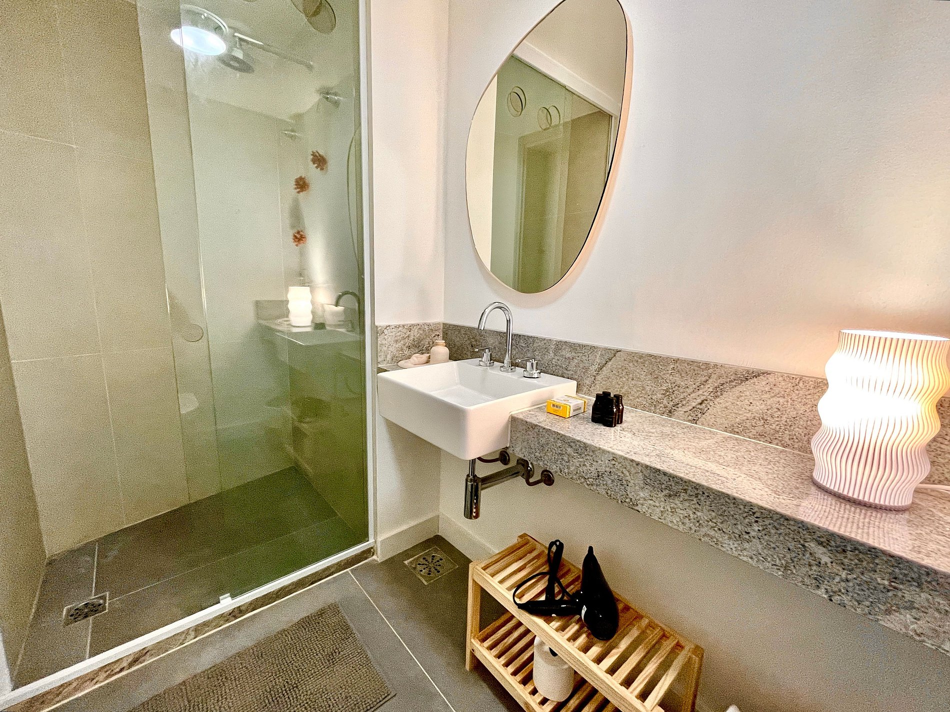 Studio in Leblon completely renovated, modern, cozy and well located. Ideal for people and families who come for leisure or work and who are looking for comfort, a prime location and who can do everything on foot. Located just a few minutes walk from the beach, Lagoa, the metro station and close to all shops, the best bars and restaurants, gyms and Shopping Leblon. The Studio has a swimming pool, gym, laundry and 24-hour concierge, as well as a free parking space.