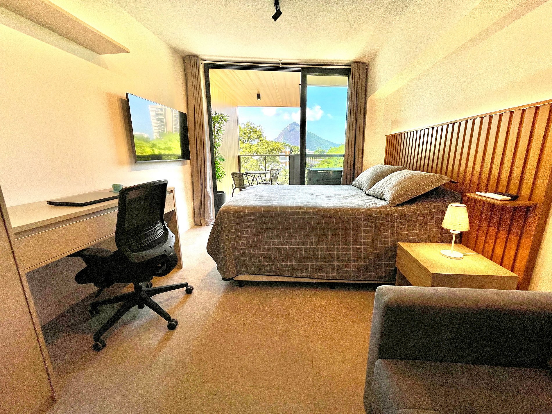 Studio no Leblon completamente reformado, moderno, aconchegante e bem localizado. Ideal para pessoas e famílias que vêm a lazer ou a trabalho e que buscam muito conforto, localização nobre e que possam resolver tudo a pé. Localizado a poucos minutos a pé da praia, da Lagoa, da estação do metrô e próximo a todo comércio, melhores bares e restaurantes, academias e do Shopping Leblon. O Studio conta com piscina, academia, lavanderia e portaria 24h, além de uma vaga de garagem gratuita.