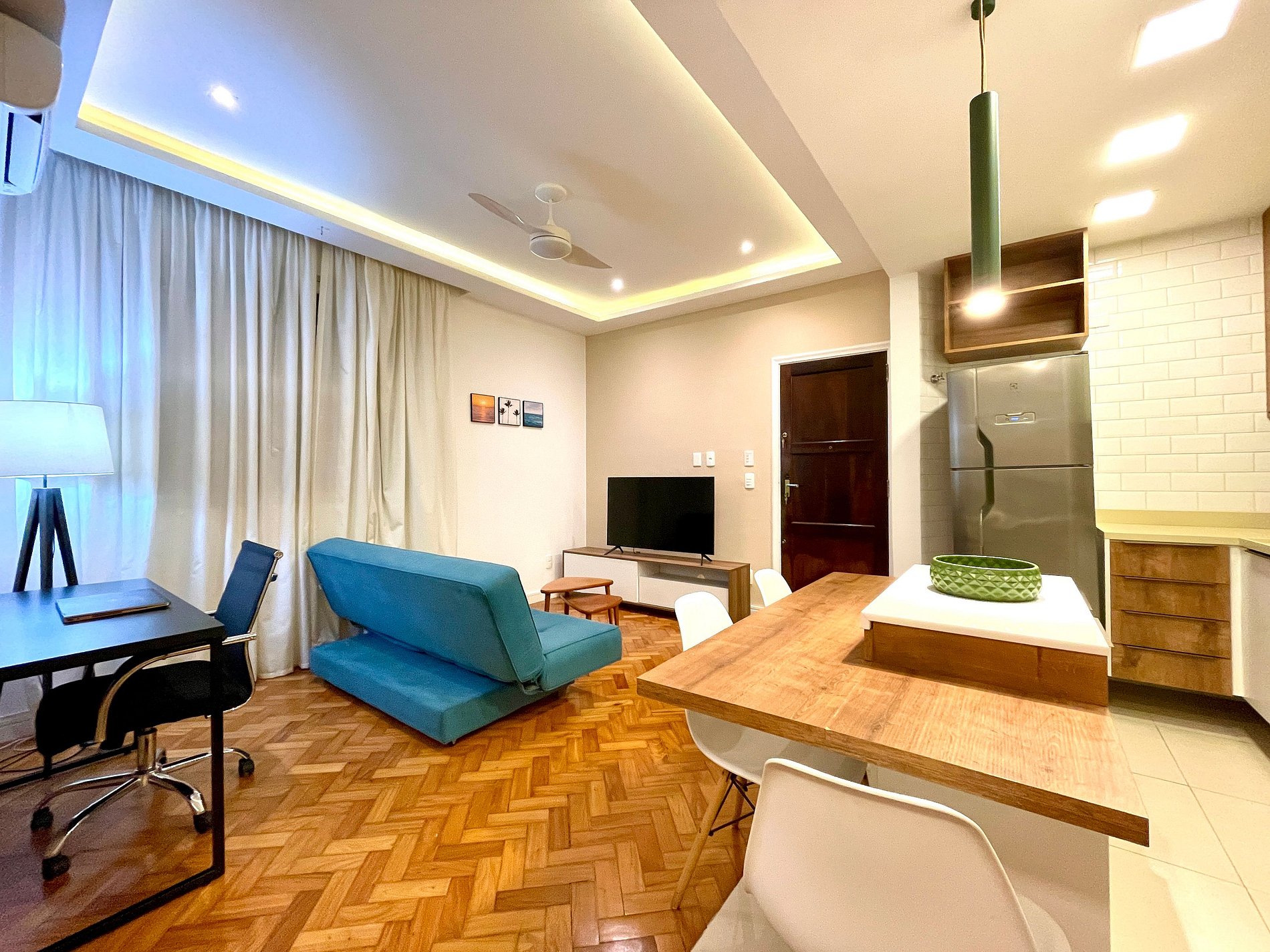 Apartment completely renovated, modern, super cozy and well located. Ideal for people and families who come for leisure or work and who are looking for comfort, a prime location and who can do everything on foot. Located 10 minutes walk from the beach, Shopping Leblon and Rio Design Leblon shopping mall, 5 minutes from the metro station and next to the trendy Rua Dias Ferreira, all the shops, the best bars and restaurants, cinemas and gyms.