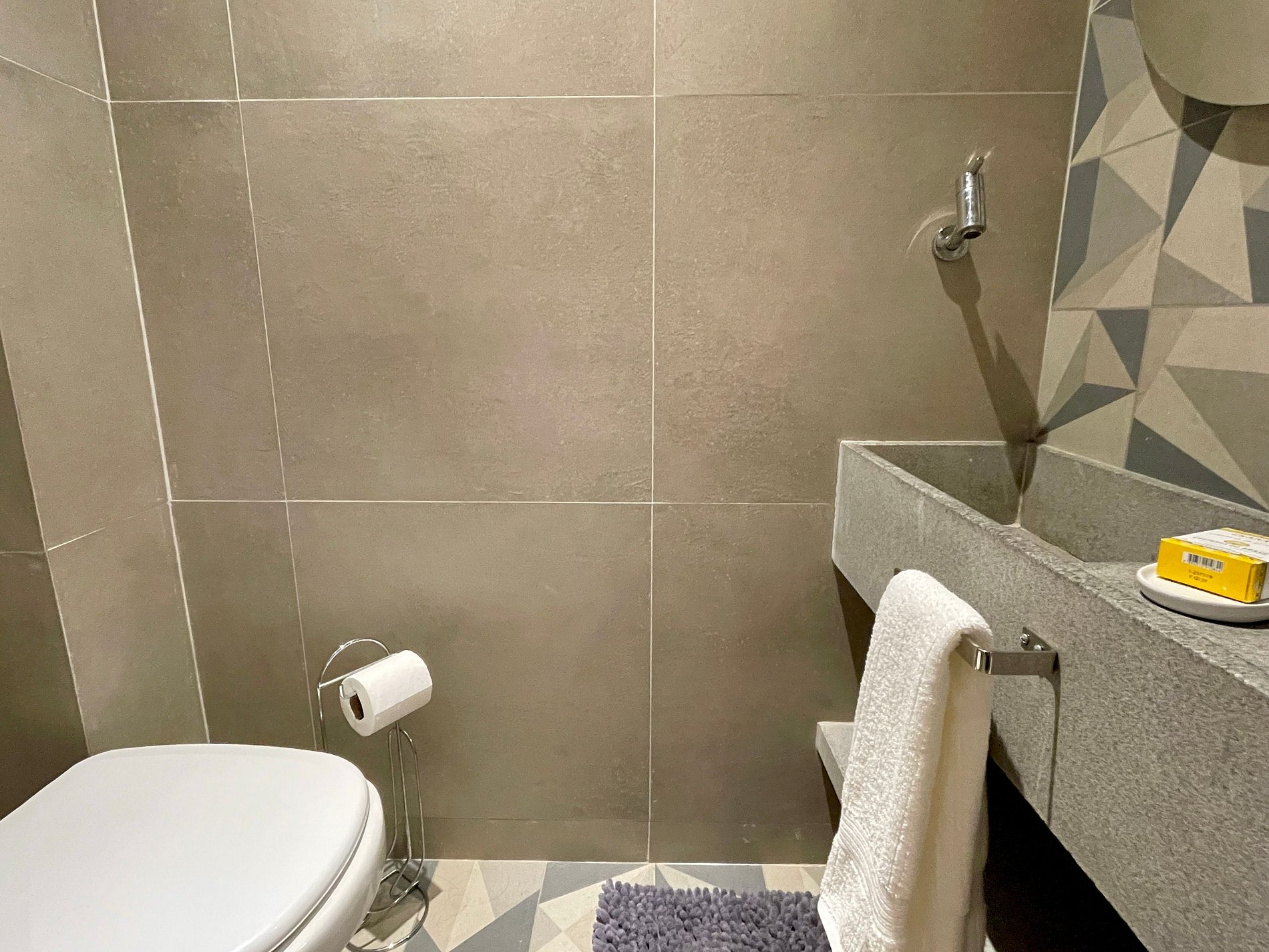 Acogedora suite con cama doble, cortina blackout, espejo y armarios. El baño es completo con ventana y ducha con buena presión.