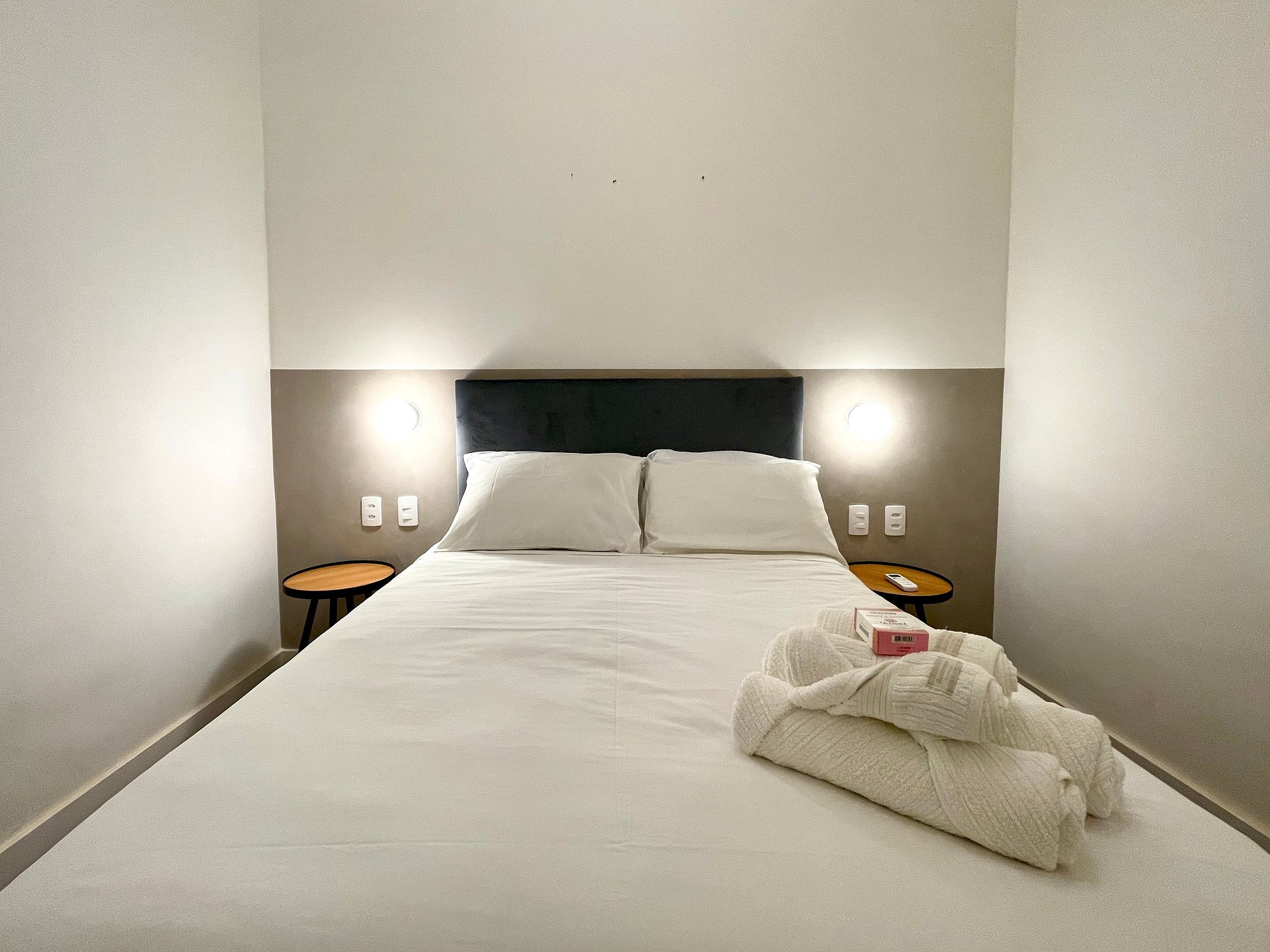Acogedora habitación con aire acondicionado, smart TV, sofá-cama, sillas, mesa de comedor. Internet de alta velocidad. La cocina está integrada en el salón y está totalmente equipada con nevera, fogones, microondas, horno, cafetera Nespresso y utensilios varios. Hay 2 dormitorios, 1 en suite con cama doble y 1 dormitorio con cama doble, ambos con aire acondicionado, cortinas opacas y armarios. Además del baño en suite, hay otro baño completo para el segundo dormitorio. El piso está al fondo y no tiene vista, también ofrece otras comodidades como cuna portátil, secador de pelo, plancha y tabla de planchar y un kit de amenities (champú, acondicionador y jabón).