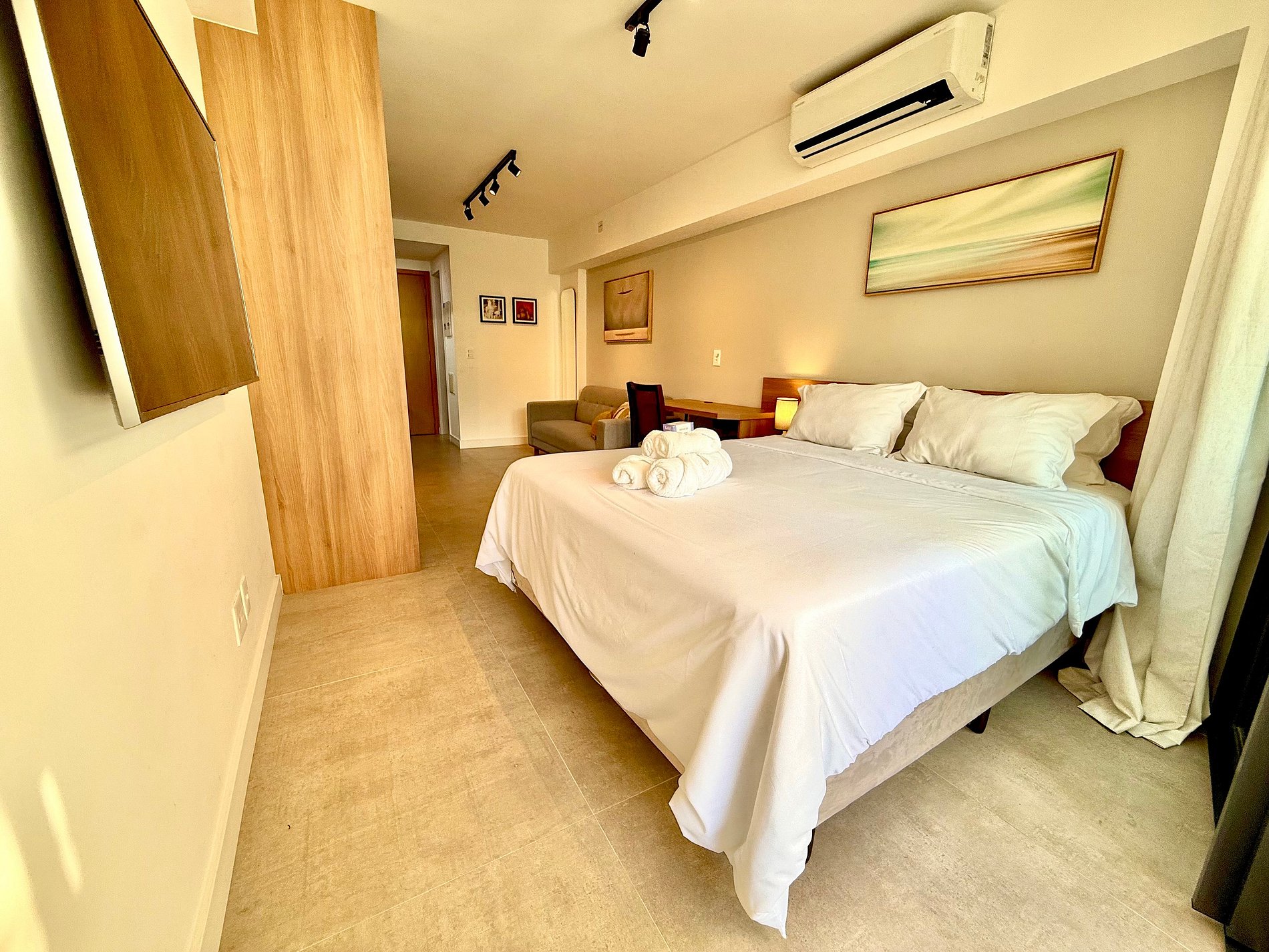Studio en Leblon nuevo, totalmente renovado, moderno, acogedor y bien ubicado. Ideal para personas que visitan por placer o negocios y buscan comodidad, una ubicación privilegiada y fácil acceso a pie a todo. A solo unos minutos a pie de la playa, la laguna Rodrigo de Freitas, el metro y cerca de todo tipo de comercios, incluyendo bares, restaurantes, gimnasios, Shopping Leblon y la famosa calle Dias Ferreira. Edificio con piscina, gimnasio, lavandería, recepción 24h y aparcamiento gratuito.