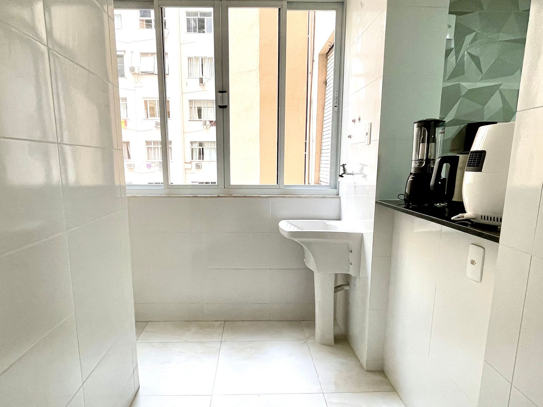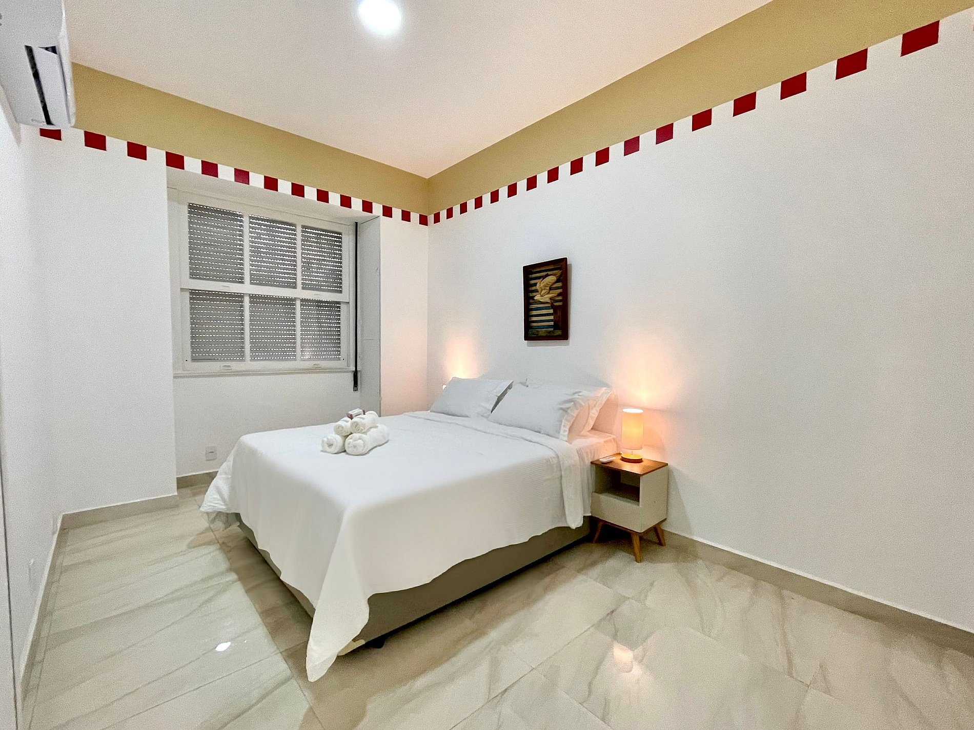 Apartamento moderno, estiloso, espaçoso, super aconchegante e localizado exatamente ao lado da Praia de Copacabana. Ideal para pessoas e famílias que vêm a lazer ou a trabalho e que buscam muito conforto, localização nobre e que possam resolver tudo a pé. Próximo a todo comércio, aos melhores bares e restaurantes, academias, estação do metro, além de estar muito próximo ao bairro de Ipanema. A portaria do edifício funciona 24h.