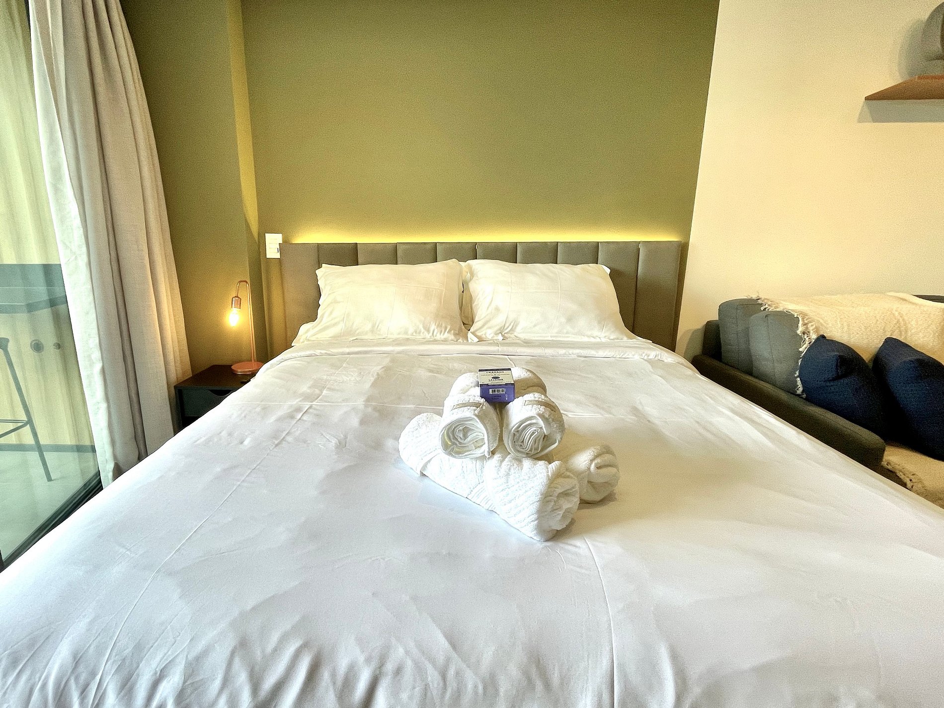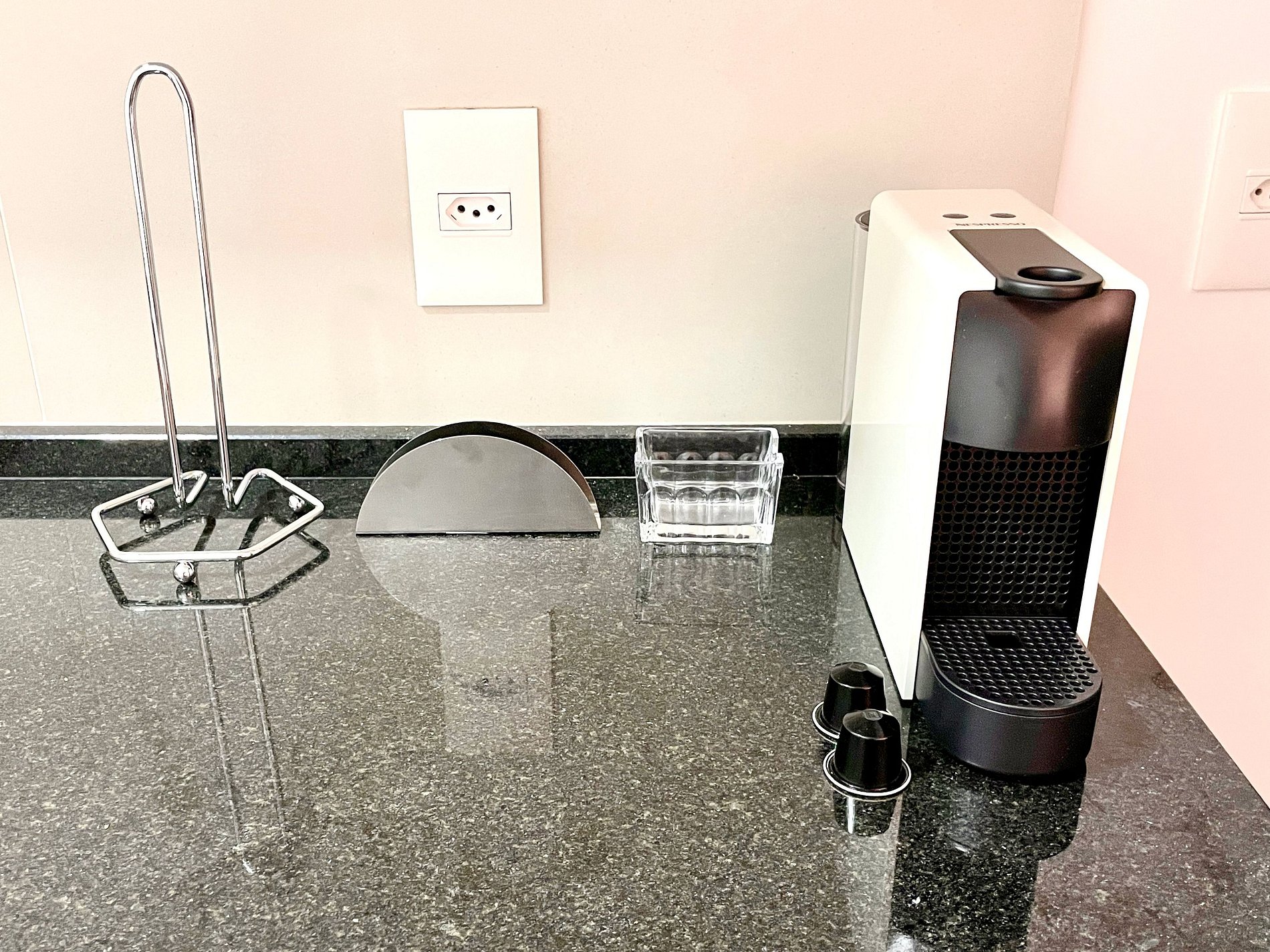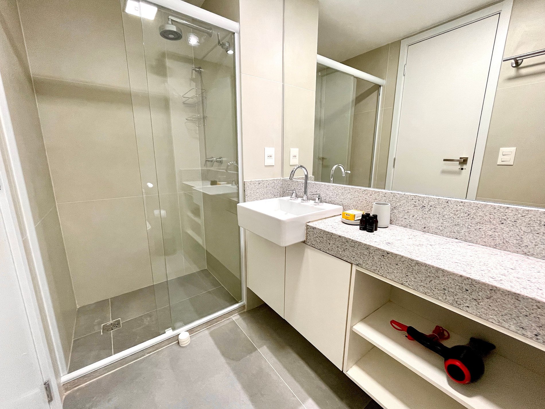 Dormitorio/sala de estar súper agradable con sofá cama, cama queen, closets, aire acondicionado, Smart TV, cortinas blackout, mesa de comedor, varios enchufes, además de un balcón súper encantador. Internet de alta velocidad. Baño completo con ducha con buena presión. Cocina equipada con frigorífico, vitrocerámica, microondas, cafetera Nespresso y utensilios varios. También ofrece otras comodidades, como cuna portátil, secador de pelo, tabla de planchar y plancha y kit de amenidades (champú, acondicionador y jabón).