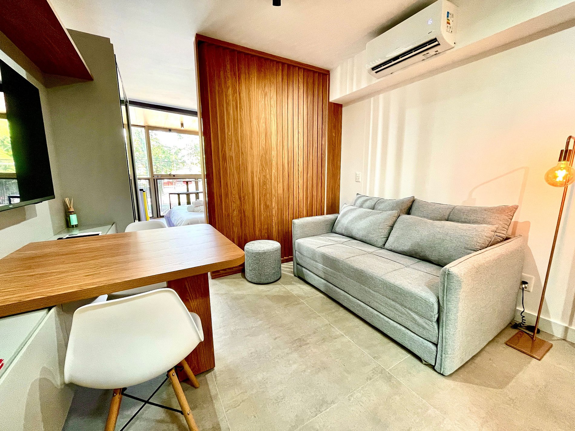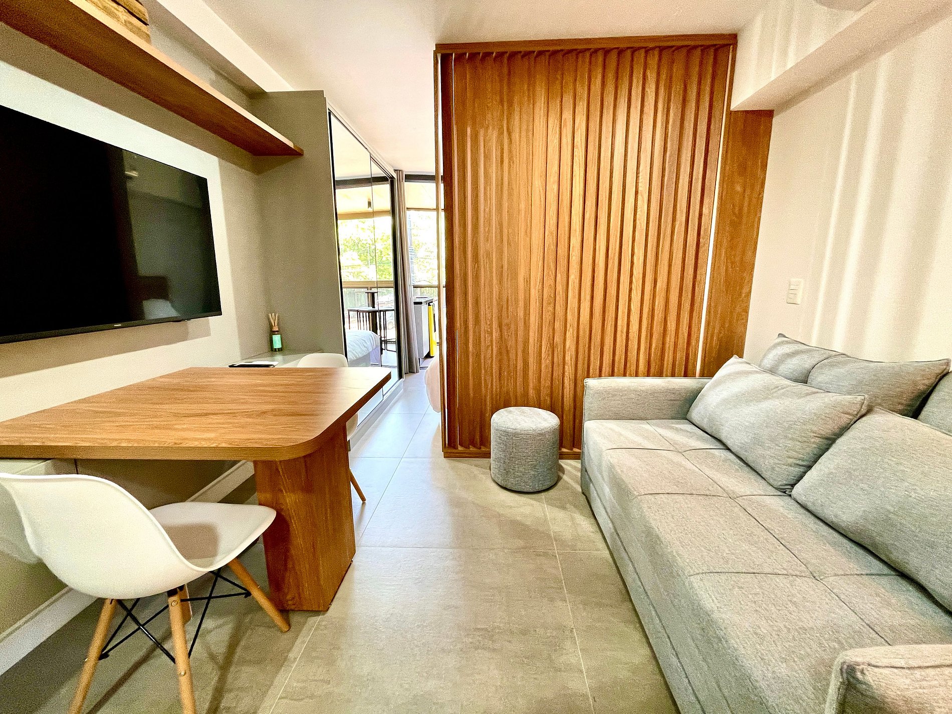 Studio en Leblon nuevo, totalmente renovado, moderno, acogedor y bien ubicado. Ideal para personas que visitan por placer o negocios y buscan comodidad, una ubicación privilegiada y fácil acceso a pie a todo. A solo unos minutos a pie de la playa, la laguna Rodrigo de Freitas, el metro y cerca de todo tipo de comercios, incluyendo bares, restaurantes, gimnasios, Shopping Leblon y la famosa calle Dias Ferreira. Edificio con piscina, gimnasio, lavandería, recepción 24h y aparcamiento gratuito.