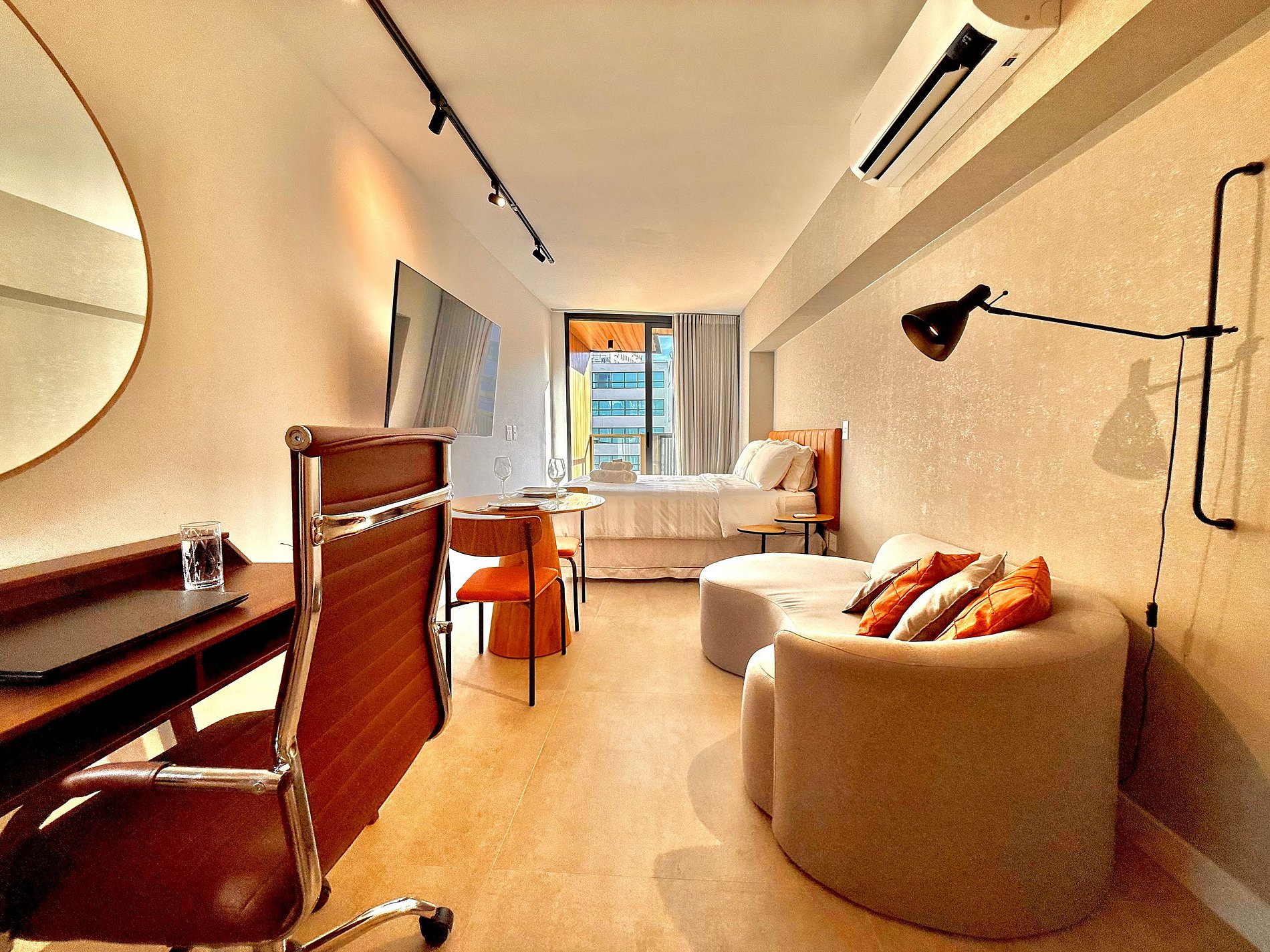 Studio en Leblon nuevo, totalmente renovado, moderno, acogedor y bien ubicado. Ideal para personas que visitan por placer o negocios y buscan comodidad, una ubicación privilegiada y fácil acceso a pie a todo. A solo unos minutos a pie de la playa, la laguna Rodrigo de Freitas, el metro y cerca de todo tipo de comercios, incluyendo bares, restaurantes, gimnasios, Shopping Leblon y la famosa calle Dias Ferreira. Edificio con piscina, gimnasio, lavandería, recepción 24h y aparcamiento gratuito.