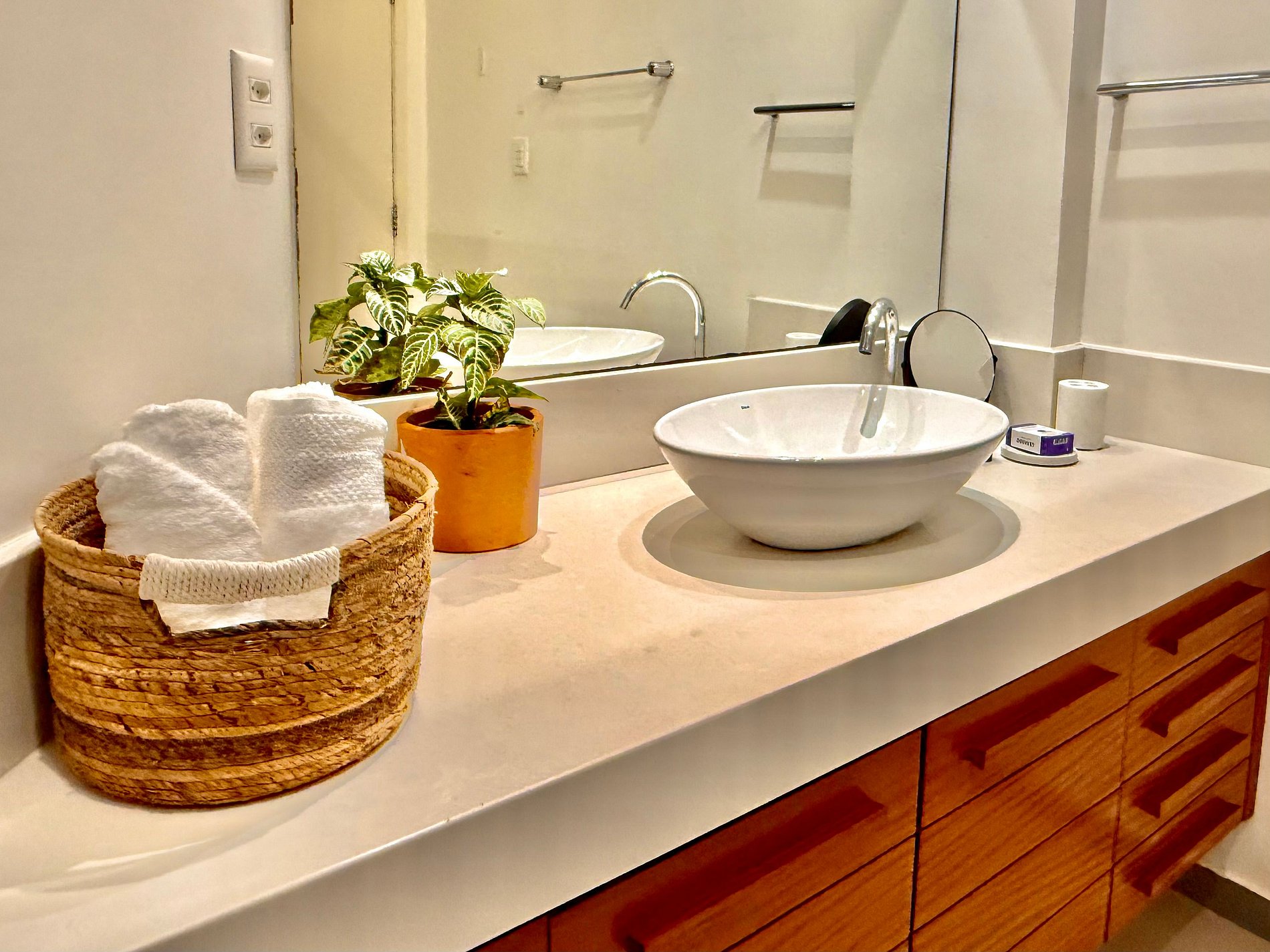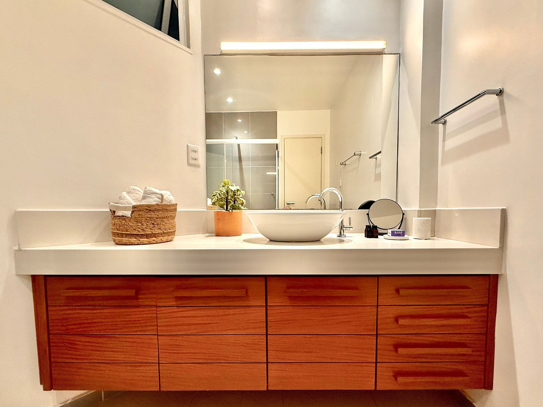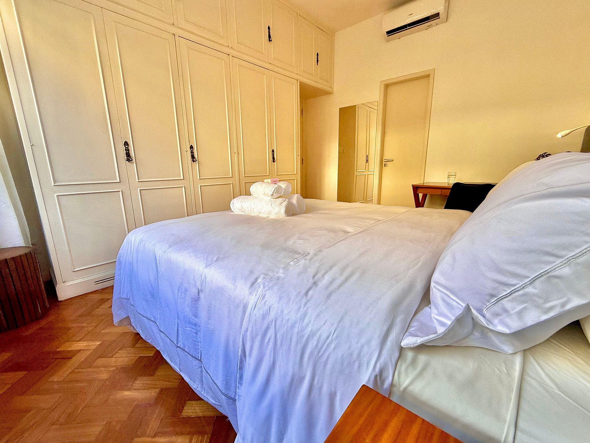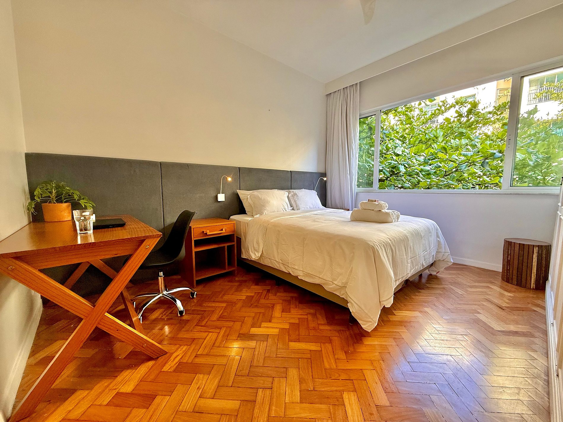 Conforto 5 estrelas: roupas de cama e banho de hotel de luxo, com lençóis de algodão puro e edredons de pluma de ganso, camas queen aconchegantes, internet rápida em todos os ambientes e estações de trabalho completas, ideais para quem também precisa produzir durante a estadia.