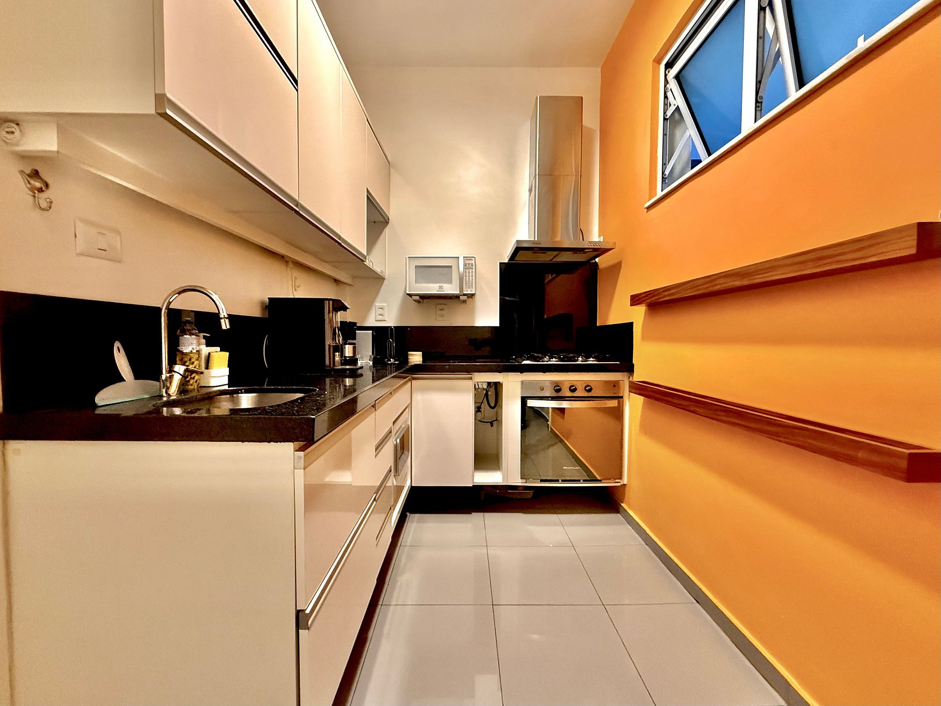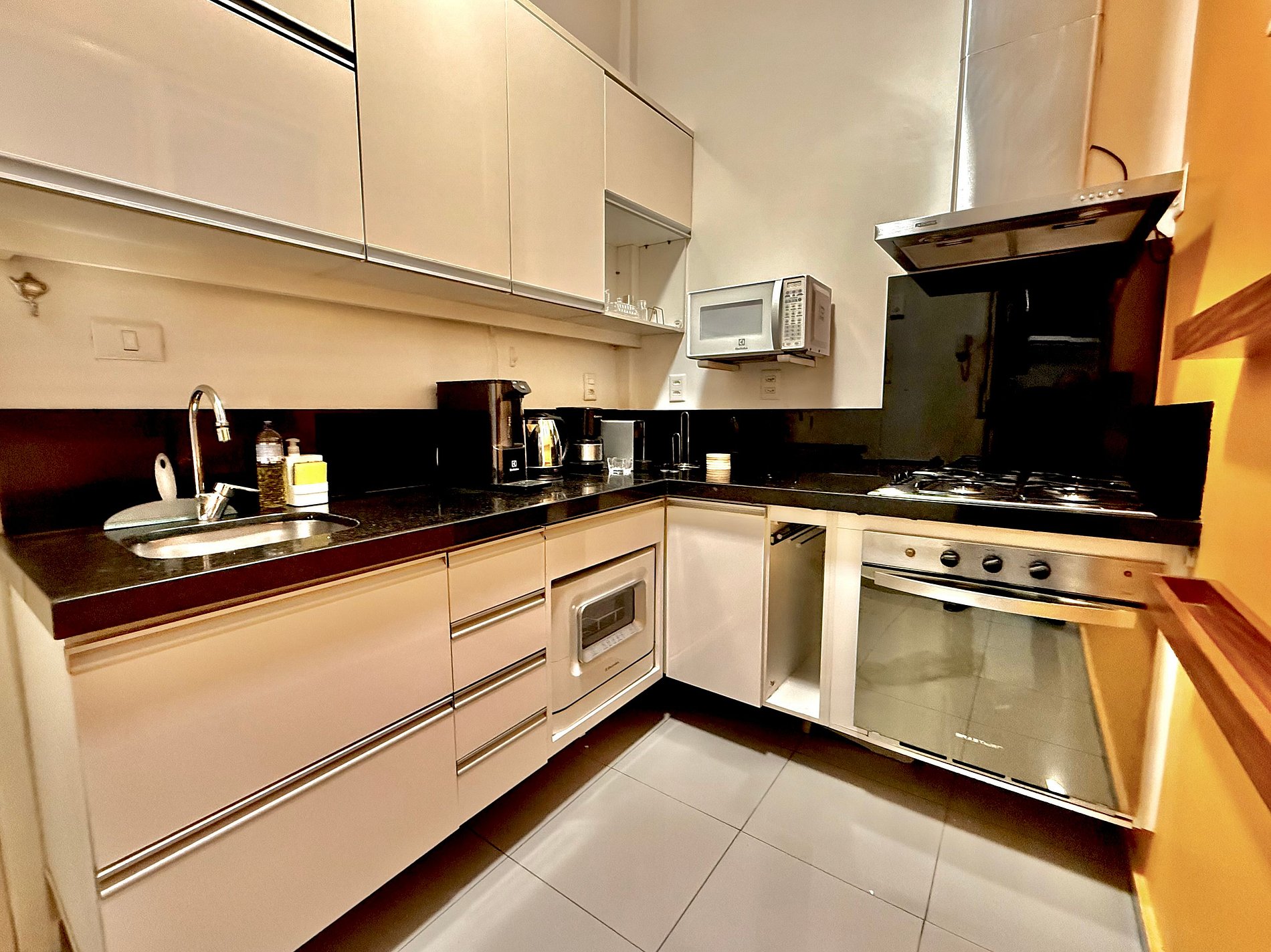A cozinha é um verdadeiro convite para cozinhar: completa com eletrodomésticos modernos (geladeira com freezer, forno, micro-ondas, máquina de lavar-louças, Nespresso, cafeteira, chaleira, filtro de água, moedor de café e muito mais).