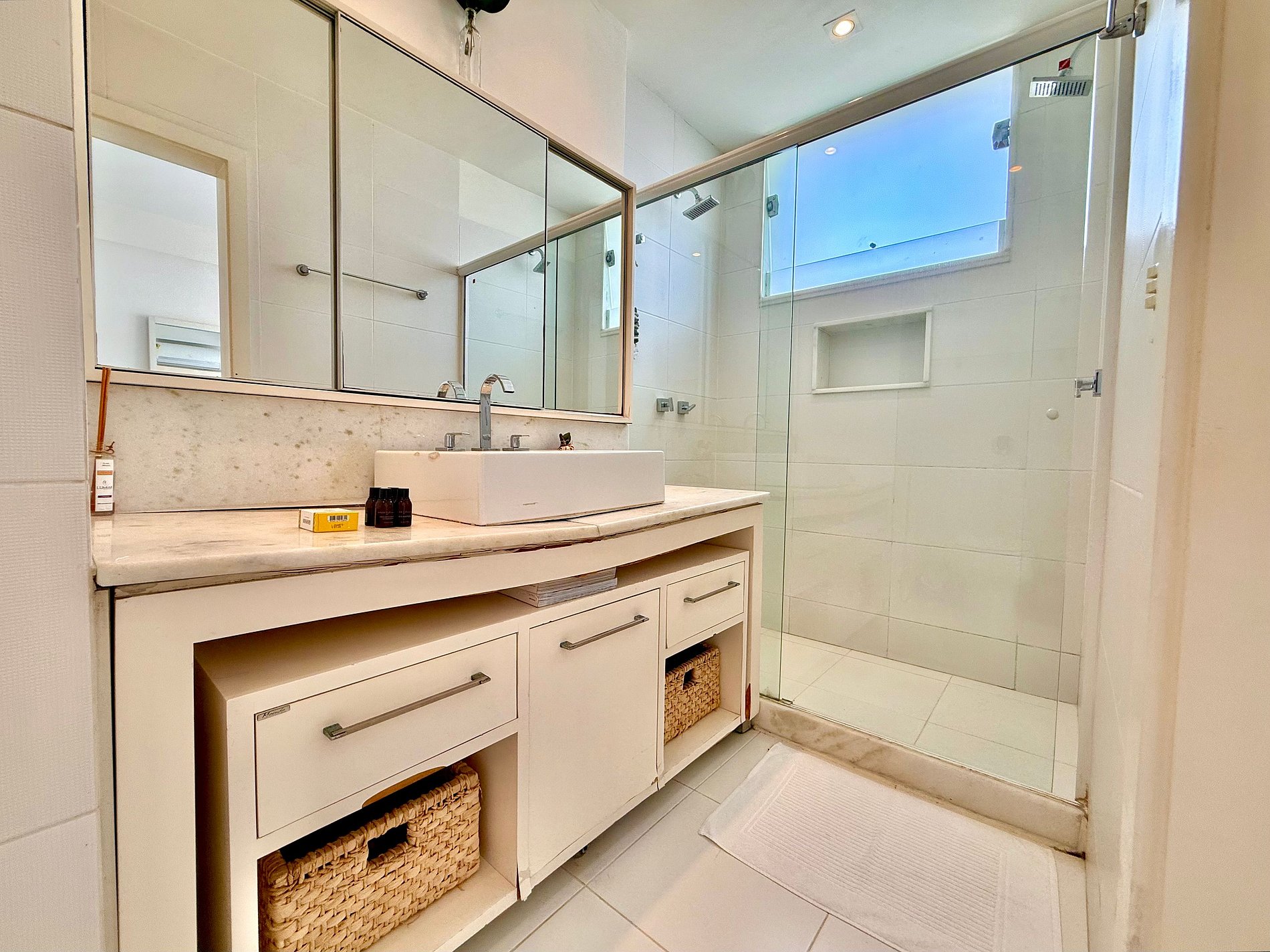 O banheiro adicional é completo e com janela.
