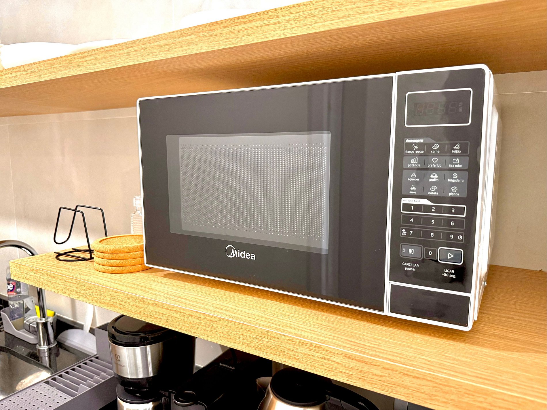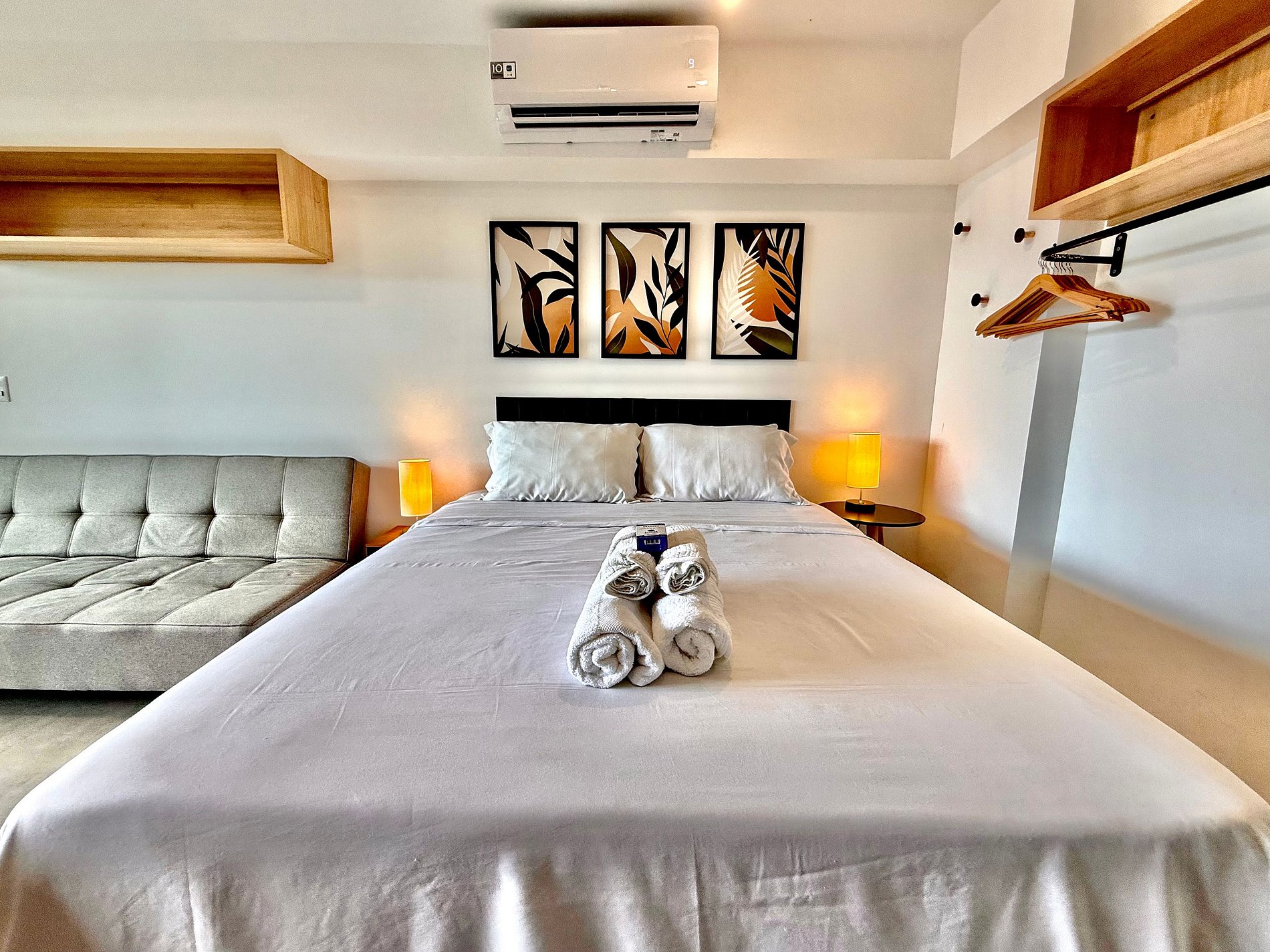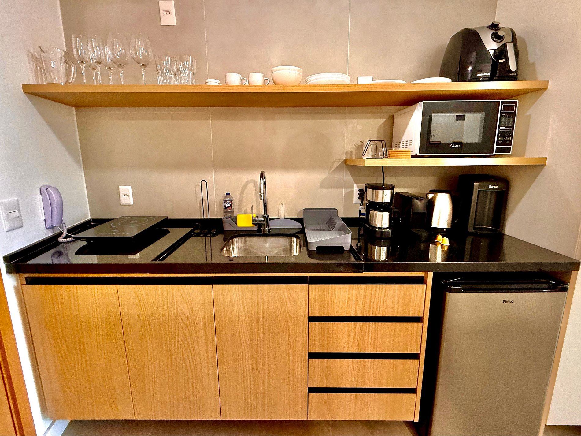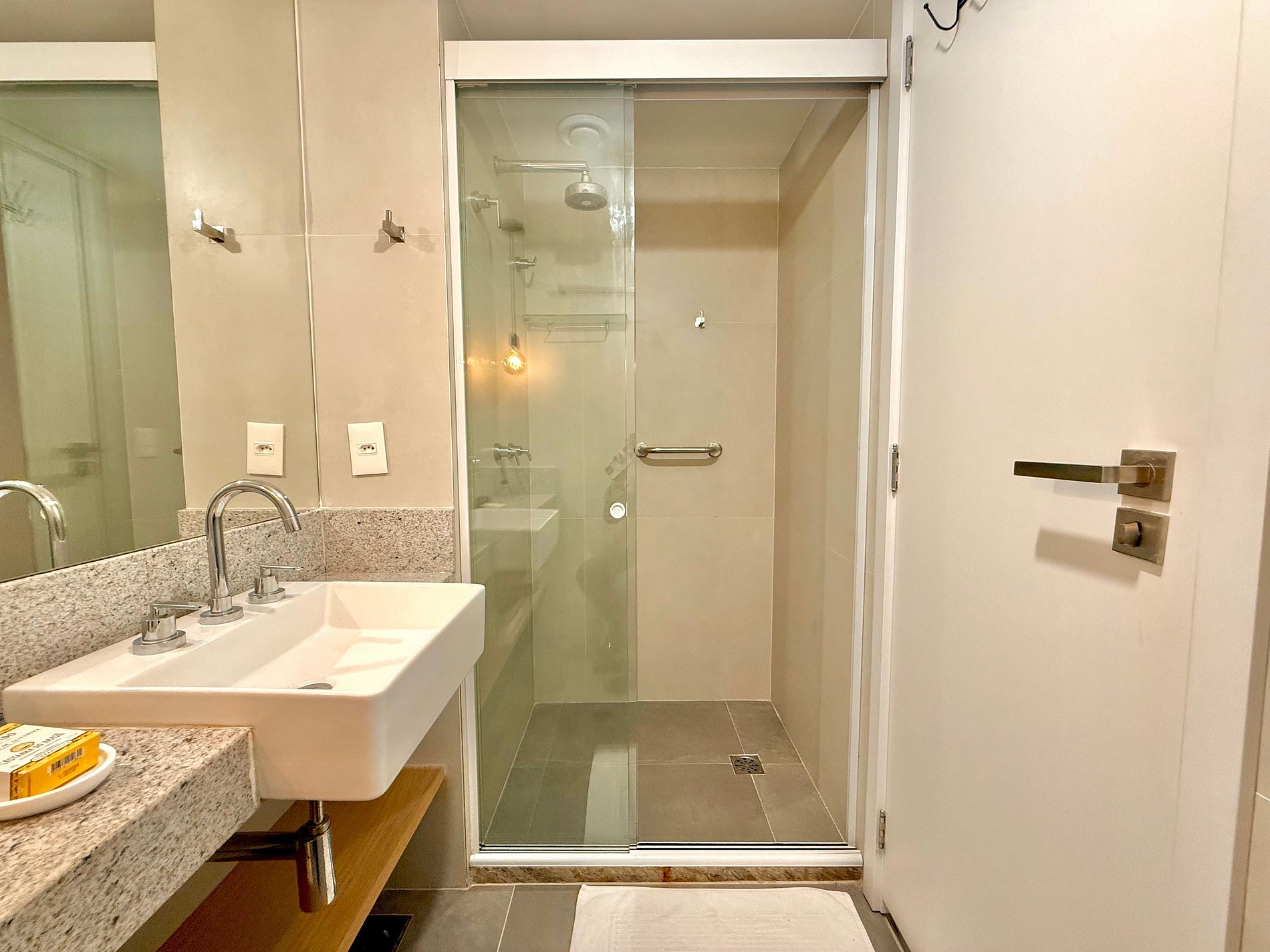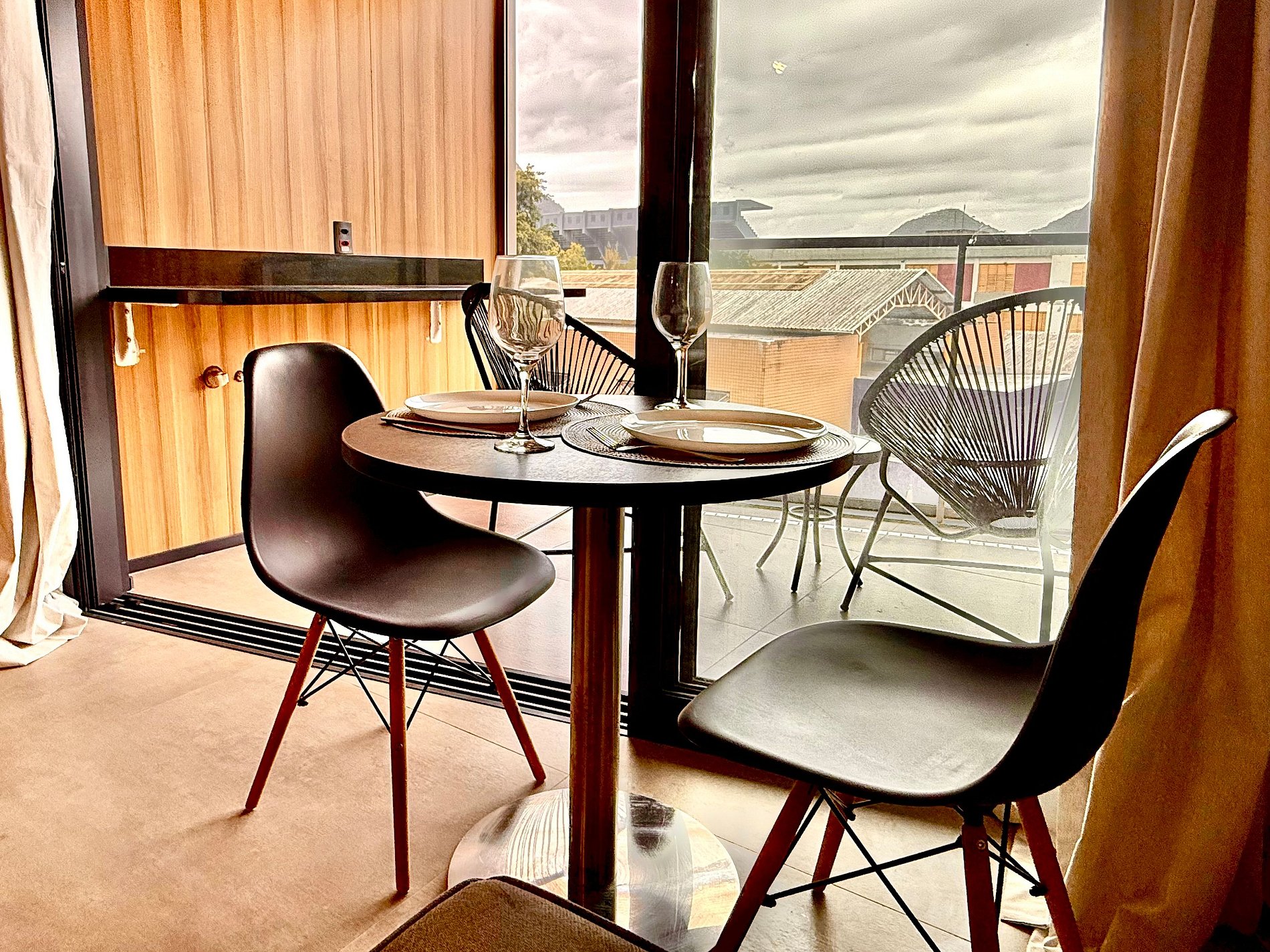 Studio super agradável com cama queen confortável, sofá-cama, armários, ar condicionado potente, Smart TV de 50 polegadas, cortina blackout, mesa de jantar, estação de trabalho, diversas tomadas, além de contar com uma varanda super charmosa com vista para o Cristo Redentor, montanhas e para a rua. Internet de alta velocidade. Banheiro todo completo e com chuveiro com boa pressão. Cozinha equipada com frigobar, cooktop, microondas, máquina de Nespresso, cafeteira elétrica, chaleira elétrica, Airfryer, sanduicheira, filtro de água e diversos utensílios. Oferece também outras comodidades, como berço portátil*, secador de cabelo, ferro de passar roupa e kit de amenities (shampoo, condicionador e sabonete).