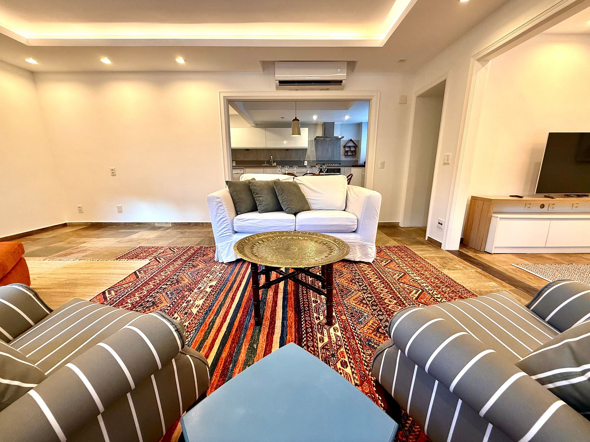 A sala de estar é muito ampla, com ar condicionado, cortina automatizada e é ideal para ter momentos especiais de lazer com amigos e família.