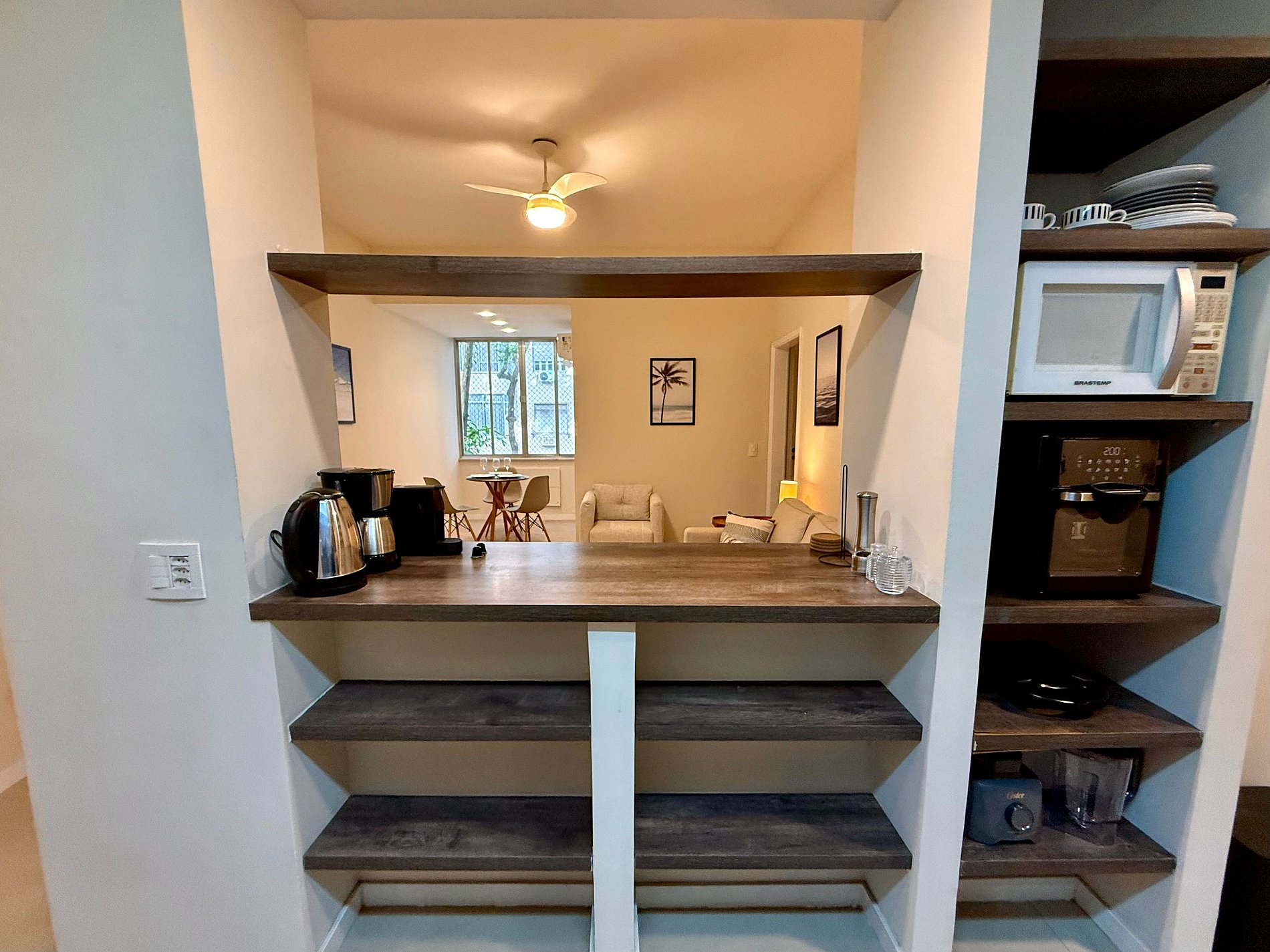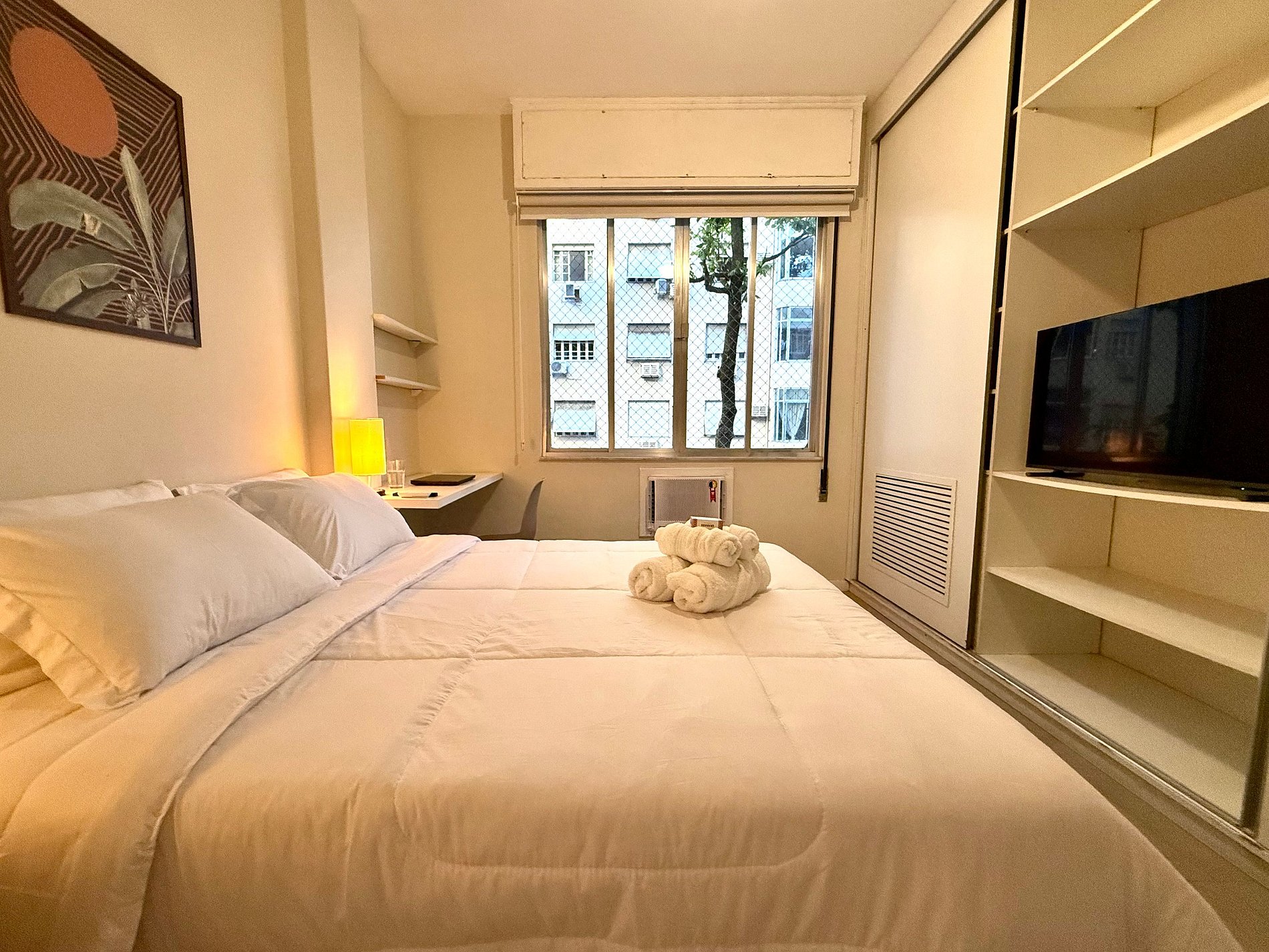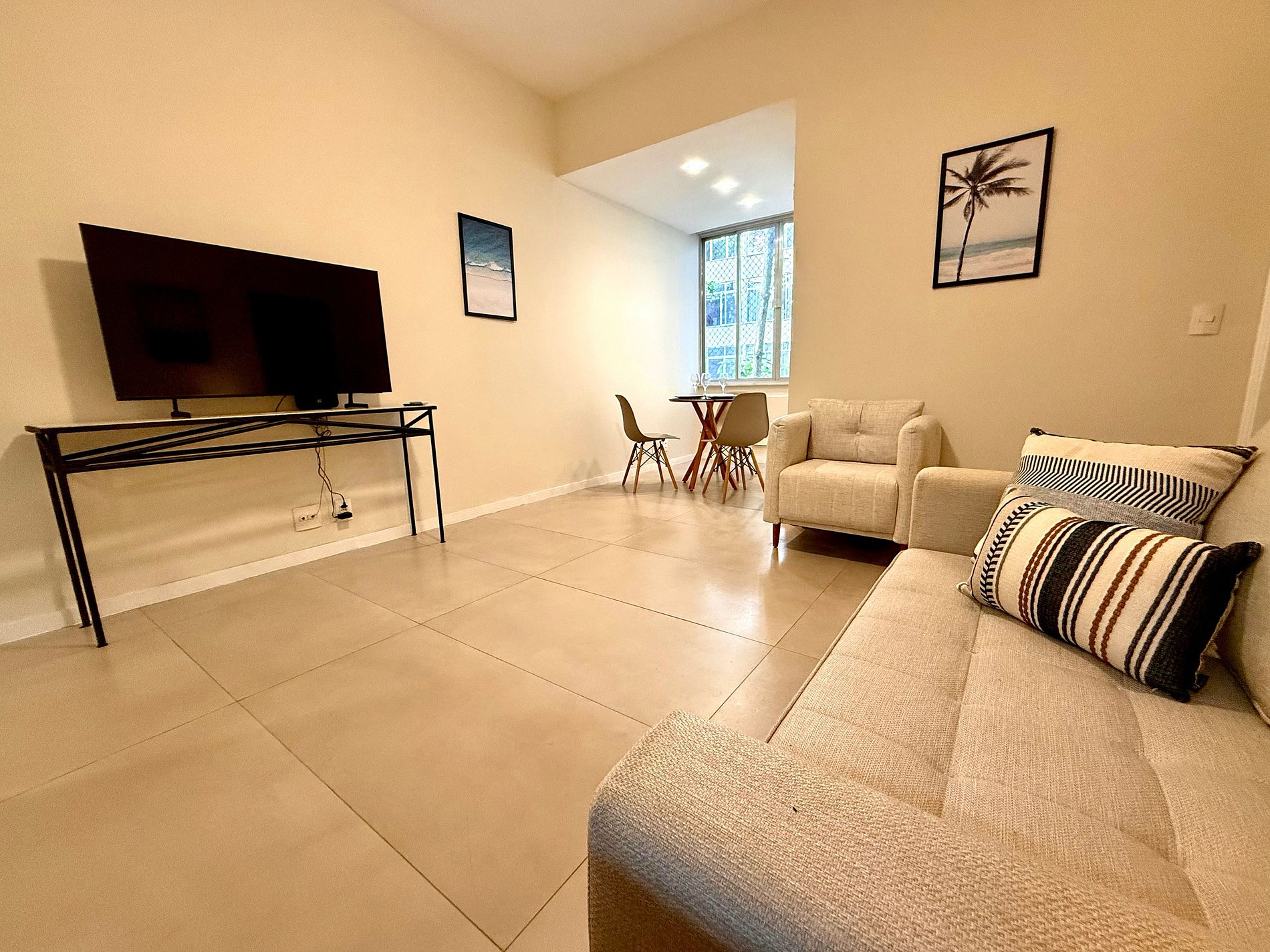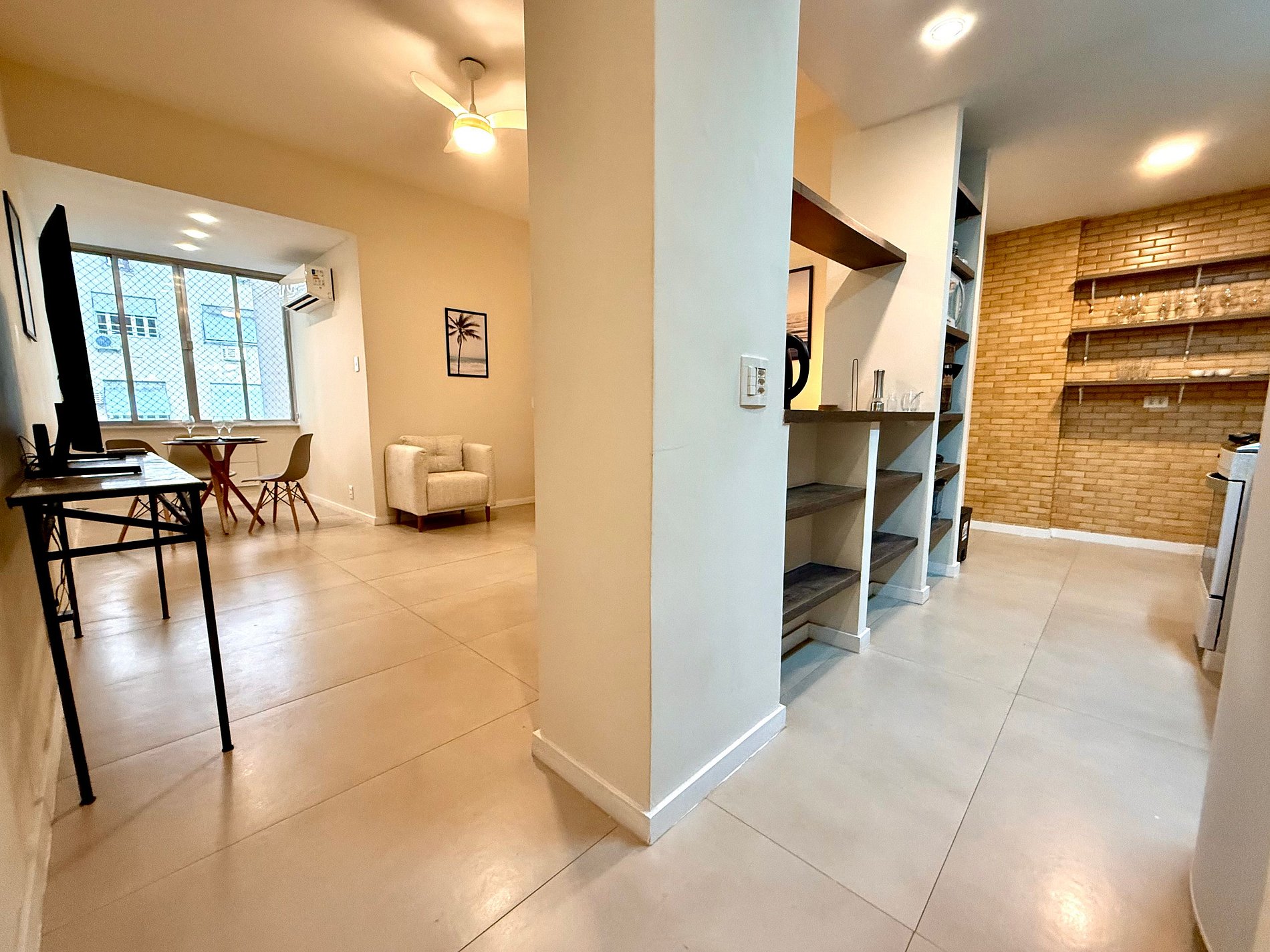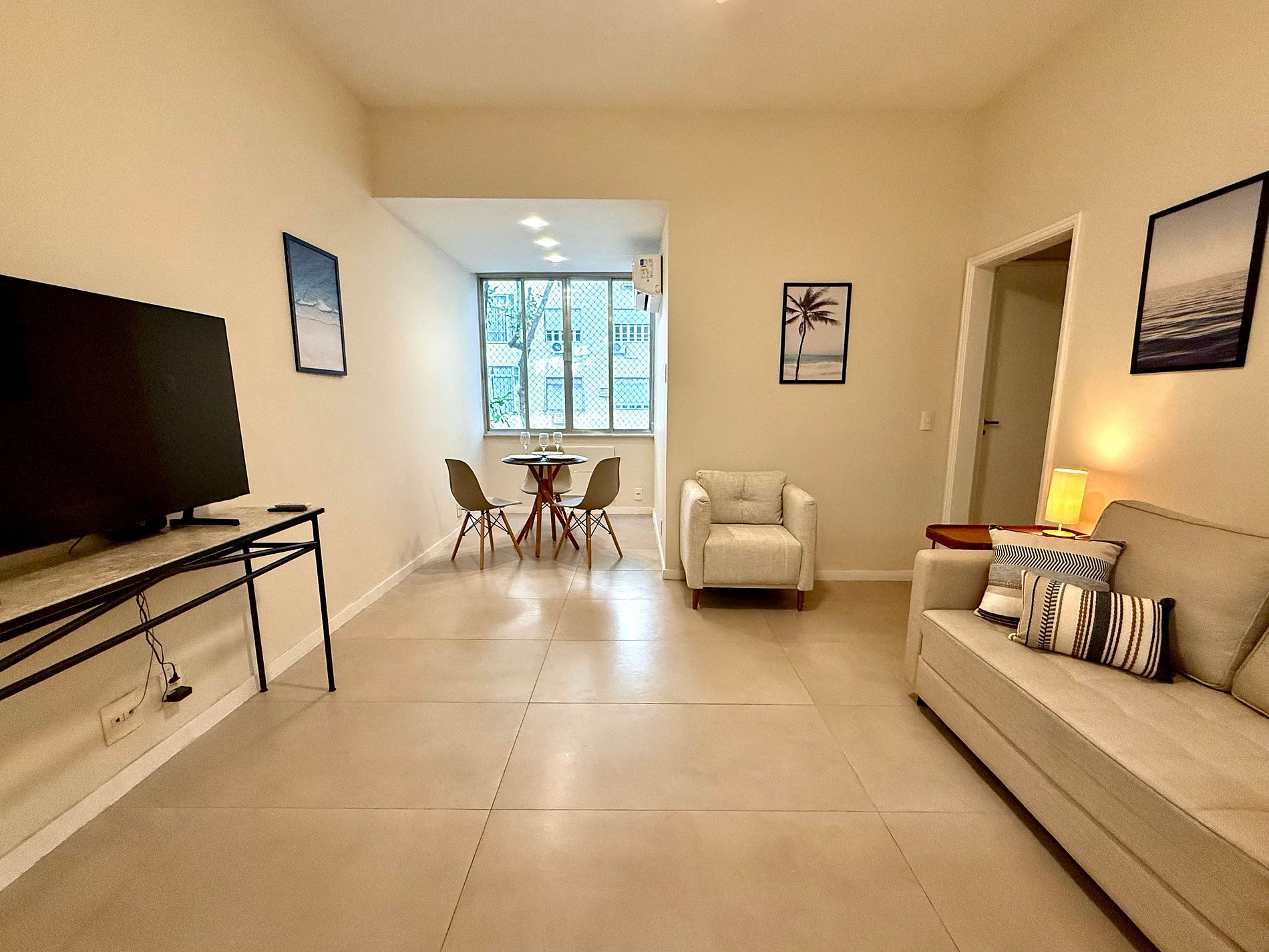 Desfrute desse lindo apartamento que fica muito próxima da praia e na divisa entre os bairros de Copacabana e Ipanema, composto por sala de estar, 1 quarto, 1 banheiro completo, cozinha toda equipada e área de serviço (Lavanderia).