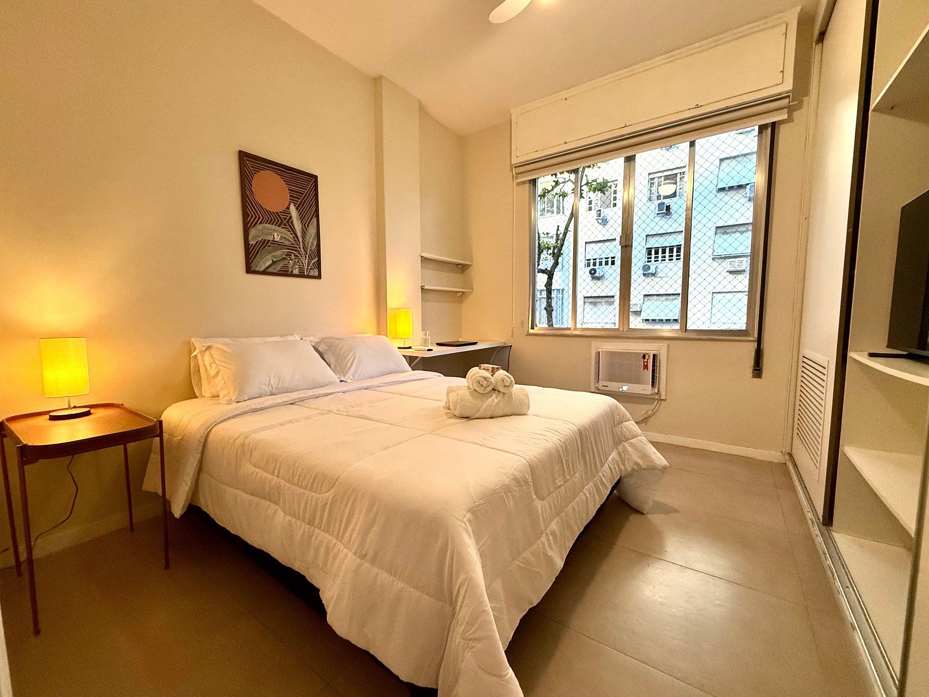 Apartamento super aconchegante, com ambientes espaçosos, em edifício com recepção 24h, elevador e câmeras. Ideal para quem vêm a lazer ou a trabalho e que busca muito conforto, localização nobre e que possa resolver tudo a pé. Localizado a 3 min da praia de Copacabana, a 7 min a pé da praia de Ipanema, a 8 min da estação do metrô, além de estar ao lado de um vasto comércio, diversos bares e restaurantes, supermercados e academias. Internet rápida em todos os ambientes.
