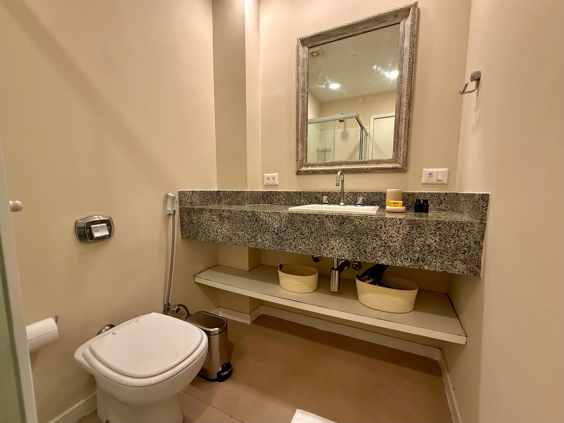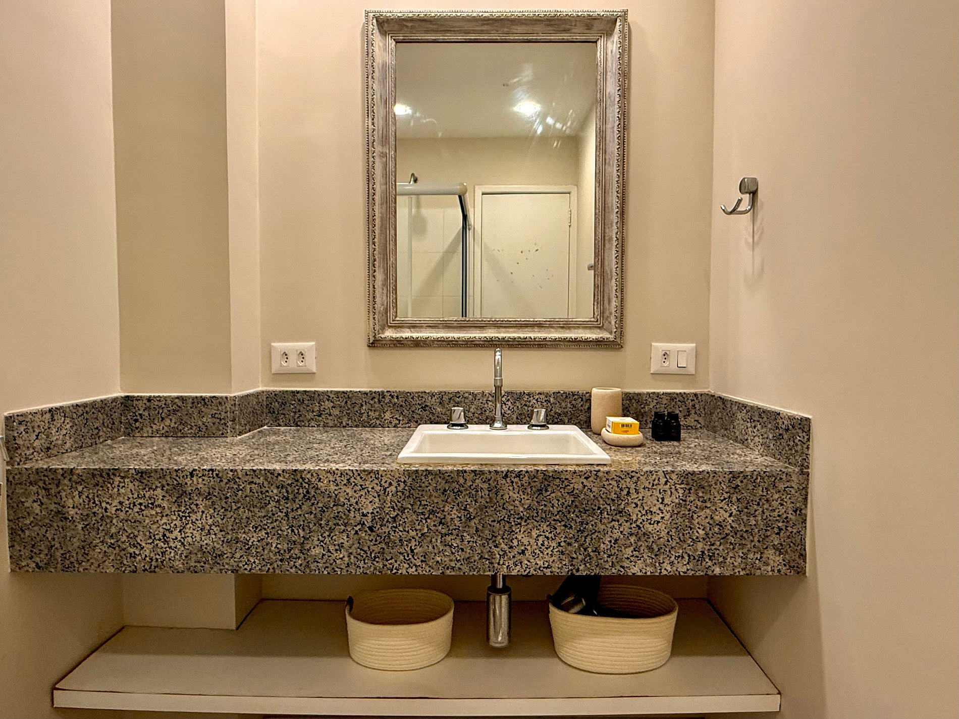 Para ainda mais comodidade, o espaço oferece berço portátil*, secador de cabelo, ferro de passar, kit de amenities (shampoo, condicionador e sabonete) e fechadura eletrônica com código de acesso.
