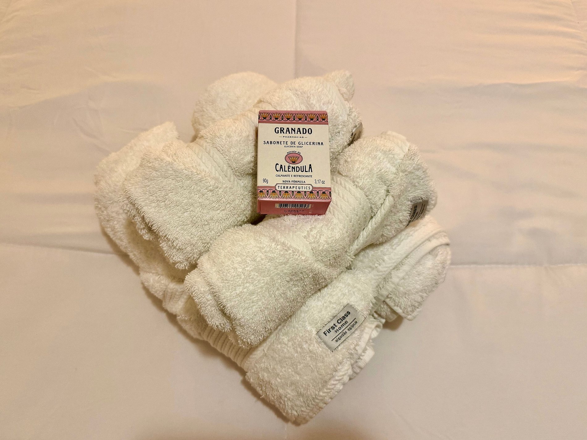 As roupas de cama e de banho são alguns dos principais diferenciais da estadia, com padrão 5 estrelas de conforto e sofisticação.