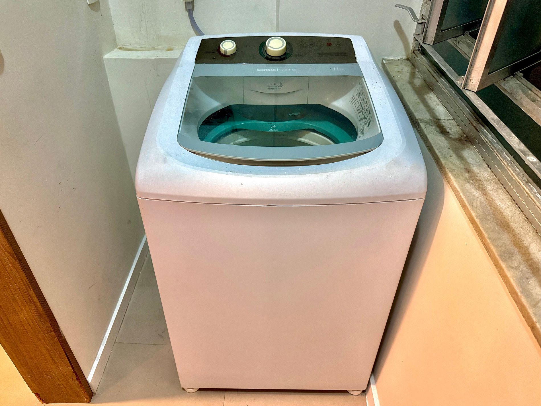 A área de serviço (Lavanderia) tem máquina de lavar e varal para secar.