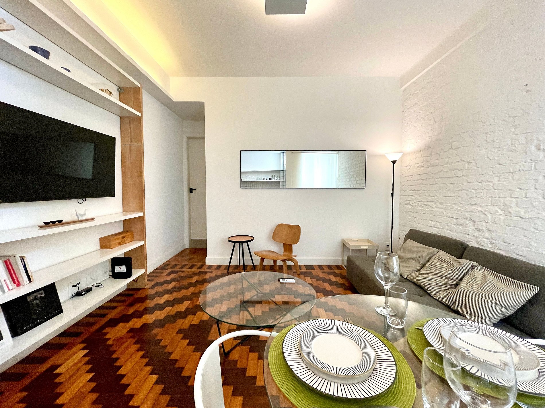 Apartamento completamente reformado, moderno, super aconchegante, silencioso e bem localizado. Ideal para pessoas e famílias que vêm a lazer ou a trabalho e que buscam muito conforto, localização nobre e que possam resolver tudo a pé. Localizado a 3 minutos a pé da praia, a 5 minutos a pé da estação do metro e ao lado de todo o comércio, dos melhores bares e restaurantes, cinemas e academias.