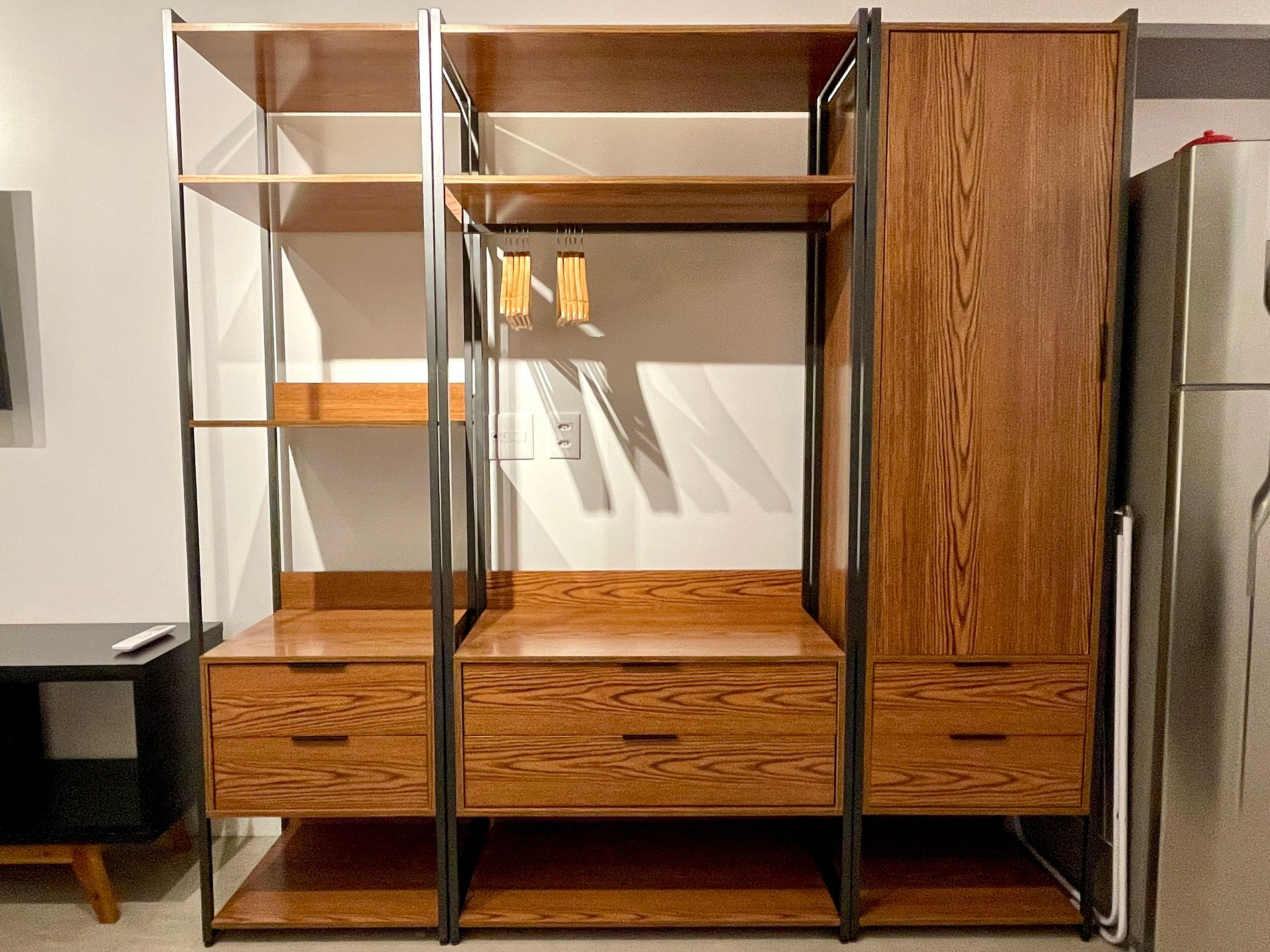 Quarto/sala super agradável com sofá cama, cama queen, armários, ar condicionado, Smart TV, cortina blackout, mesa de jantar, diversas tomadas, além de contar com uma varanda super charmosa. Internet de alta velocidade. Banheiro todo completo e com chuveiro com boa pressão. Cozinha equipada com geladeira, cooktop, microondas, máquina de Nespresso, Airfryer, filtro de água e diversos utensílios. Oferece também outras comodidades, como berço portátil*, secador de cabelo, tábua e ferro de passar roupa e kit de amenities (shampoo, condicionador e sabonete).