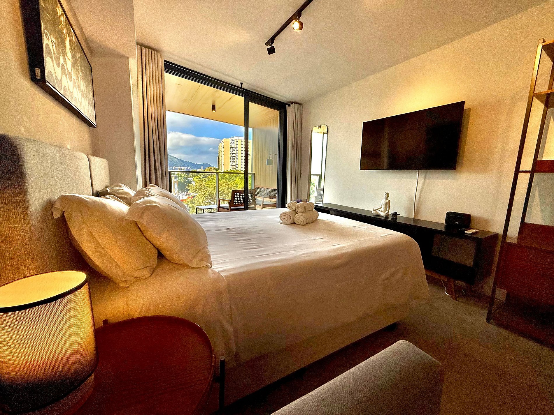 Studio no Leblon completamente reformado, moderno, aconchegante e bem localizado. Ideal para pessoas e famílias que vêm a lazer ou a trabalho e que buscam muito conforto, localização nobre e que possam resolver tudo a pé. Localizado a poucos minutos a pé da praia, da Lagoa, da estação do metrô e próximo a todo comércio, melhores bares e restaurantes, academias e do Shopping Leblon. O Studio conta com piscina, academia, lavanderia e portaria 24h, além de uma vaga de garagem gratuita.