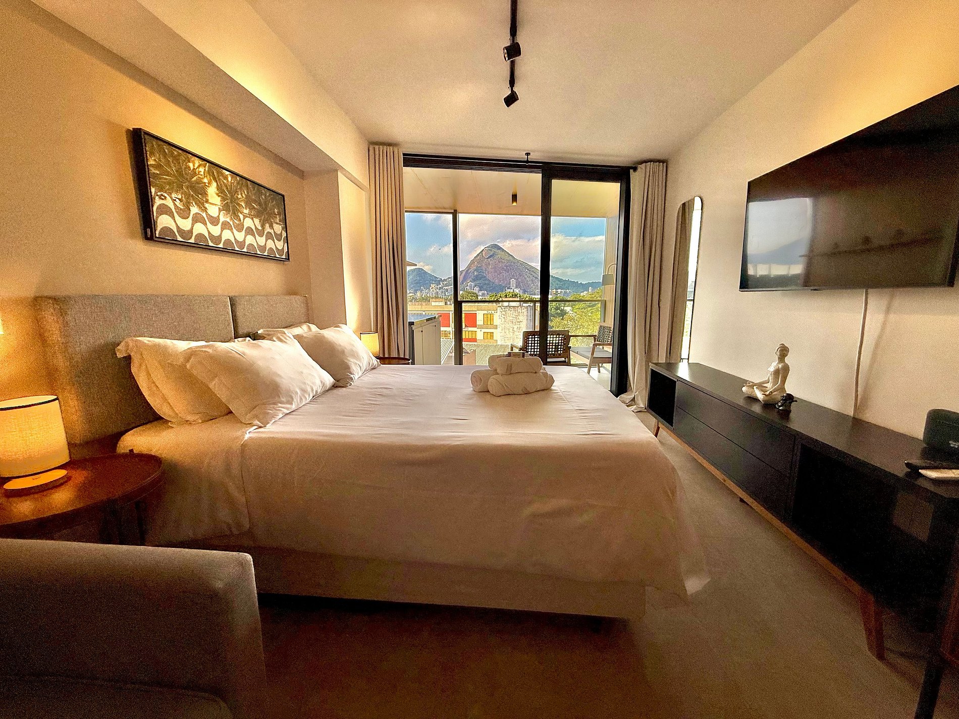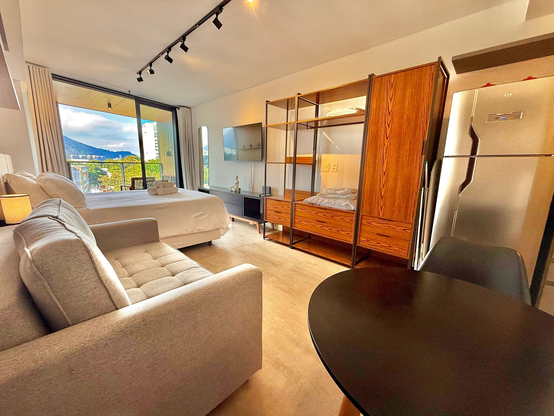 Studio no Leblon completamente reformado, moderno, aconchegante e bem localizado. Ideal para pessoas e famílias que vêm a lazer ou a trabalho e que buscam muito conforto, localização nobre e que possam resolver tudo a pé. Localizado a poucos minutos a pé da praia, da Lagoa, da estação do metrô e próximo a todo comércio, melhores bares e restaurantes, academias e do Shopping Leblon. O Studio conta com piscina, academia, lavanderia e portaria 24h, além de uma vaga de garagem gratuita.