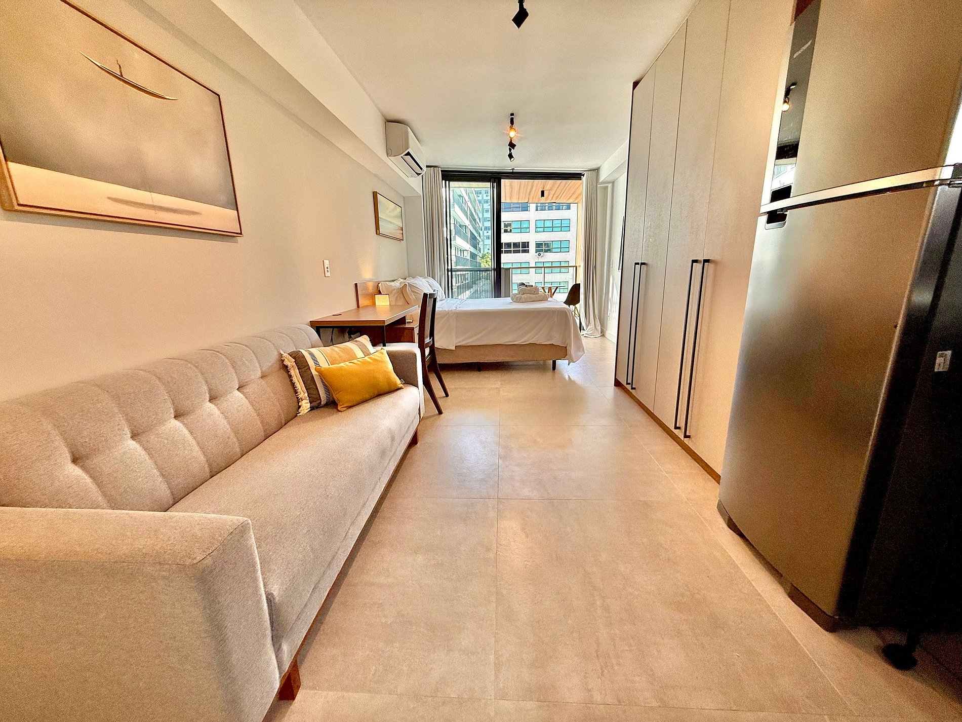 Studio no Leblon novo, todo reformado, moderno, aconchegante e bem localizado. Ideal para pessoas que vêm a lazer ou a trabalho e que buscam conforto, localização nobre e que possam resolver tudo a pé. Localizado a poucos minutos a pé da praia, da Lagoa Rodrigo de Freitas, do metrô e próximo a todo o comércio, incluindo bares, restaurantes, academias, Shopping Leblon e a famosa Rua Dias Ferreira. Edifício com piscina, academia, lavanderia e recepção 24h, além de uma vaga de garagem gratuita.