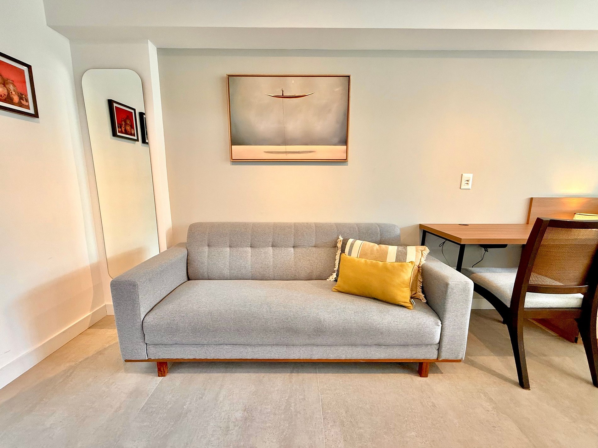 Área de estar com sofá/cadeira