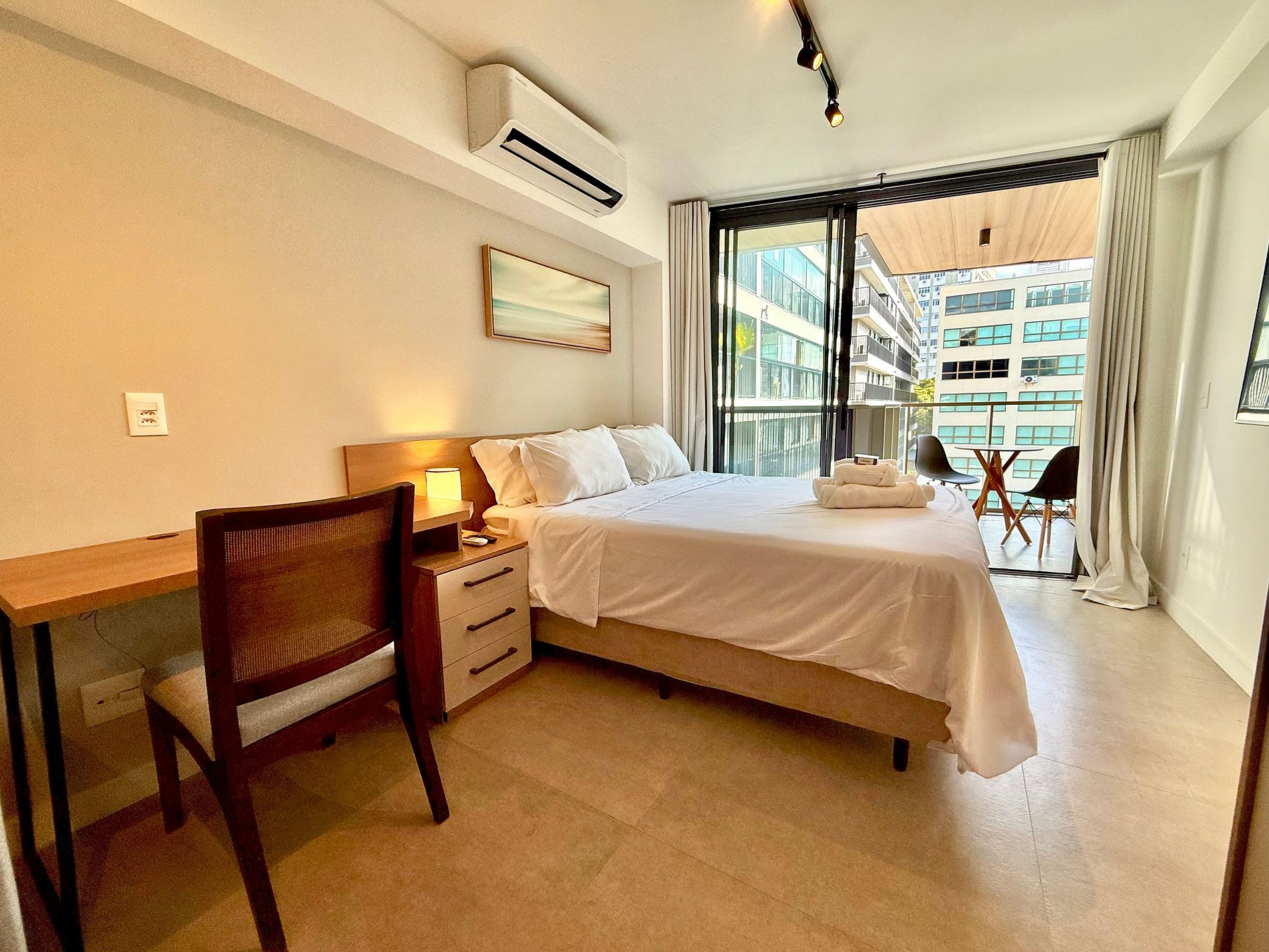 Studio no Leblon novo, todo reformado, moderno, aconchegante e bem localizado. Ideal para pessoas que vêm a lazer ou a trabalho e que buscam conforto, localização nobre e que possam resolver tudo a pé. Localizado a poucos minutos a pé da praia, da Lagoa Rodrigo de Freitas, do metrô e próximo a todo o comércio, incluindo bares, restaurantes, academias, Shopping Leblon e a famosa Rua Dias Ferreira. Edifício com piscina, academia, lavanderia e recepção 24h, além de uma vaga de garagem gratuita.