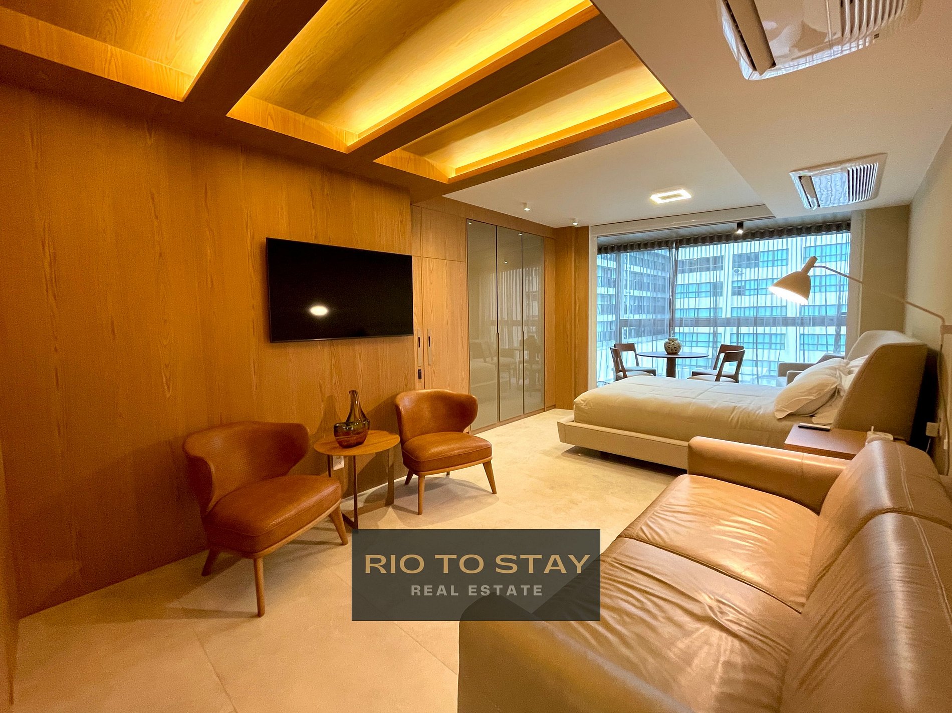 Studio no Leblon completamente reformado, luxuoso, sofisticado, moderno, aconchegante e bem localizado. Ideal para pessoas e famílias que vêm a lazer ou a trabalho e que buscam muito luxo, conforto, localização nobre e que possam resolver tudo a pé. Localizado a poucos minutos a pé da praia, da Lagoa, da estação do metrô e próximo a todo comércio, melhores bares e restaurantes, academias e do Shopping Leblon. O prédio tem piscina, academia, lavanderia e portaria 24h, além de 1 vaga de garagem.