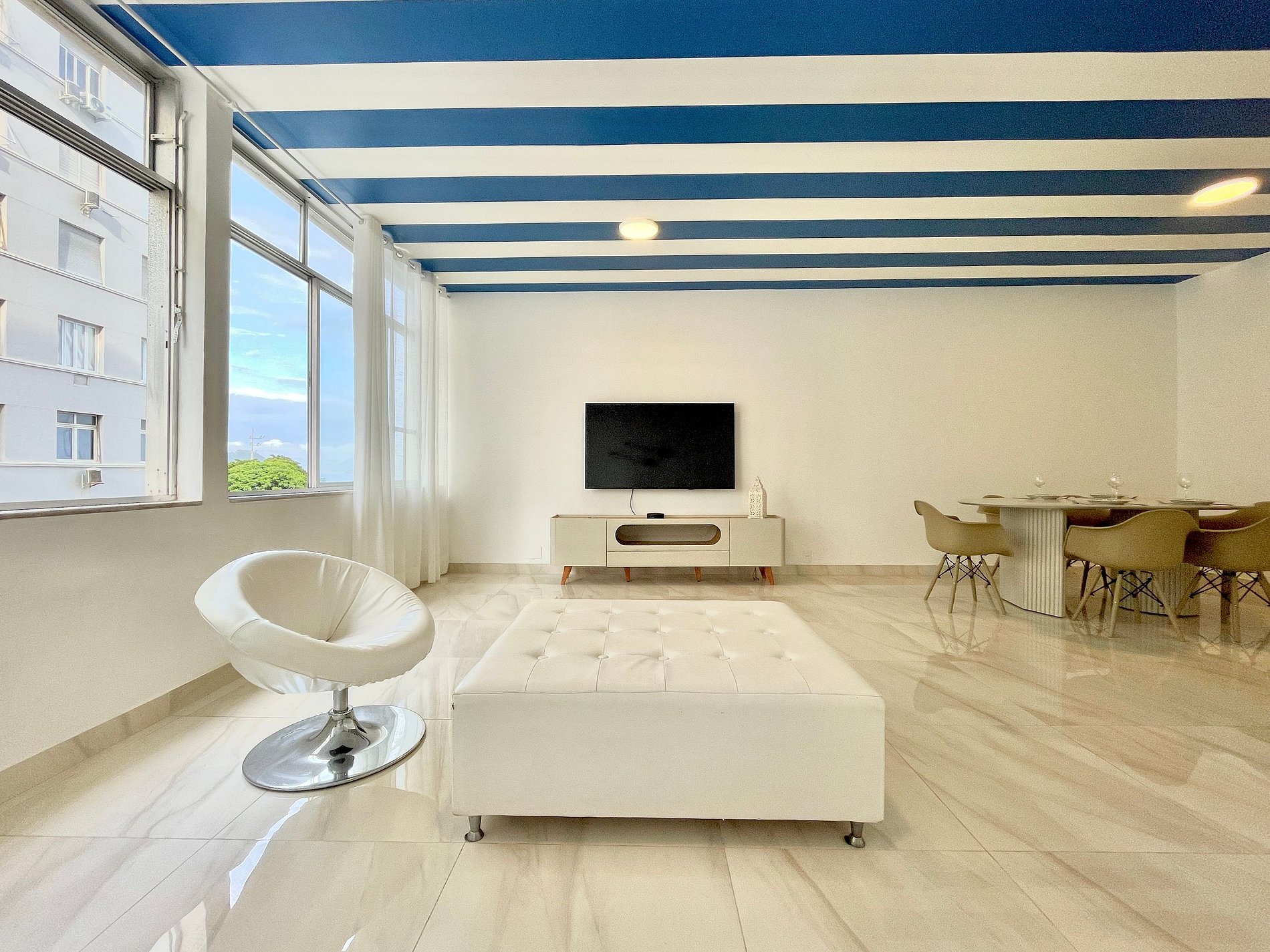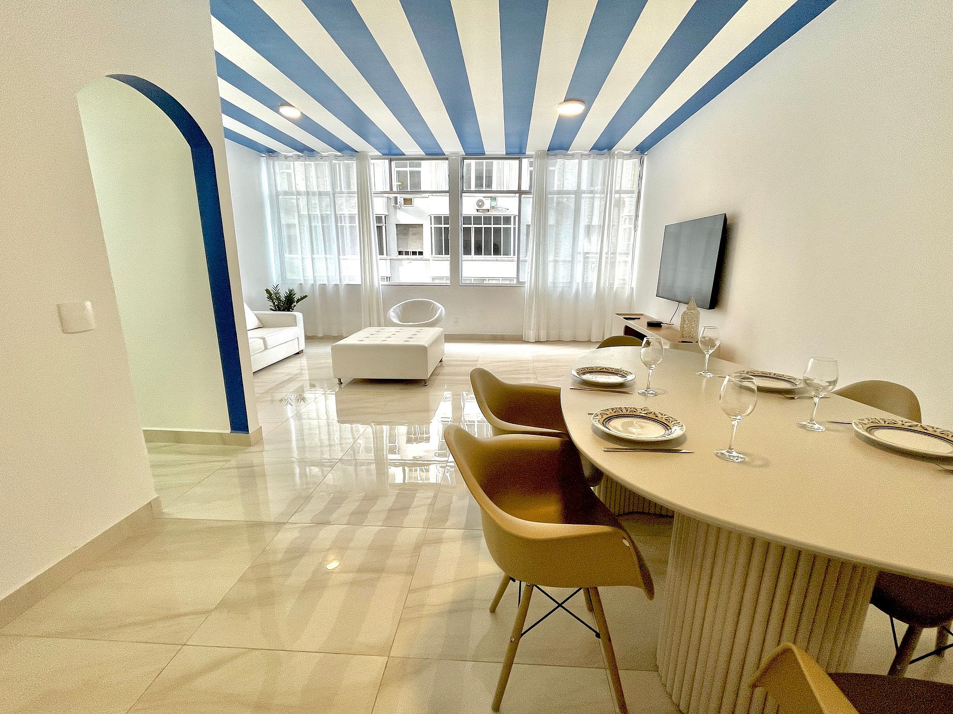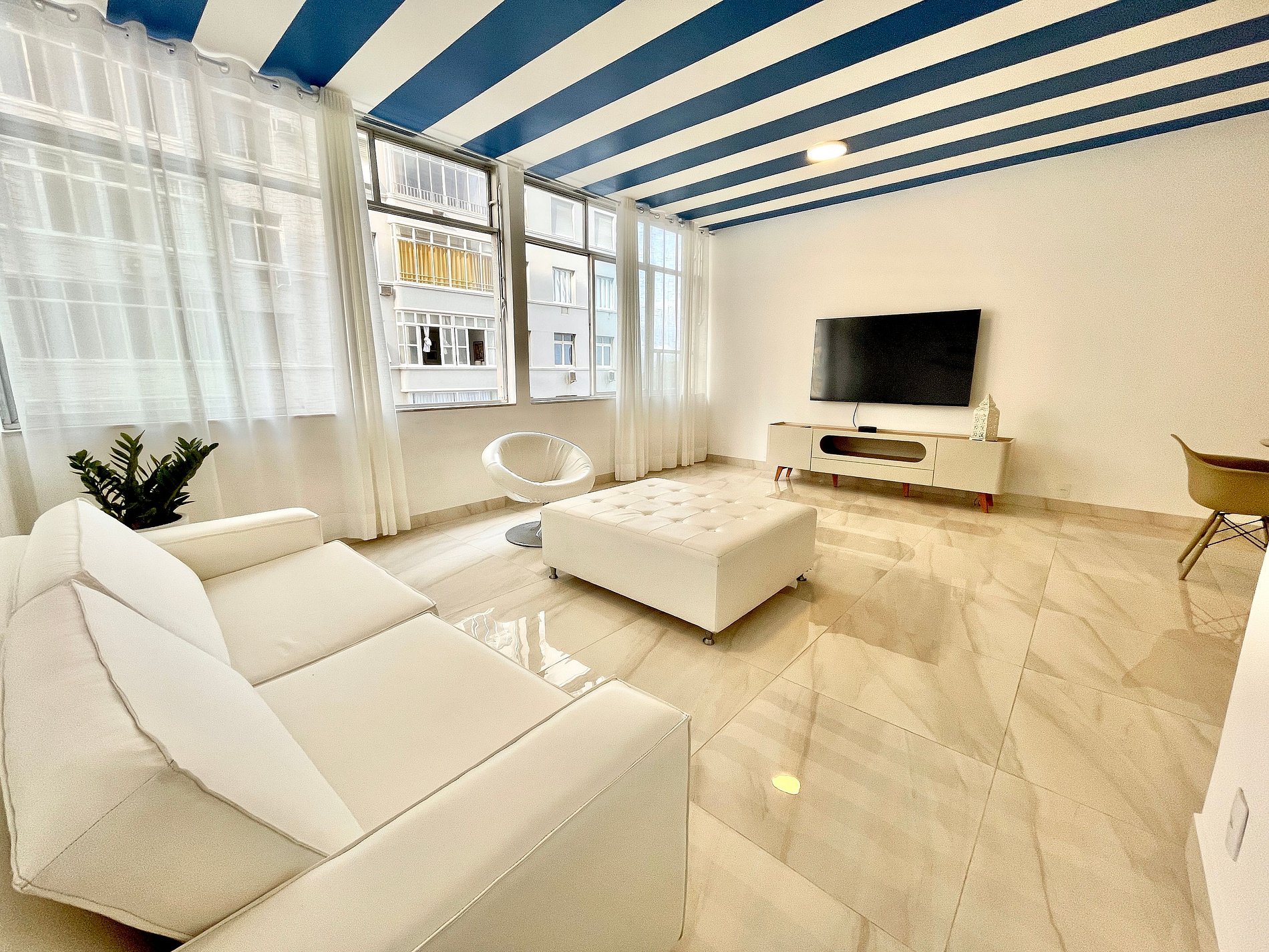 Apartamento moderno, estiloso, espaçoso, super aconchegante e localizado exatamente ao lado da Praia de Copacabana. Ideal para pessoas e famílias que vêm a lazer ou a trabalho e que buscam muito conforto, localização nobre e que possam resolver tudo a pé. Próximo a todo comércio, aos melhores bares e restaurantes, academias, estação do metro, além de estar muito próximo ao bairro de Ipanema. A portaria do edifício funciona 24h.