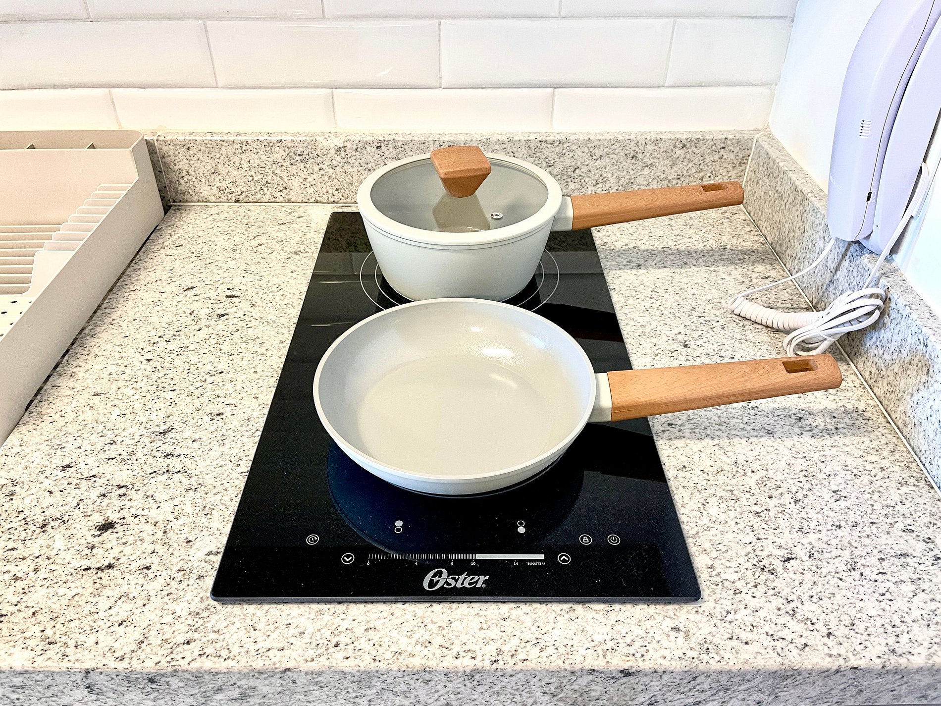 Quarto/sala super agradável com sofá cama, cama queen, armários, ar condicionado, Smart TV, cortina blackout, mesa de jantar, diversas tomadas, além de contar com uma varanda super charmosa. Internet de alta velocidade. Banheiro todo completo e com chuveiro com boa pressão. Cozinha equipada com geladeira, cooktop, microondas, máquina de Nespresso, Airfryer, filtro de água e diversos utensílios. Oferece também outras comodidades, como berço portátil*, secador de cabelo, tábua e ferro de passar roupa e kit de amenities (shampoo, condicionador e sabonete).