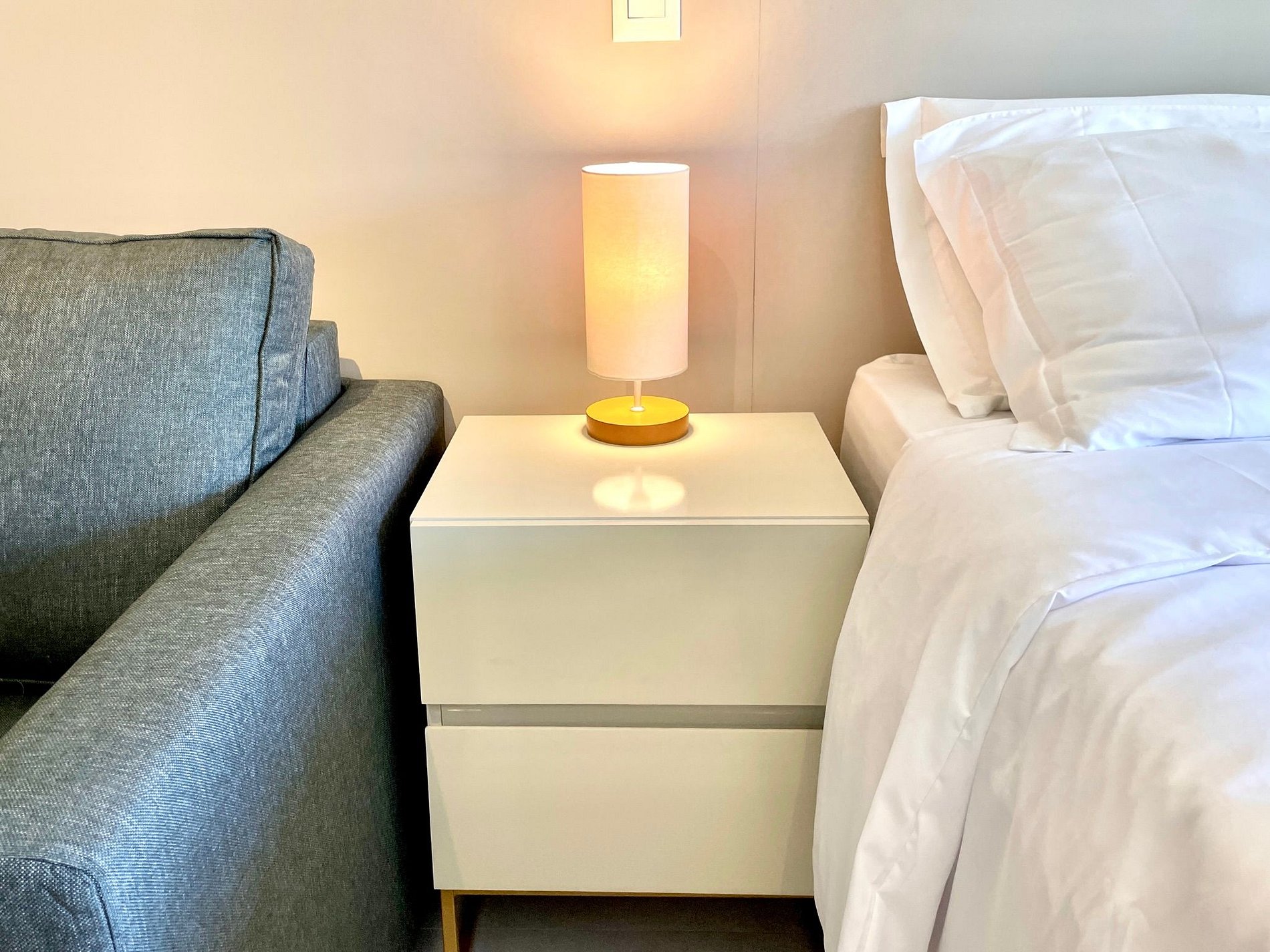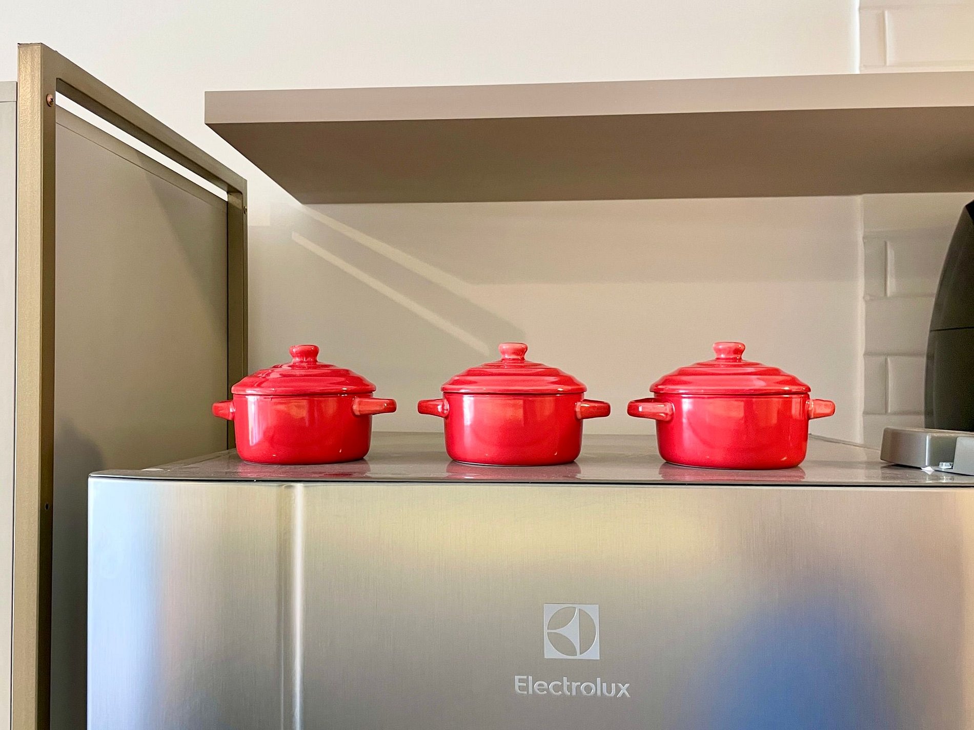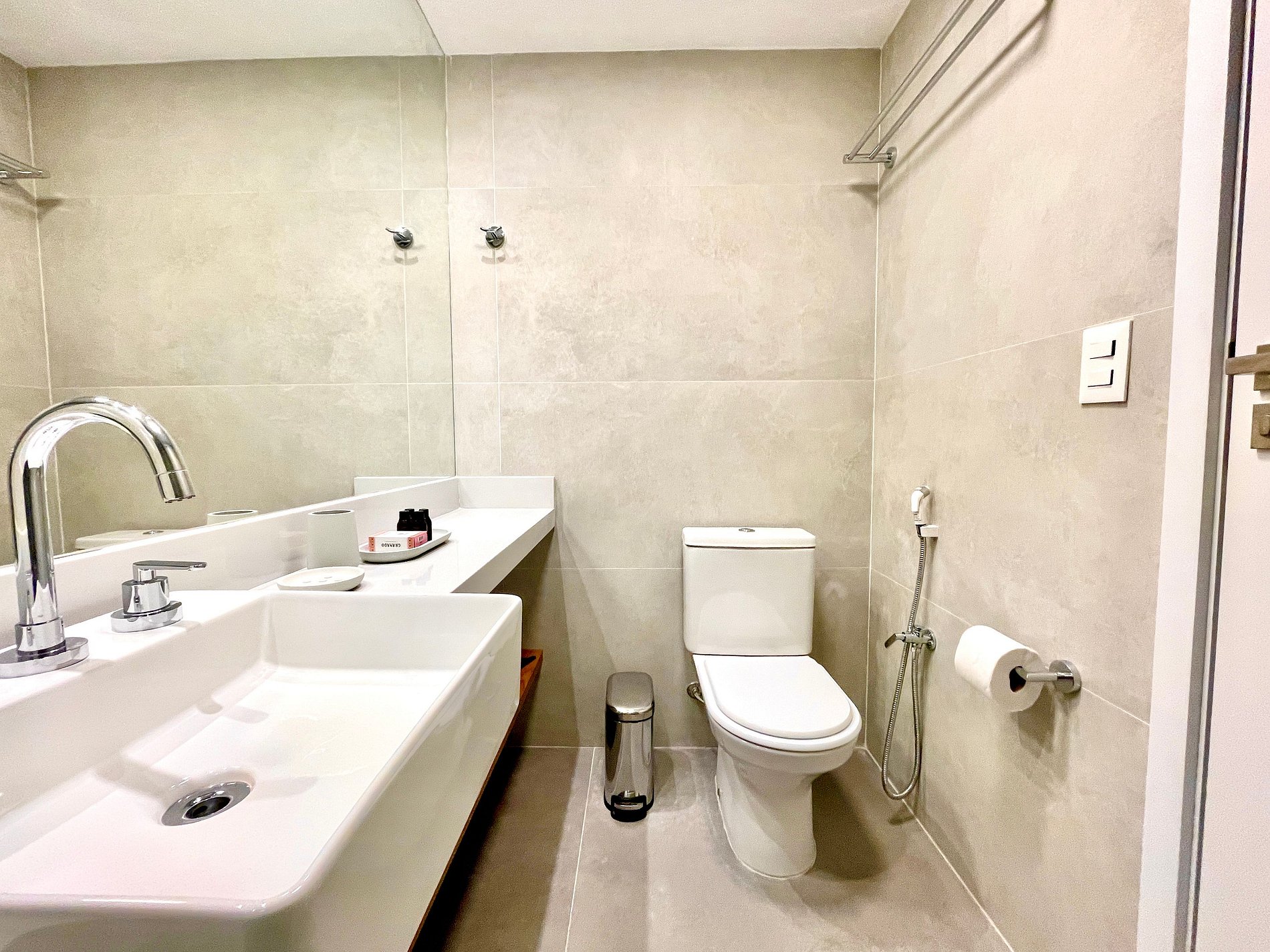Quarto/sala super agradável com sofá cama, cama queen, armários, ar condicionado, Smart TV, cortina blackout, mesa de jantar, diversas tomadas, além de contar com uma varanda super charmosa. Internet de alta velocidade. Banheiro todo completo e com chuveiro com boa pressão. Cozinha equipada com geladeira, cooktop, microondas, máquina de Nespresso, Airfryer, filtro de água e diversos utensílios. Oferece também outras comodidades, como berço portátil*, secador de cabelo, tábua e ferro de passar roupa e kit de amenities (shampoo, condicionador e sabonete).