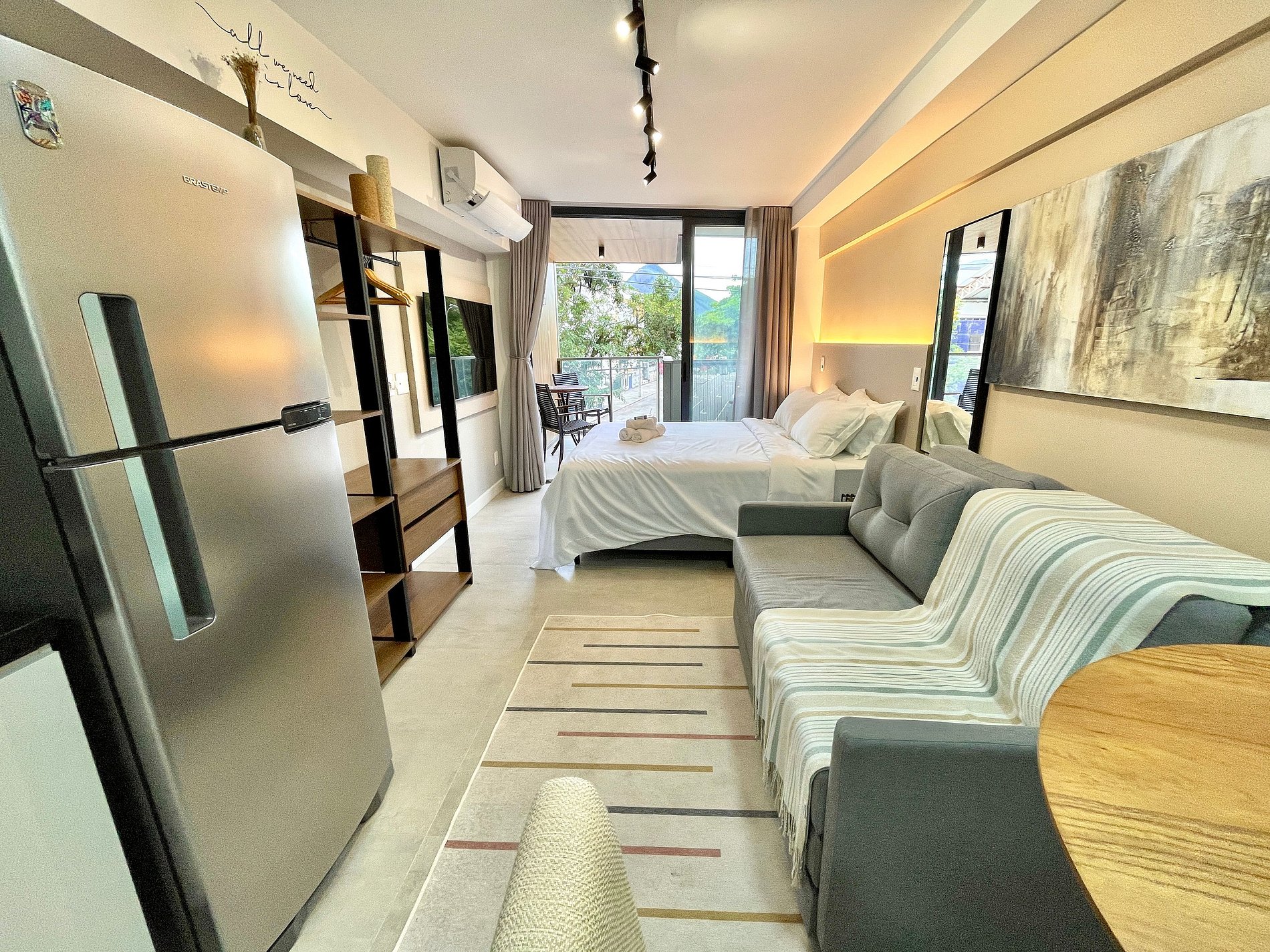 Studio NOVO no Leblon, moderno, aconchegante e MUITO bem localizado. Perfeito para jovens e famílias que vêm a lazer ou a trabalho e que buscam muito conforto em local nobre e que possam resolver tudo a pé. Localizado a poucos minutos da praia e a 400m da Lagoa Rodrigo de Freitas, perto da estação do metrô, do Shopping Leblon, e ao lado da badalada rua Dias Ferreira, com os melhores bares e restaurante. O Studio conta com piscina, academia, lavanderia e portaria 24h, além de uma vaga de garagem.