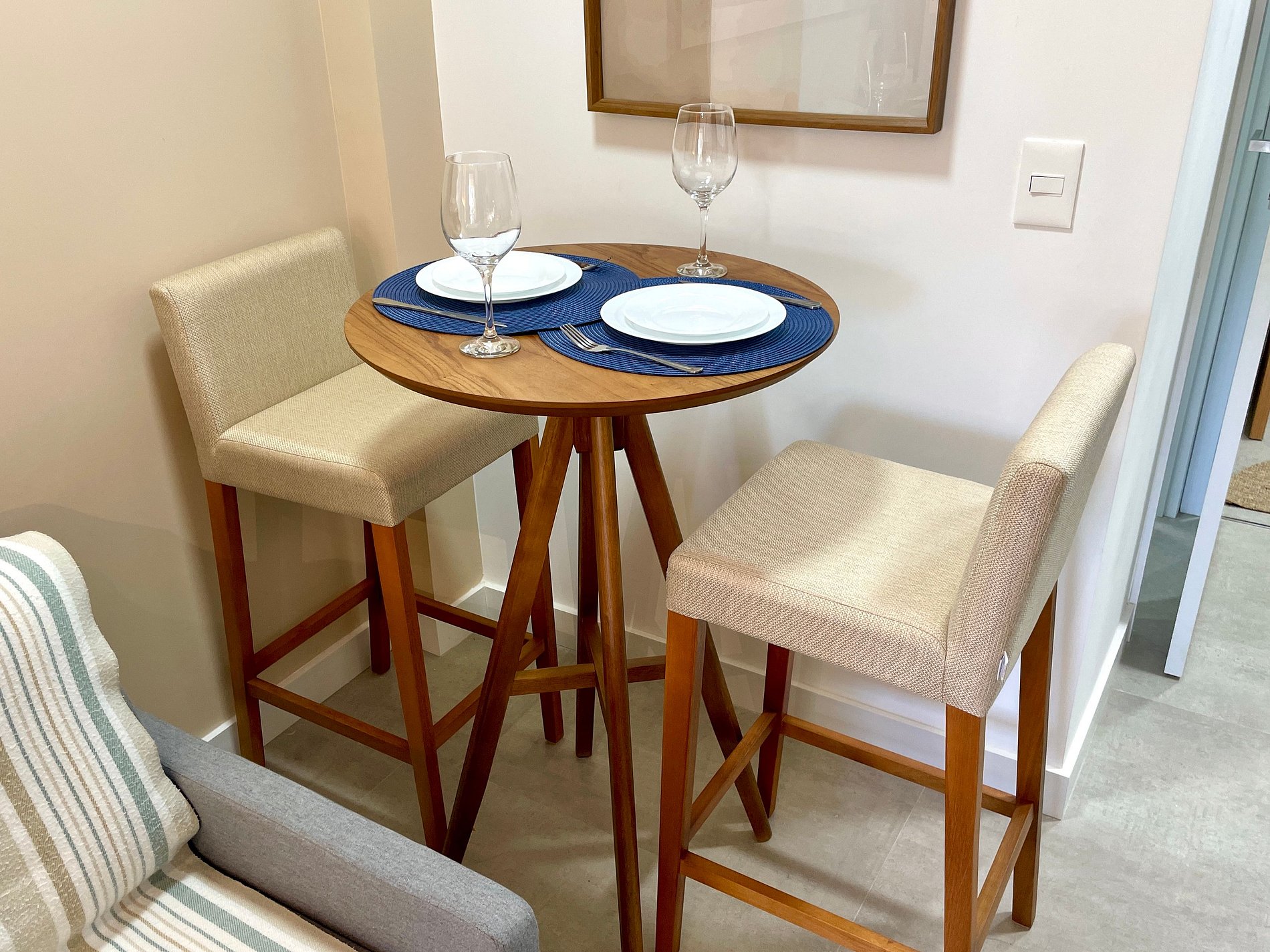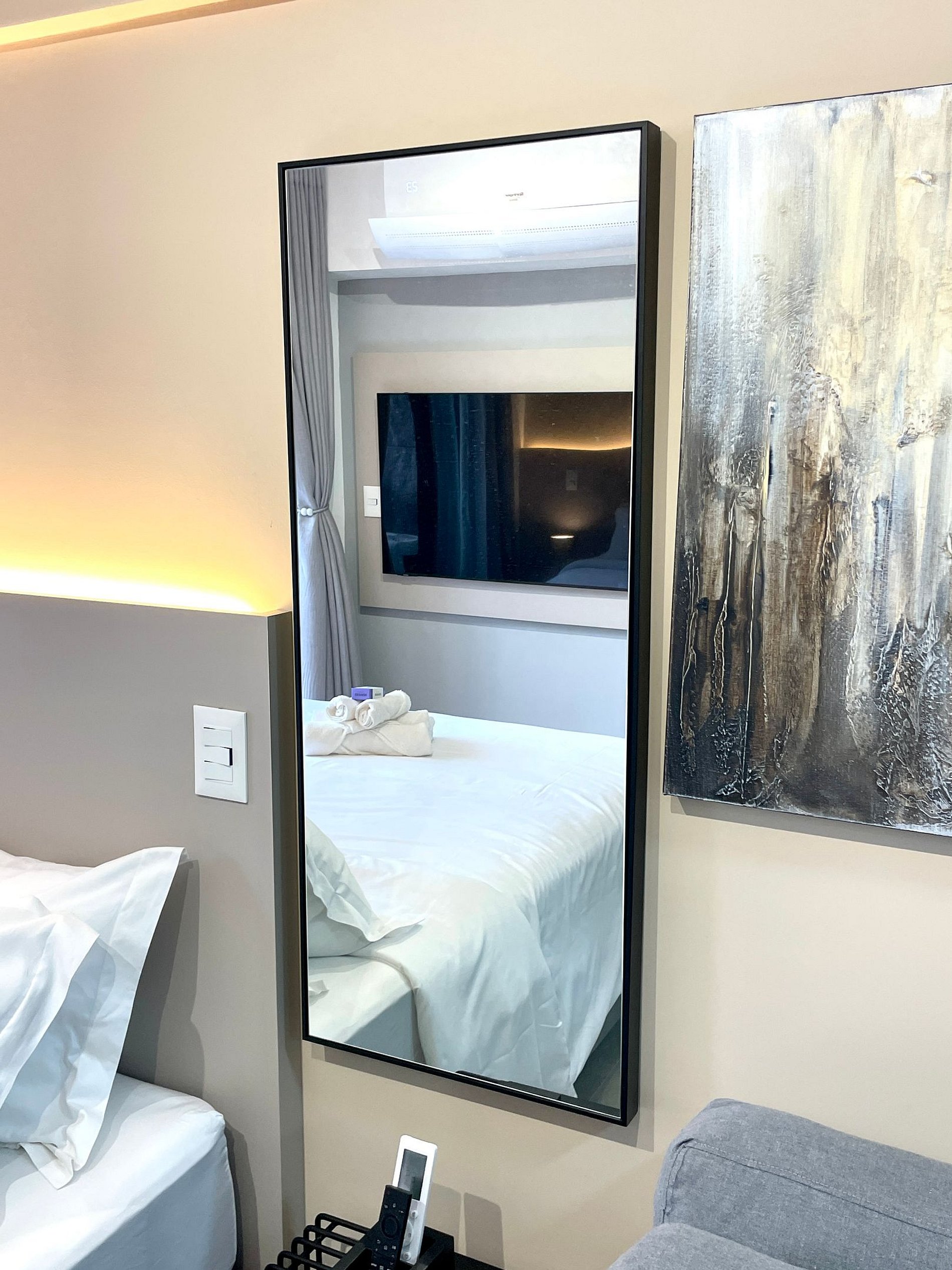 O espaço é completo e oferece Quarto/Sala super agradável com excelente decoração, sofá cama premium (cama casal), cama queen, armários, ar condicionado, Smart TV, cortina blackout, mesa de jantar, internet de alta velocidade, além de contar com uma varanda super charmosa com VISTA PARA O CRISTO! Banheiro todo completo e chuveiro com boa pressão. Cozinha equipada com geladeira, cooktop, microondas, máquina Nespresso, Sanduicheira Grill, Airfryer e diversos utensílios. Oferece também outras comodidades, como berço portátil*, secador de cabelo, tábua e ferro de passar roupa e kit de amenities (shampoo, condicionador e sabonete).
