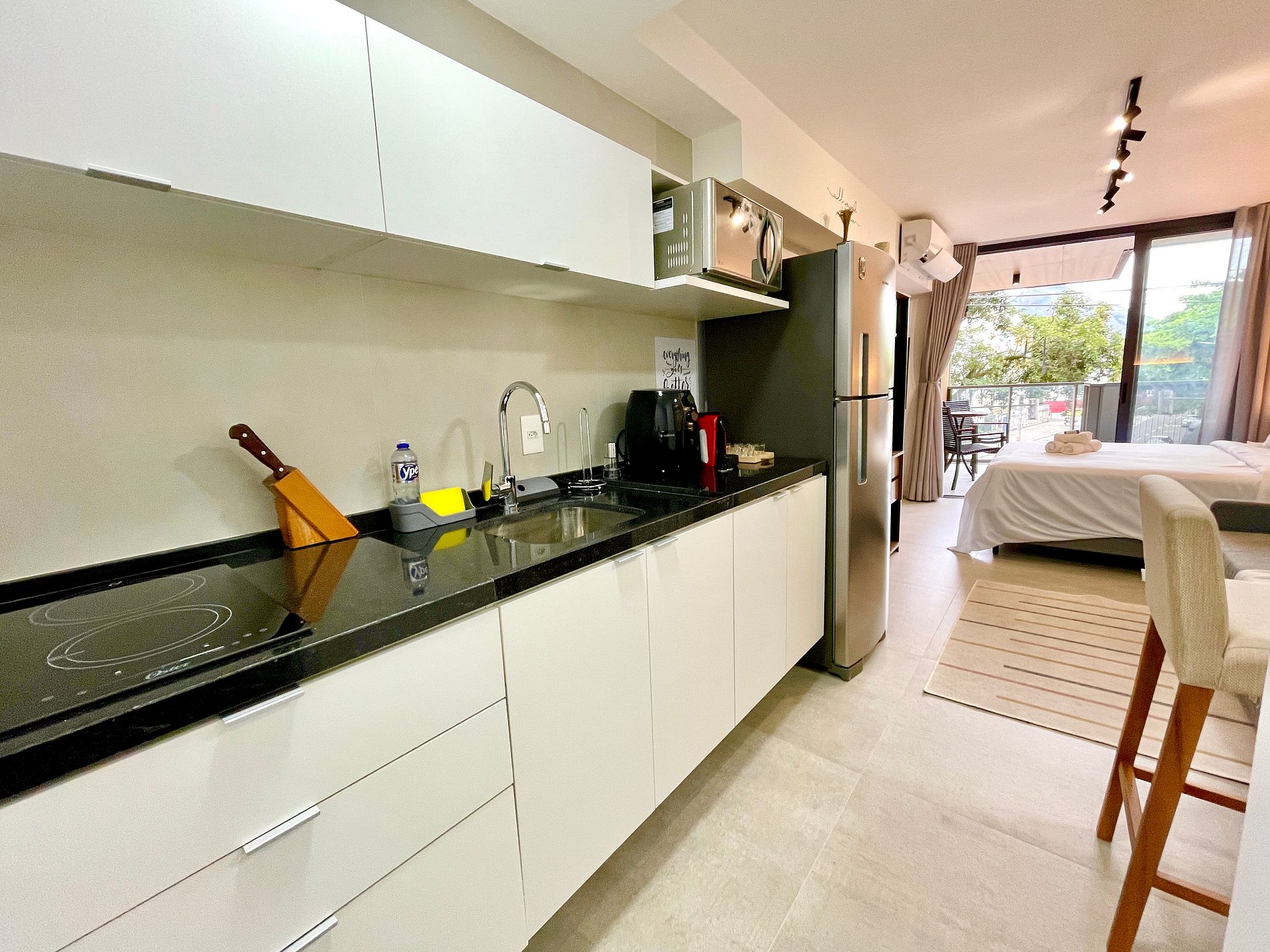 Studio NOVO no Leblon, moderno, aconchegante e MUITO bem localizado. Perfeito para jovens e famílias que vêm a lazer ou a trabalho e que buscam muito conforto em local nobre e que possam resolver tudo a pé. Localizado a poucos minutos da praia e a 400m da Lagoa Rodrigo de Freitas, perto da estação do metrô, do Shopping Leblon, e ao lado da badalada rua Dias Ferreira, com os melhores bares e restaurante. O Studio conta com piscina, academia, lavanderia e portaria 24h, além de uma vaga de garagem.