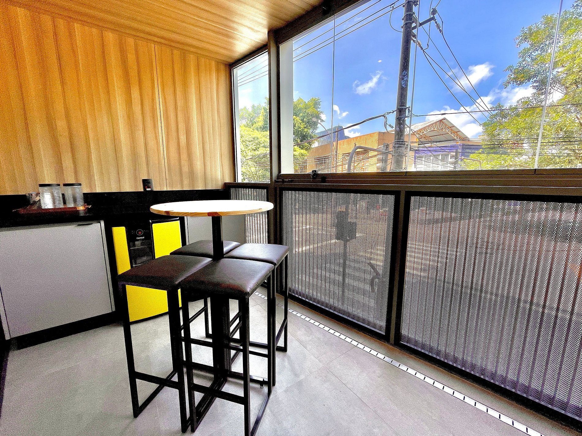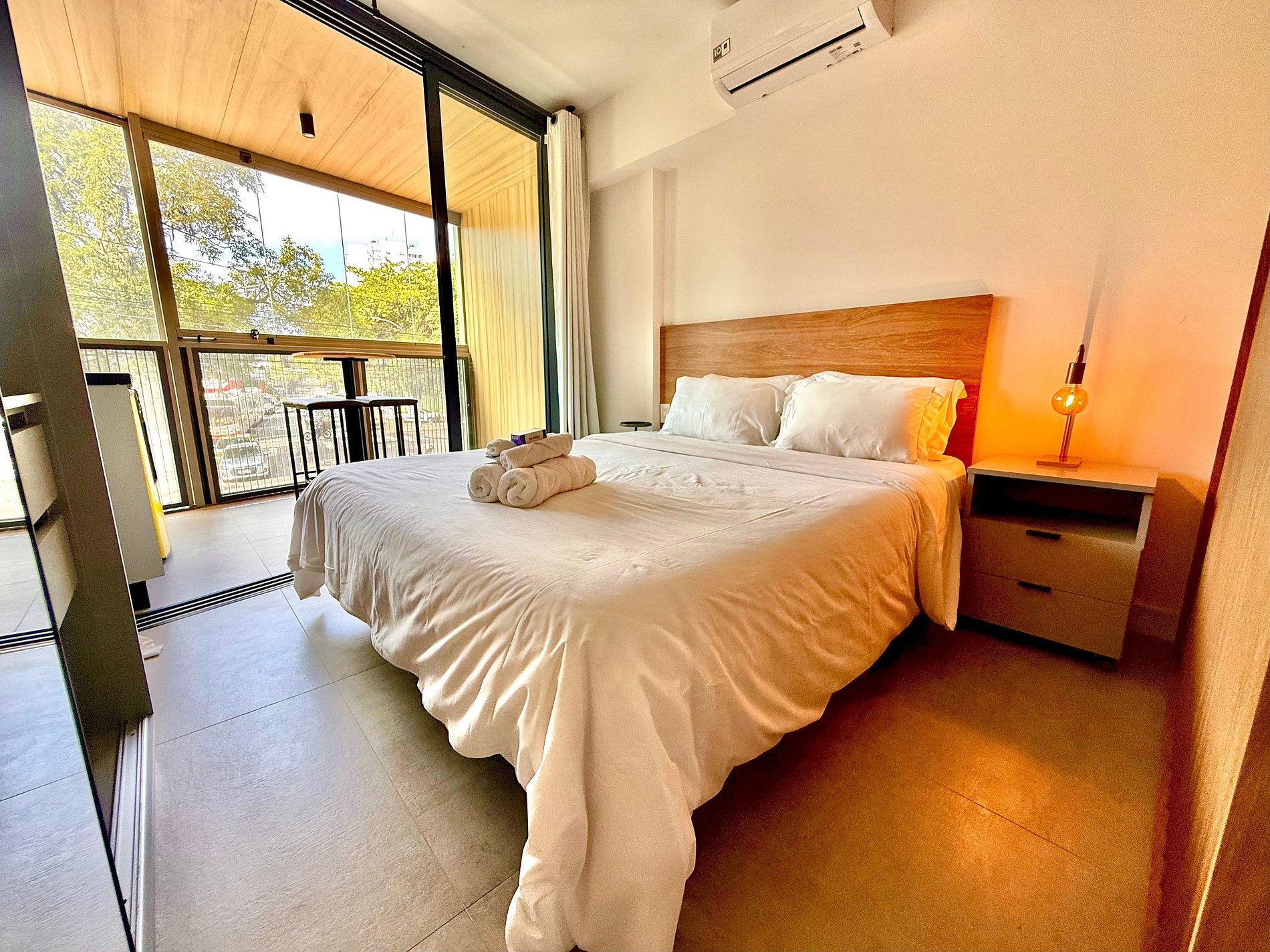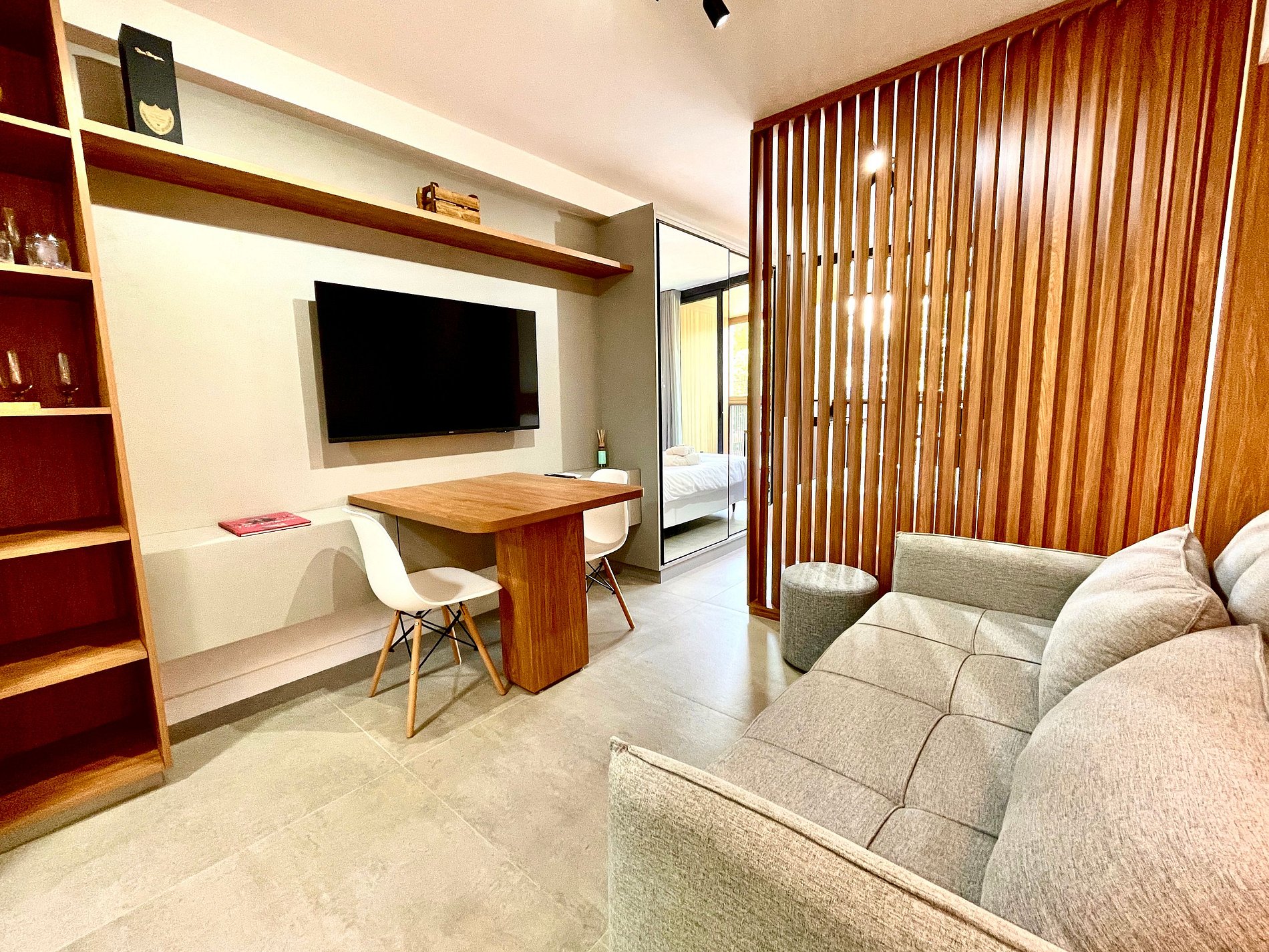 Studio super agradável com cama queen confortável, sofá cama de casal, armários, ar condicionado potente, Smart TV de 50 polegadas, cortina blackout, mesa de jantar, diversas tomadas, além de contar com uma varanda super charmosa com vista para o Cristo Redentor, montanhas e para a rua. Internet de alta velocidade. Banheiro todo completo e com chuveiro com boa pressão. Cozinha equipada com geladeira, cooktop, coifa, microondas, cafeteira, Airfryer, máquina de lavar e secar roupas e diversos utensílios. Oferece também outras comodidades, como berço portátil*, secador de cabelo, ferro de passar roupa e kit de amenities (shampoo, condicionador e sabonete).