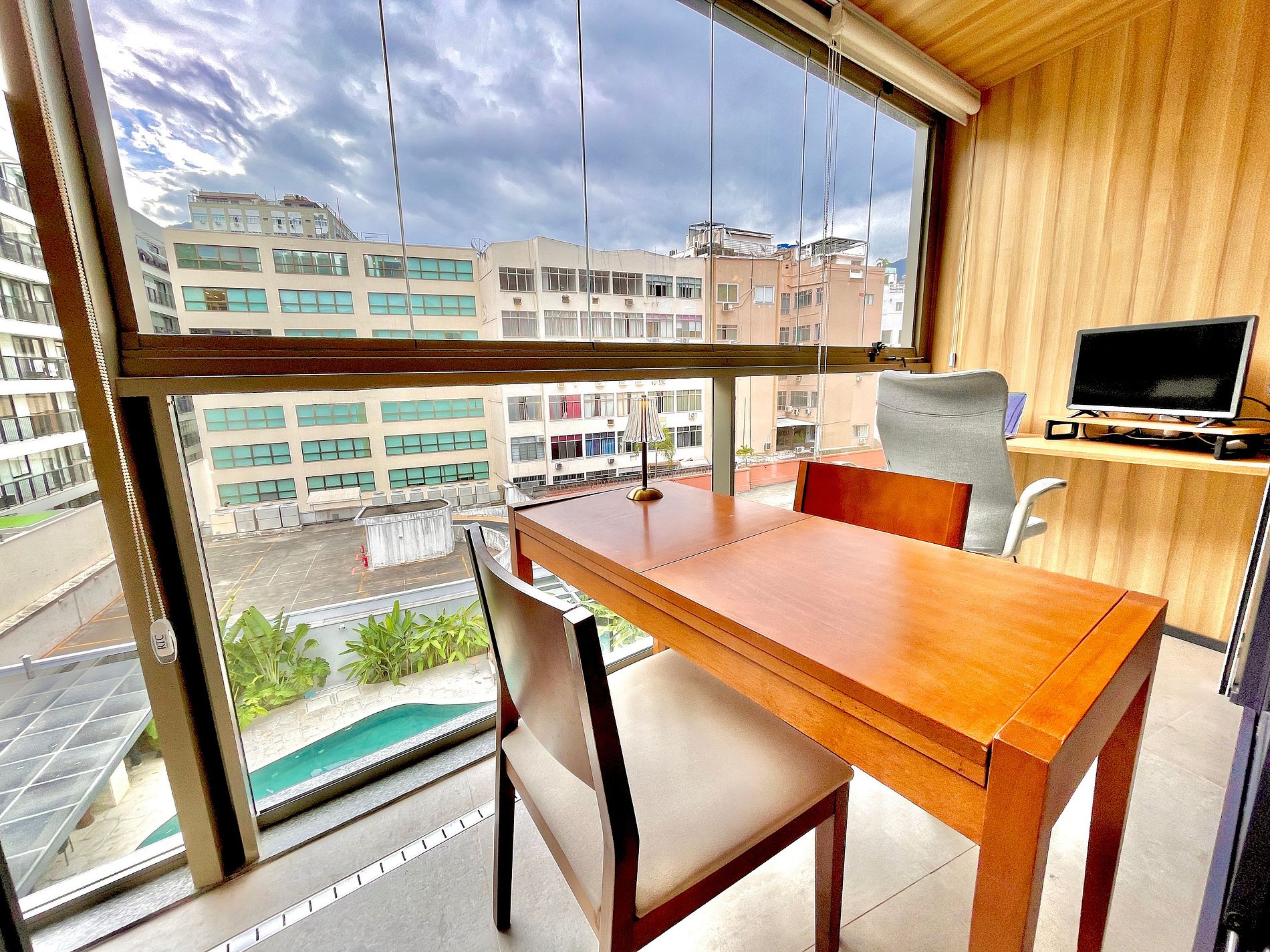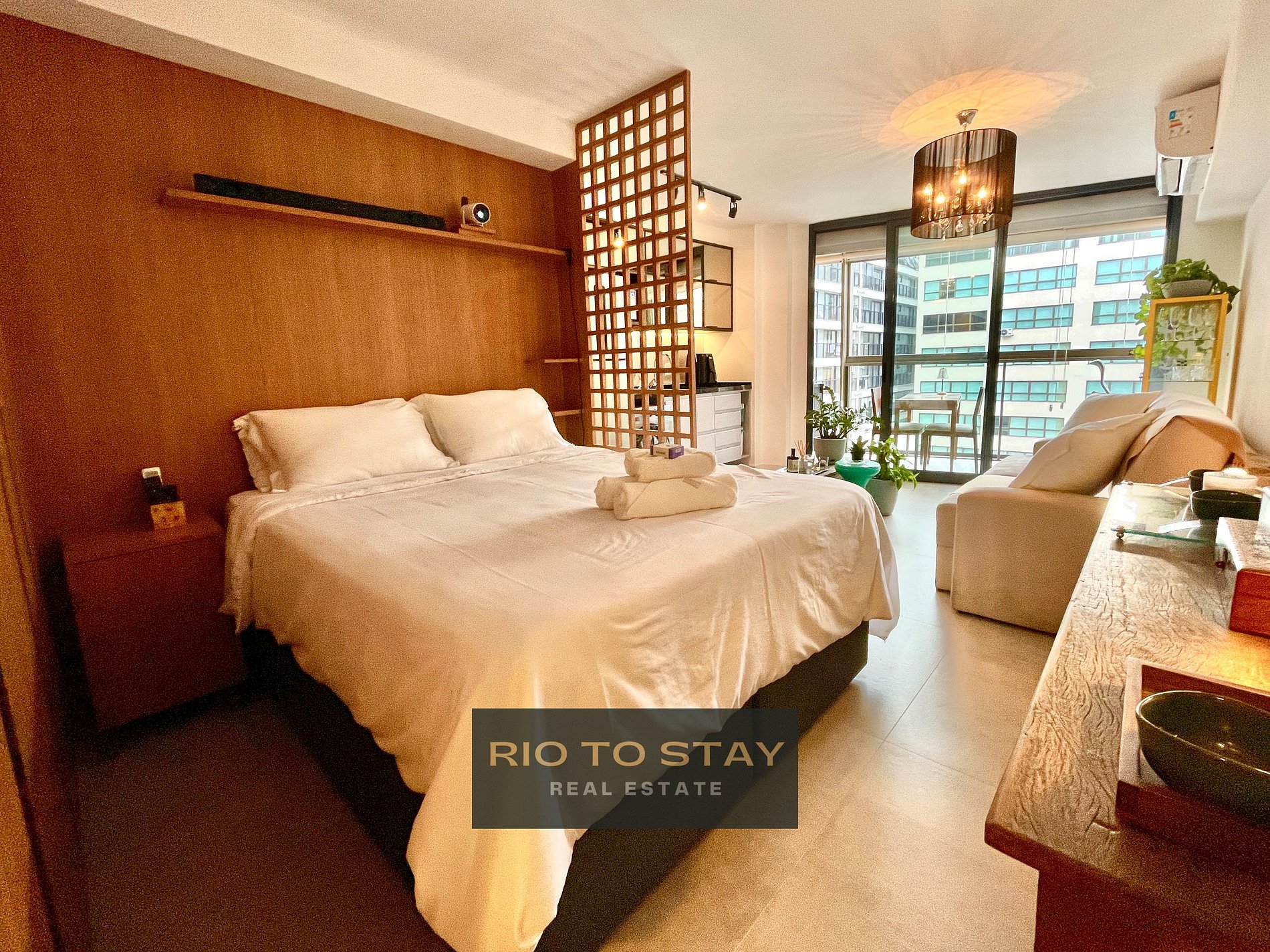 Studio no Leblon completamente reformado, moderno, aconchegante e bem localizado. Ideal para pessoas e famílias que vêm a lazer ou a trabalho e que buscam muito conforto, localização nobre e que possam resolver tudo a pé. Localizado a poucos minutos a pé da praia, da Lagoa, da estação do metrô e próximo a todo comércio, melhores bares e restaurantes, academias e do Shopping Leblon. O Studio conta com piscina, academia, lavanderia e portaria 24h, além de uma vaga de garagem gratuita.