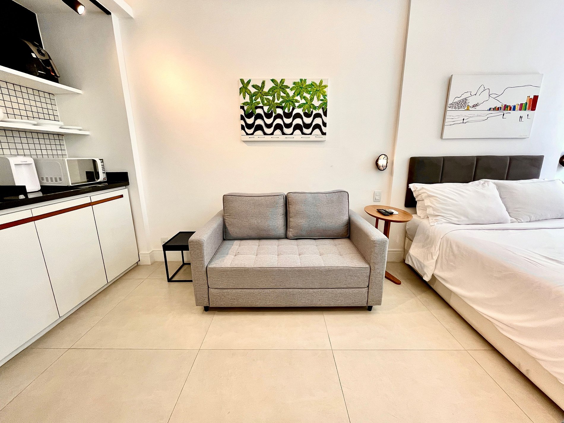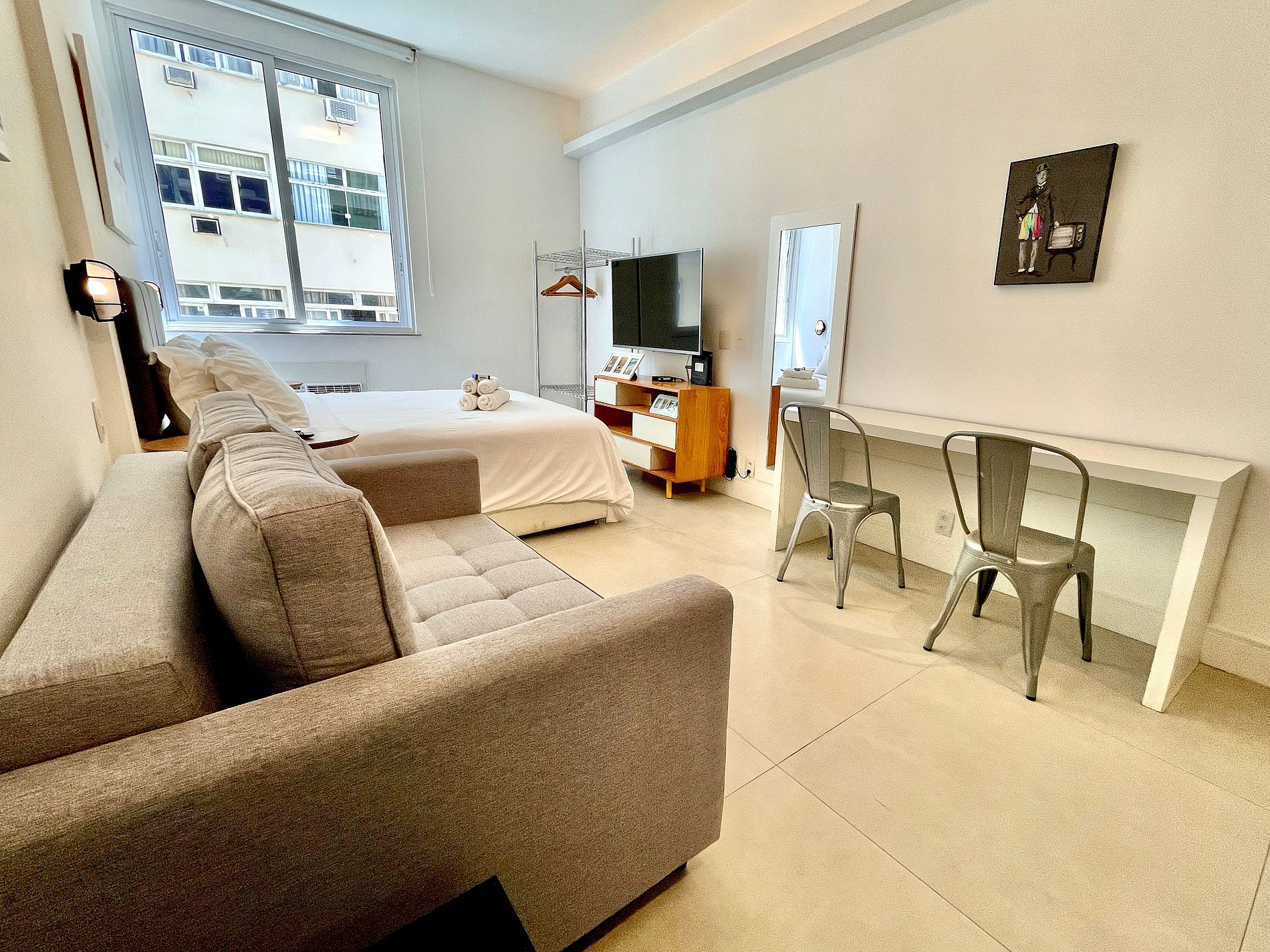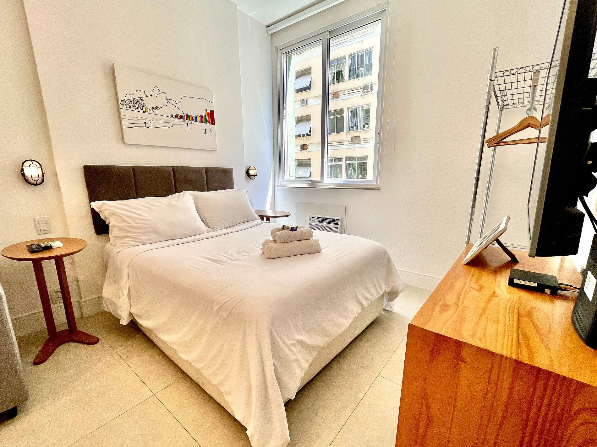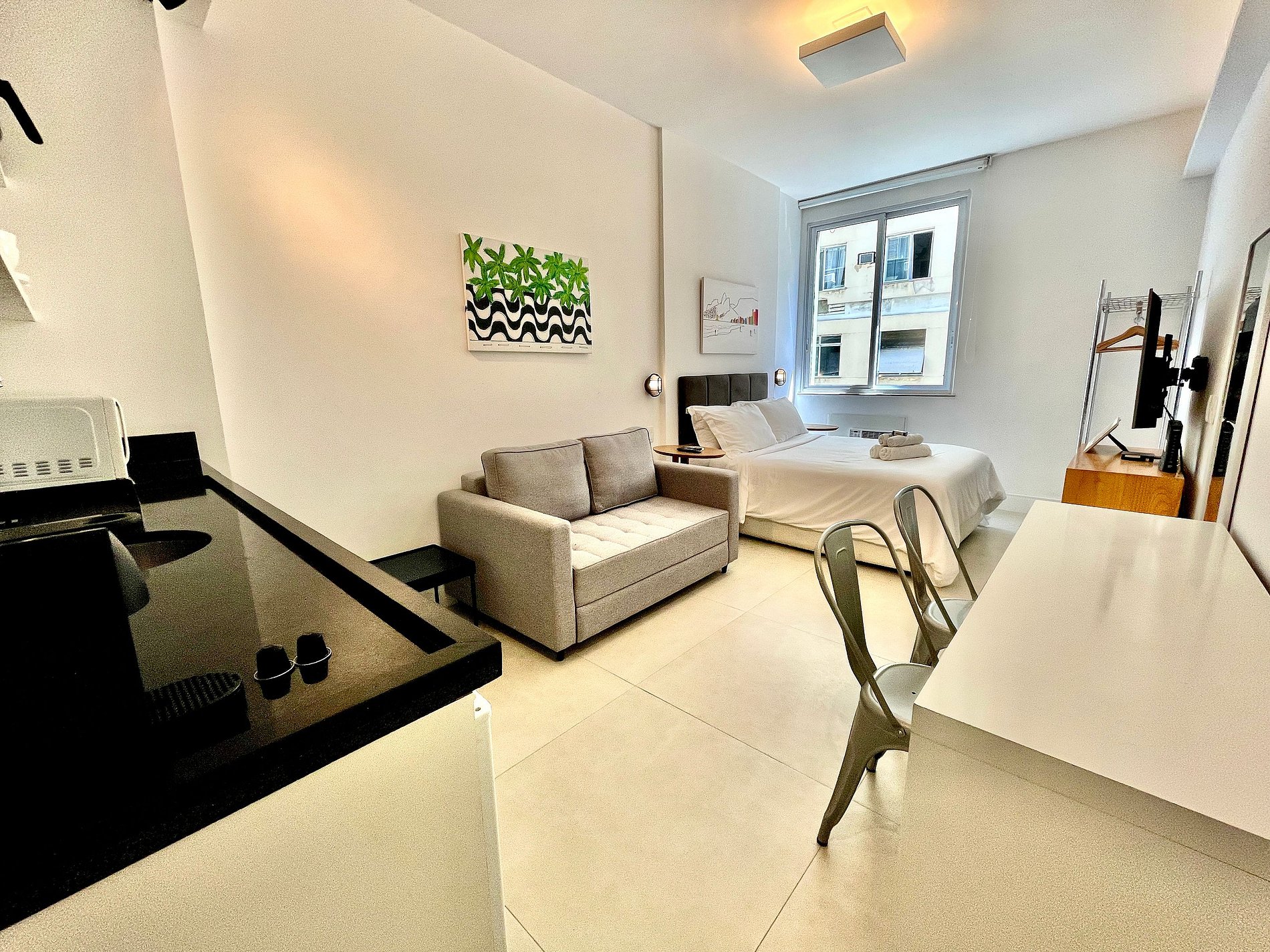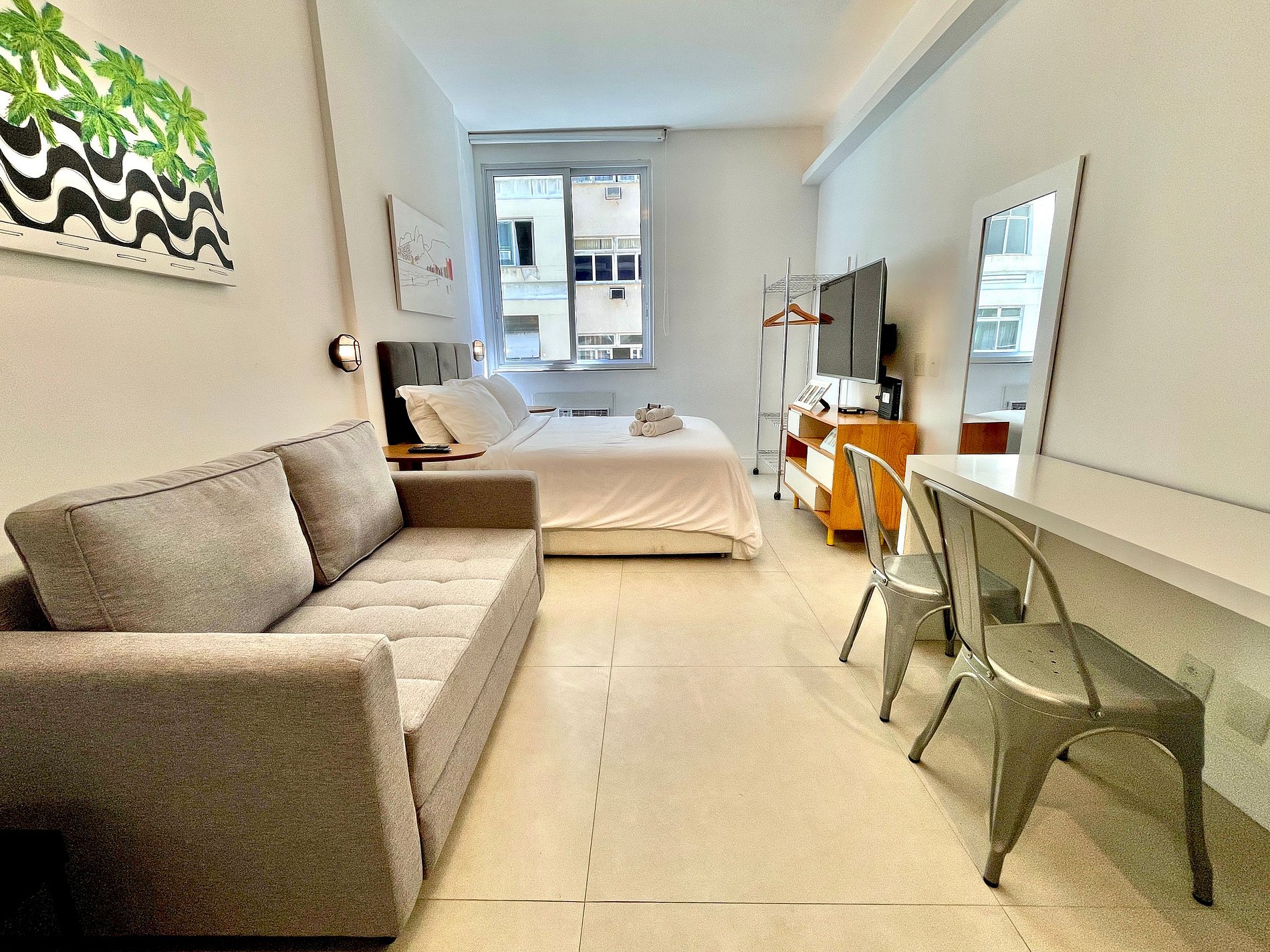 Studio moderno, estiloso, charmoso, super aconchegante e localizado exatamente ao lado da Praia de Copacabana. Ideal para pessoas e famílias que vêm a lazer ou a trabalho e que buscam muito conforto, localização nobre e que possam resolver tudo a pé. Próximo a todo comércio, aos melhores bares e restaurantes, academias, estação do metro, além de estar muito próximo ao bairro de Ipanema. A portaria do edifício funciona 24h.