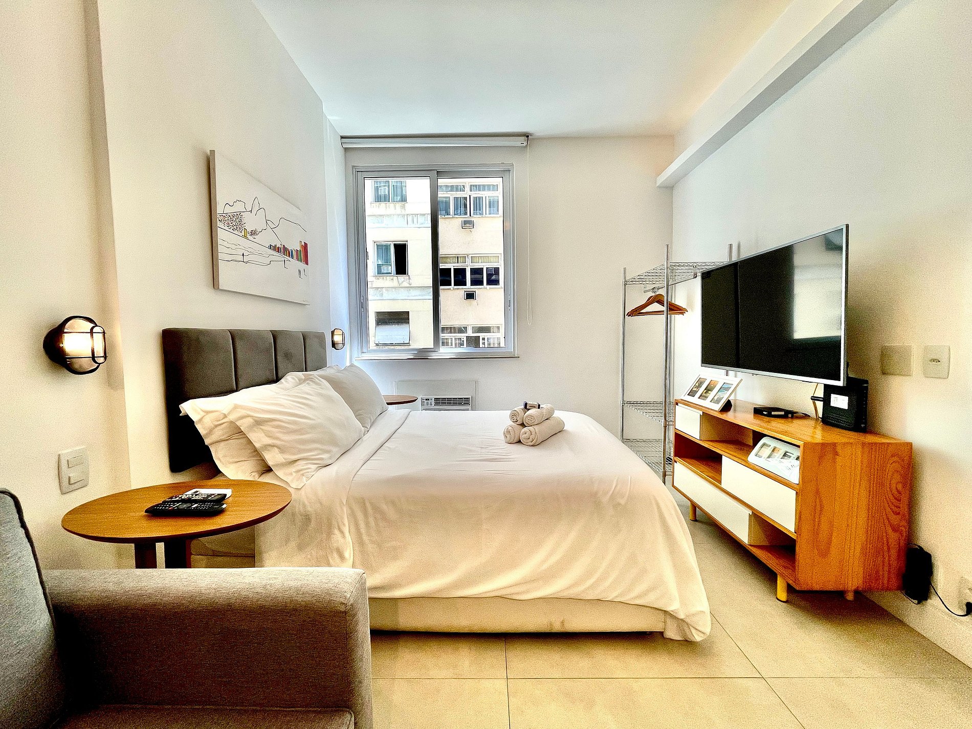 Studio moderno, estiloso, charmoso, super aconchegante e localizado exatamente ao lado da Praia de Copacabana. Ideal para pessoas e famílias que vêm a lazer ou a trabalho e que buscam muito conforto, localização nobre e que possam resolver tudo a pé. Próximo a todo comércio, aos melhores bares e restaurantes, academias, estação do metro, além de estar muito próximo ao bairro de Ipanema. A portaria do edifício funciona 24h.